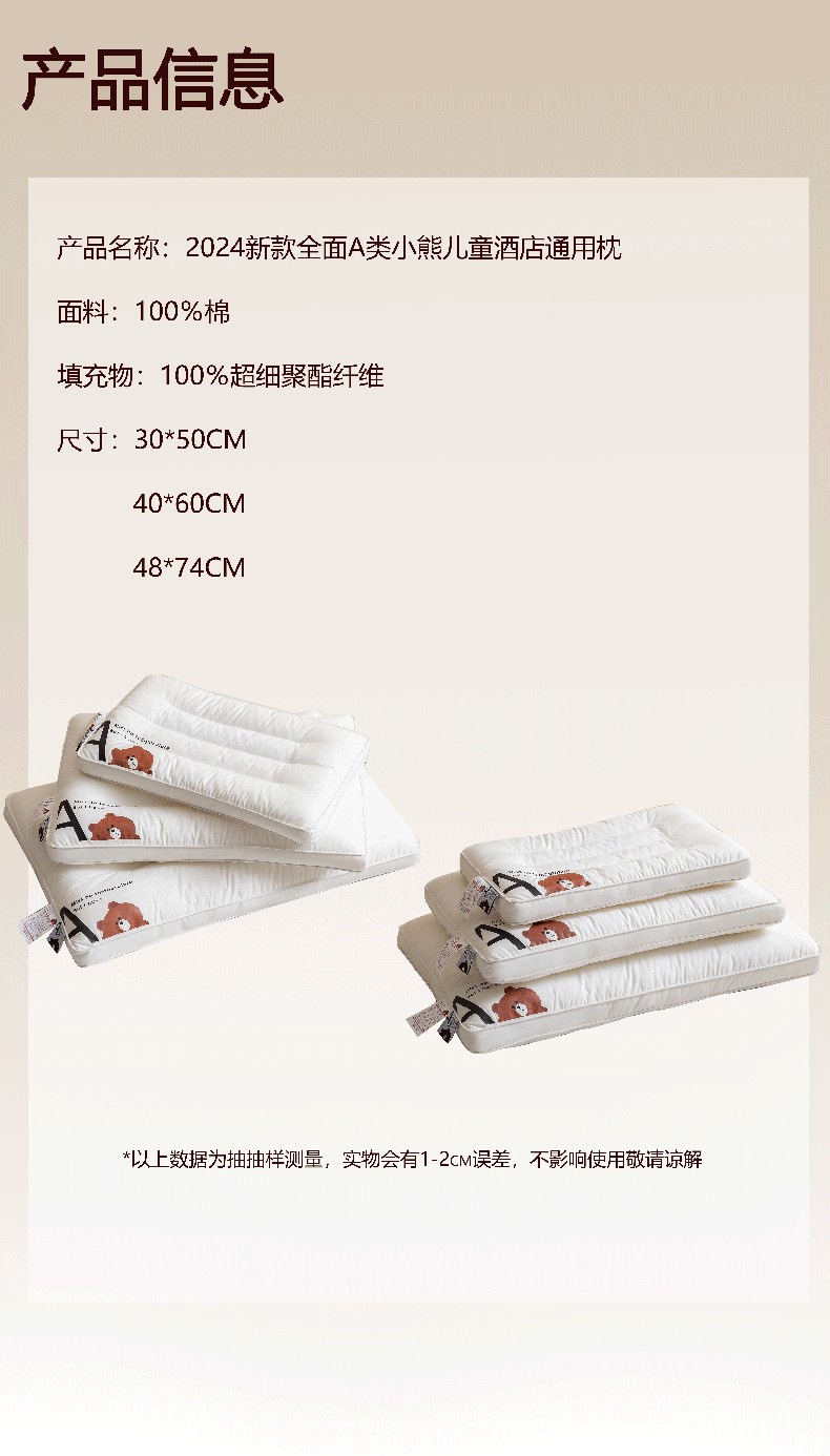 • [A급 산모 및 유아용 면] 48x74cm 성인용 베개 1팩
