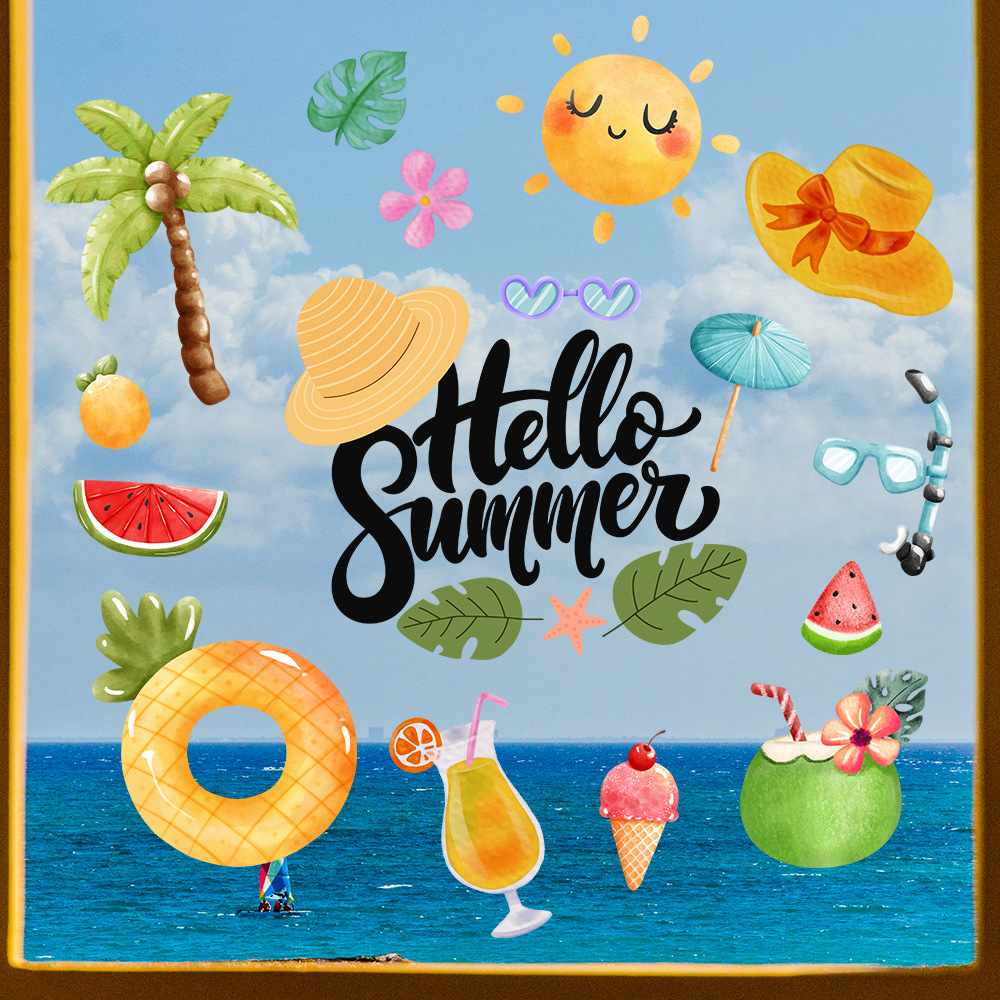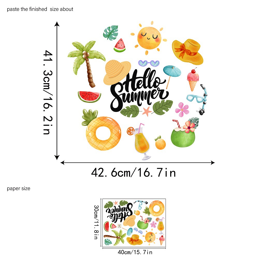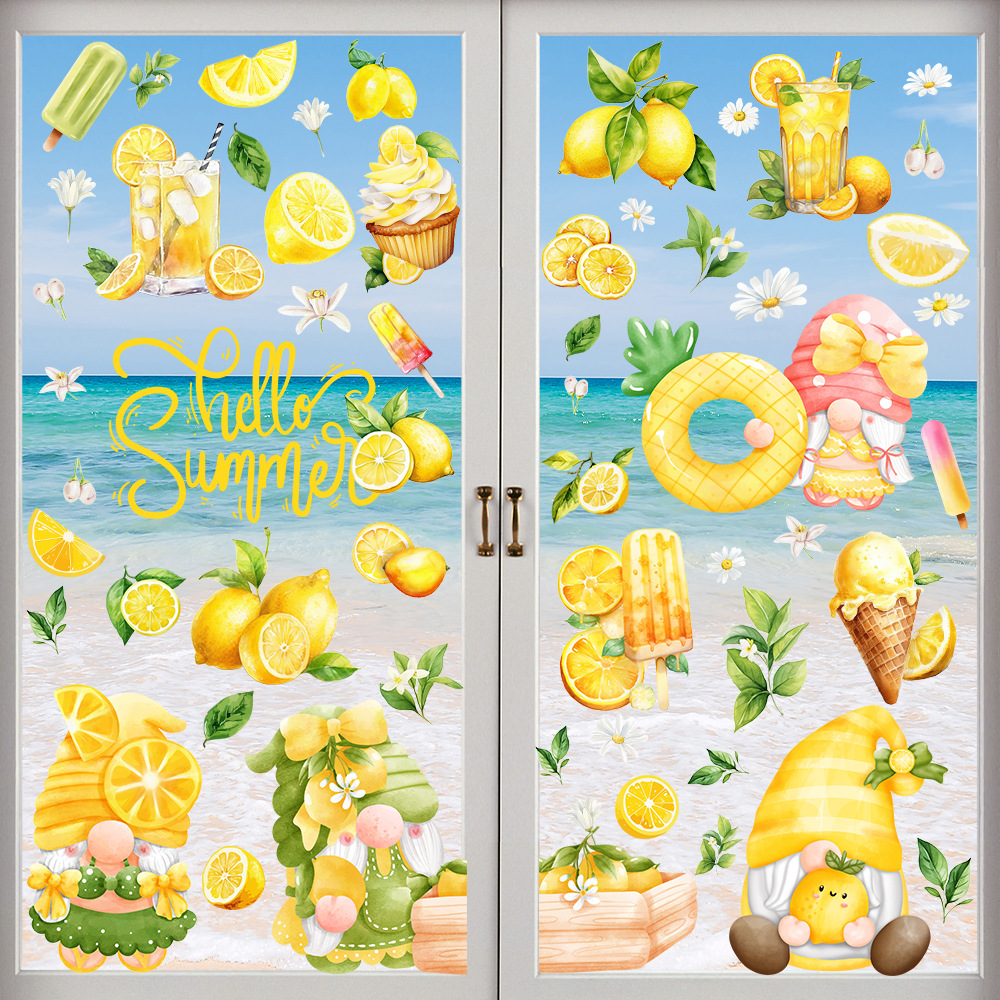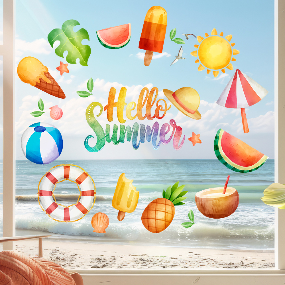 Yiyao 공장 직접 여름 과일 다채로운 얼음 음료 정전기 스티커 쇼핑몰 유리 창 이동식 장식 스티커