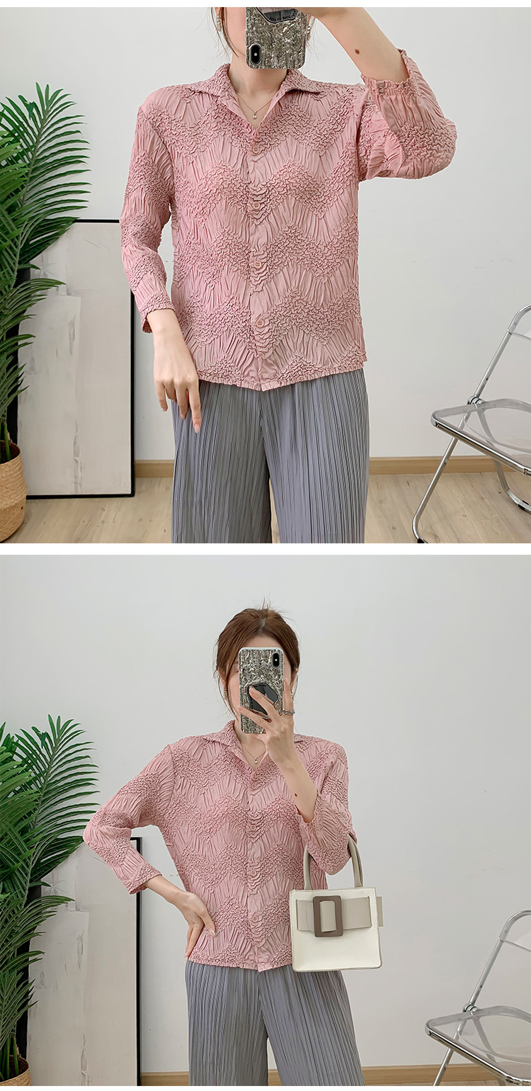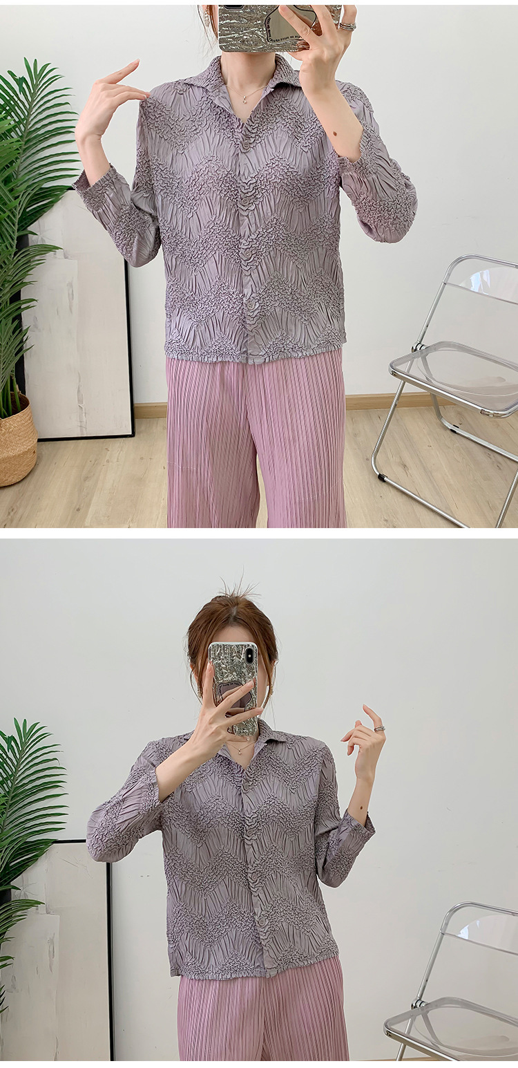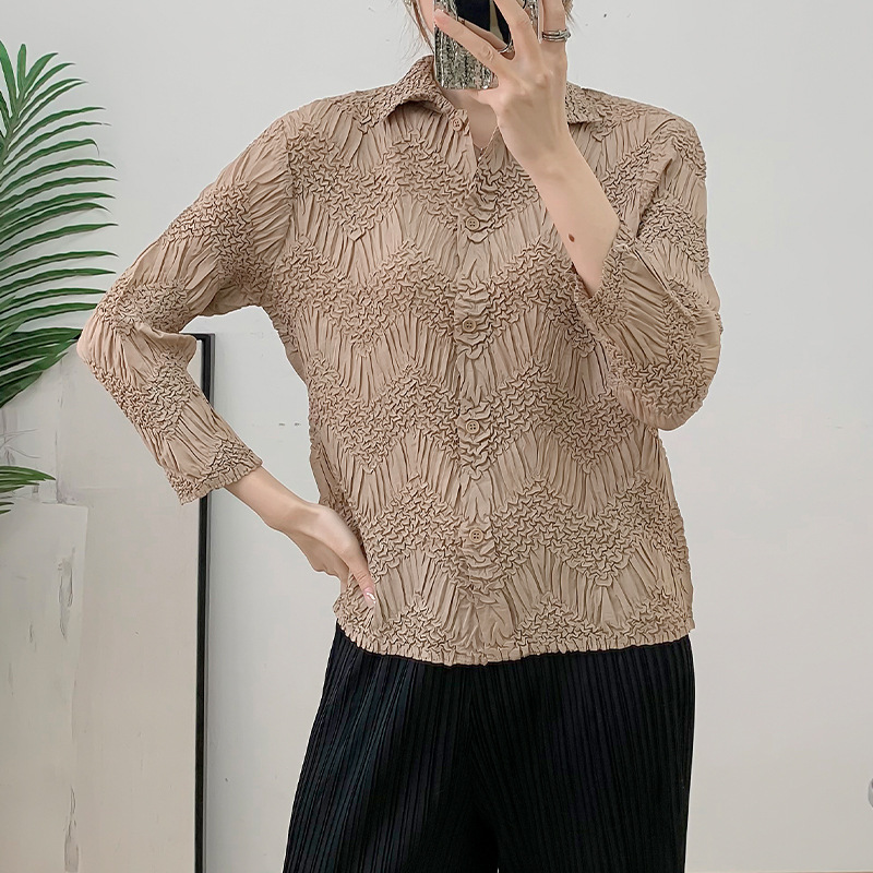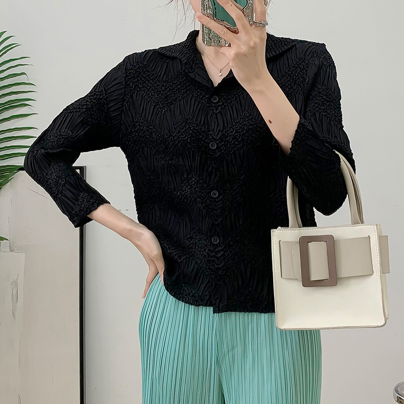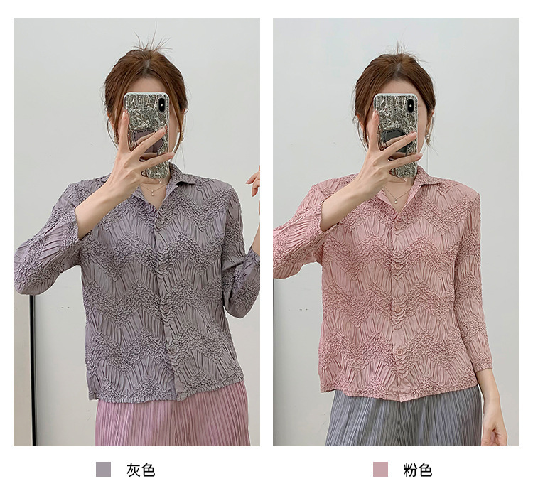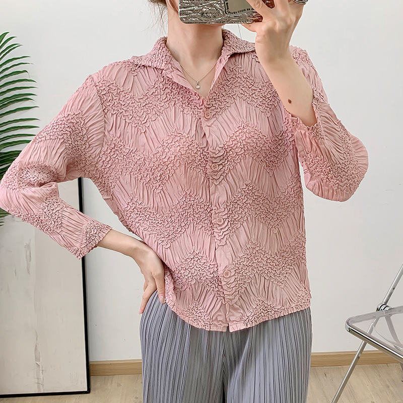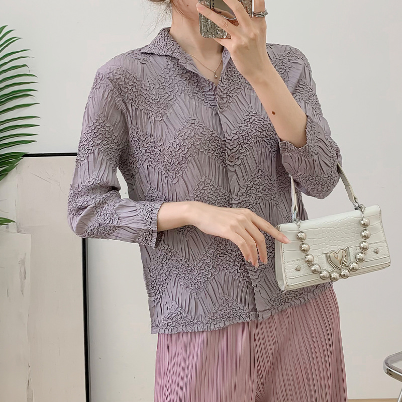 구겨진 탑 긴팔 셔츠 여성용 봄과 가을 느슨한 캐주얼 셔츠 슬림핏 플리츠 통근 2025 뉴 미야케스토어 가기