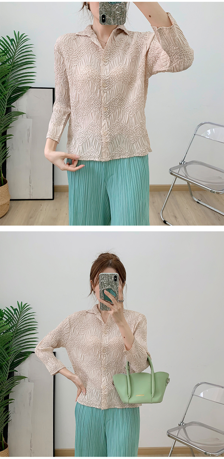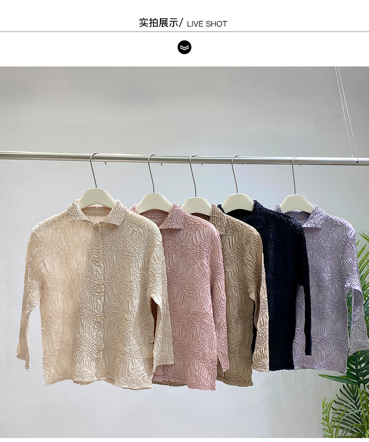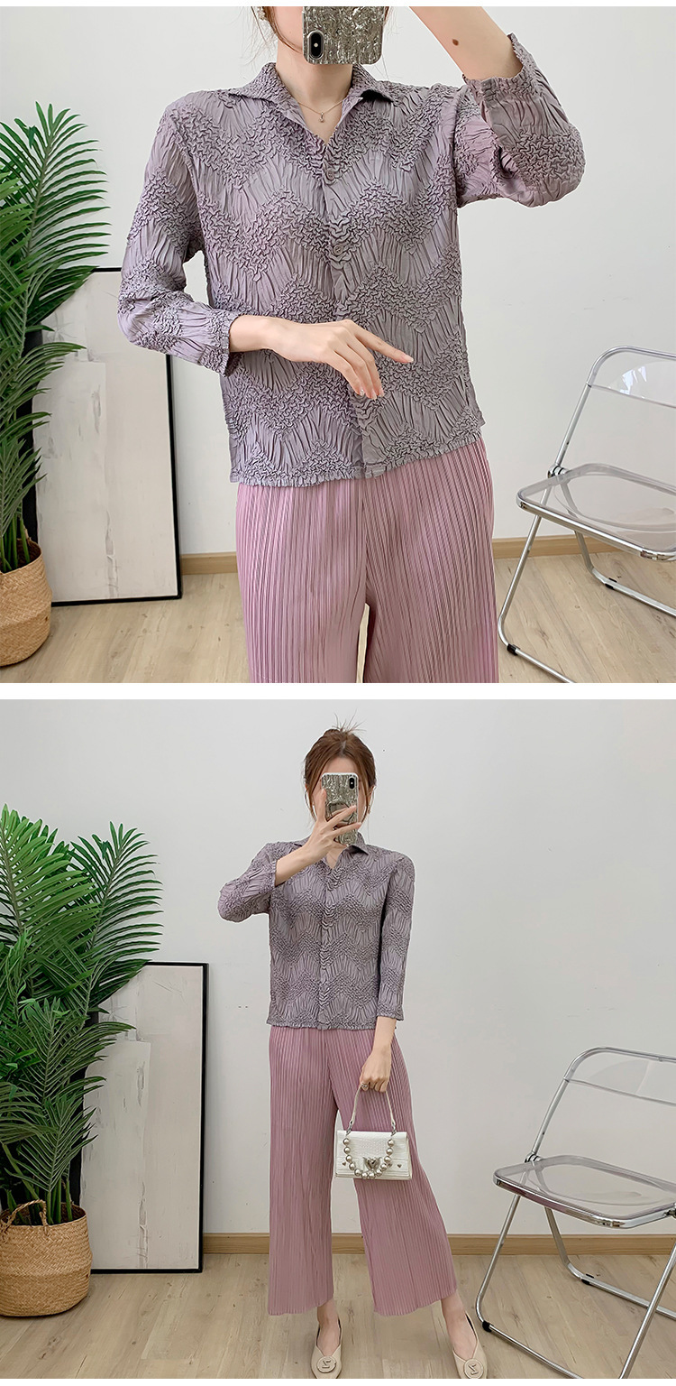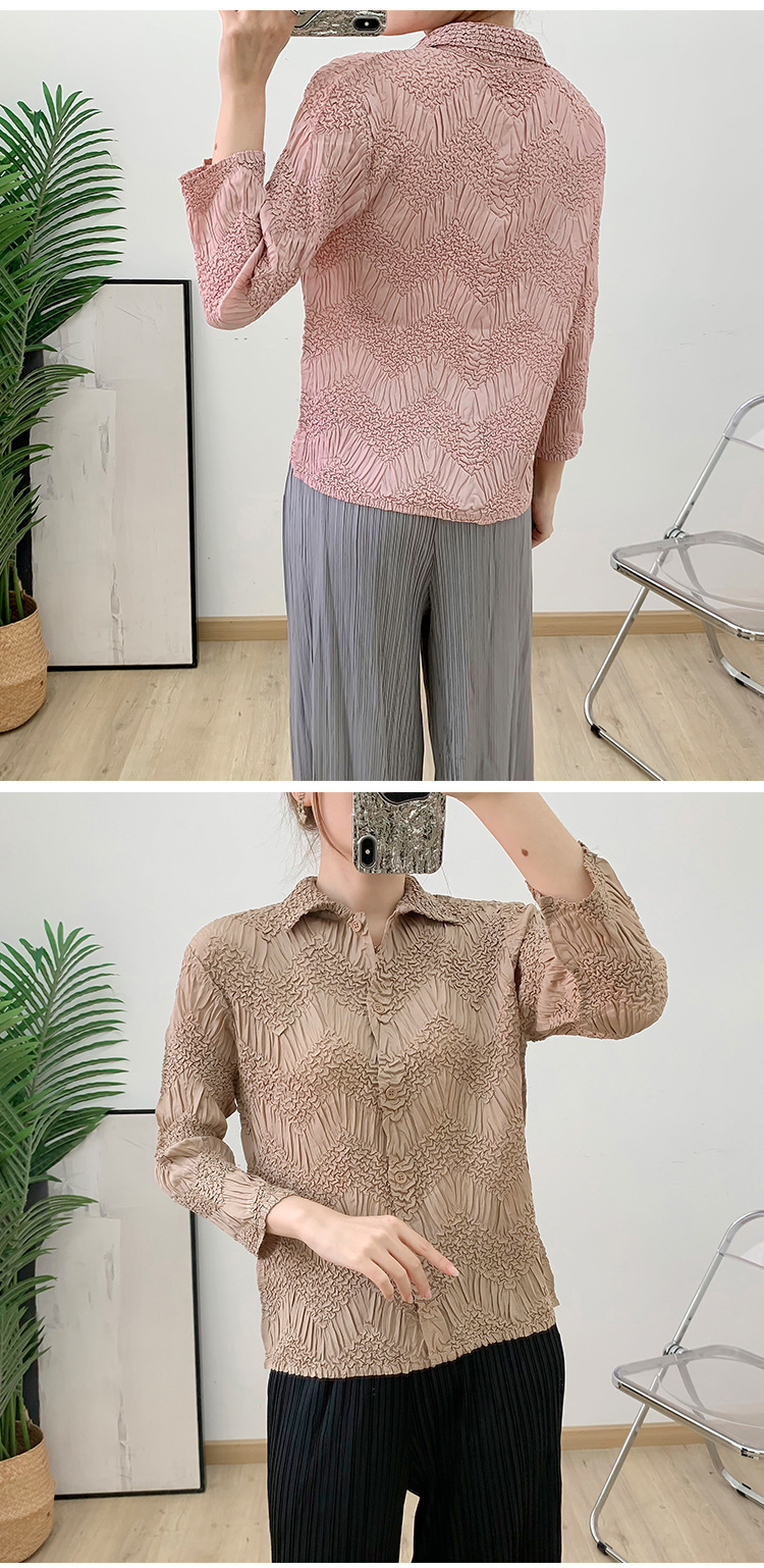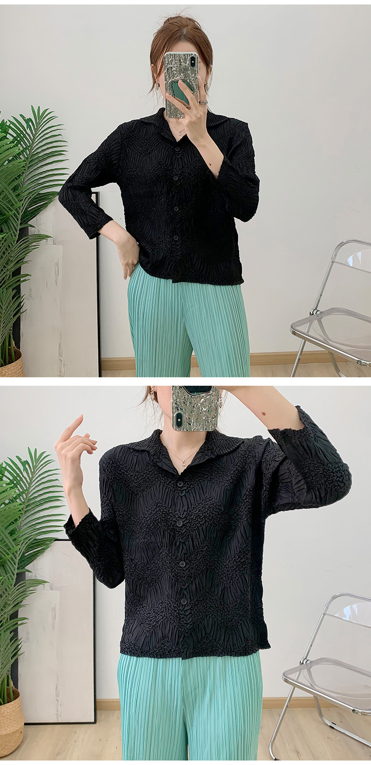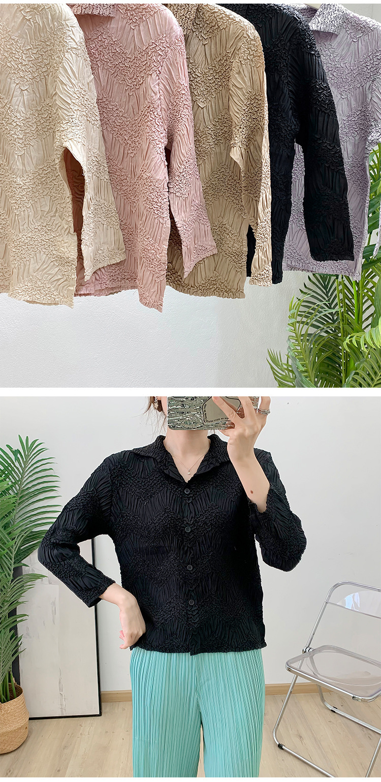 구겨진 탑 긴팔 셔츠 여성용 봄과 가을 느슨한 캐주얼 셔츠 슬림핏 플리츠 통근 2025 뉴 미야케스토어 가기