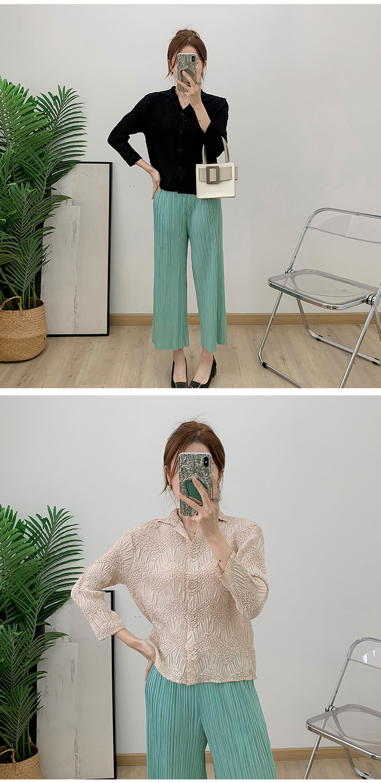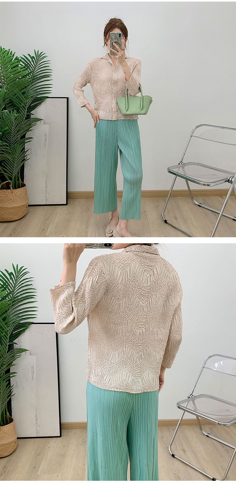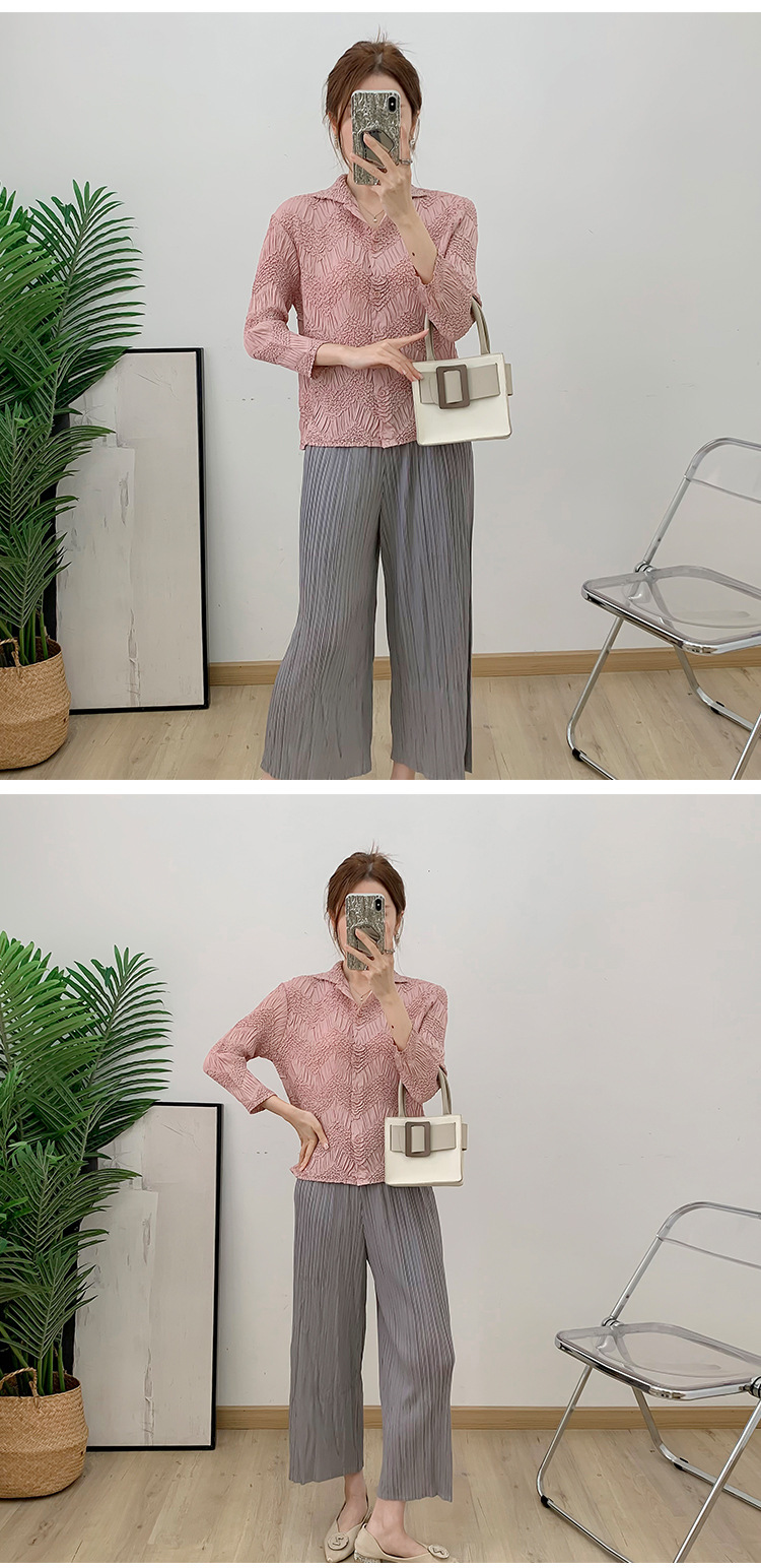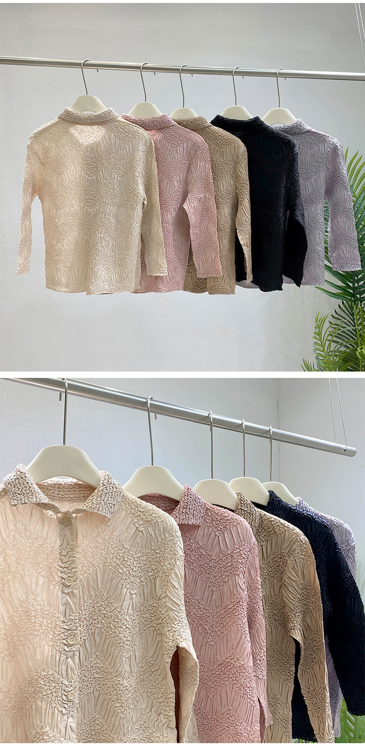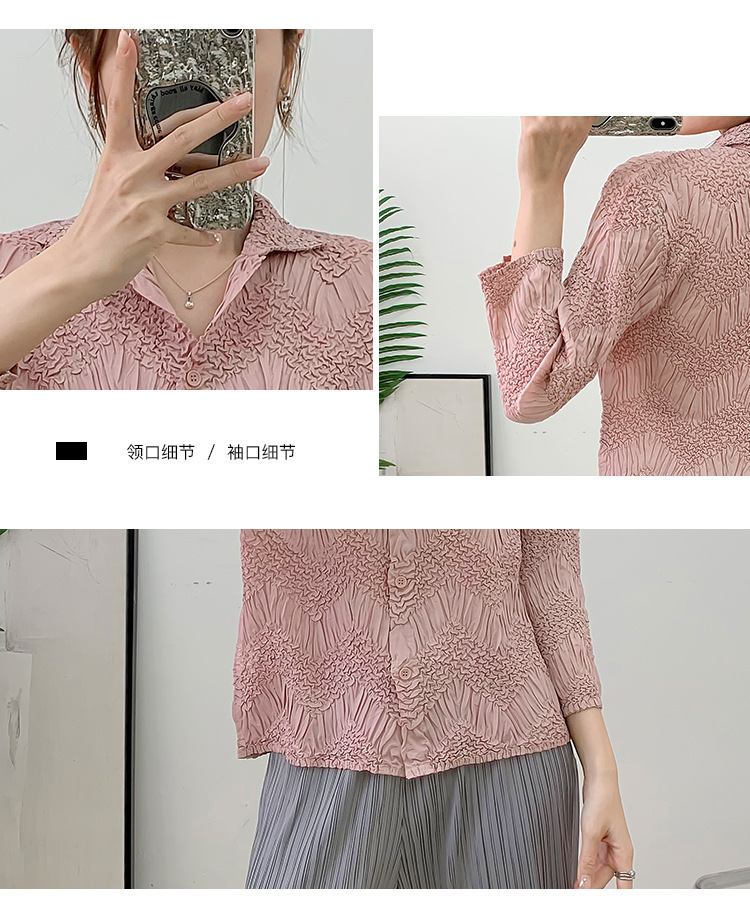 구겨진 탑 긴팔 셔츠 여성용 봄과 가을 느슨한 캐주얼 셔츠 슬림핏 플리츠 통근 2025 뉴 미야케스토어 가기