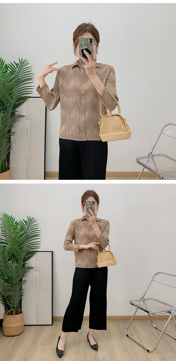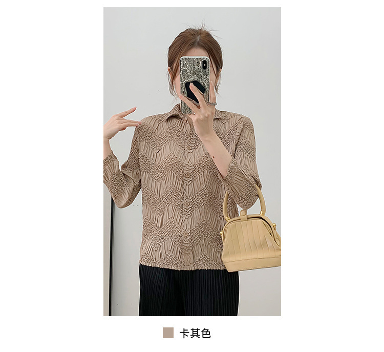 구겨진 탑 긴팔 셔츠 여성용 봄과 가을 느슨한 캐주얼 셔츠 슬림핏 플리츠 통근 2025 뉴 미야케