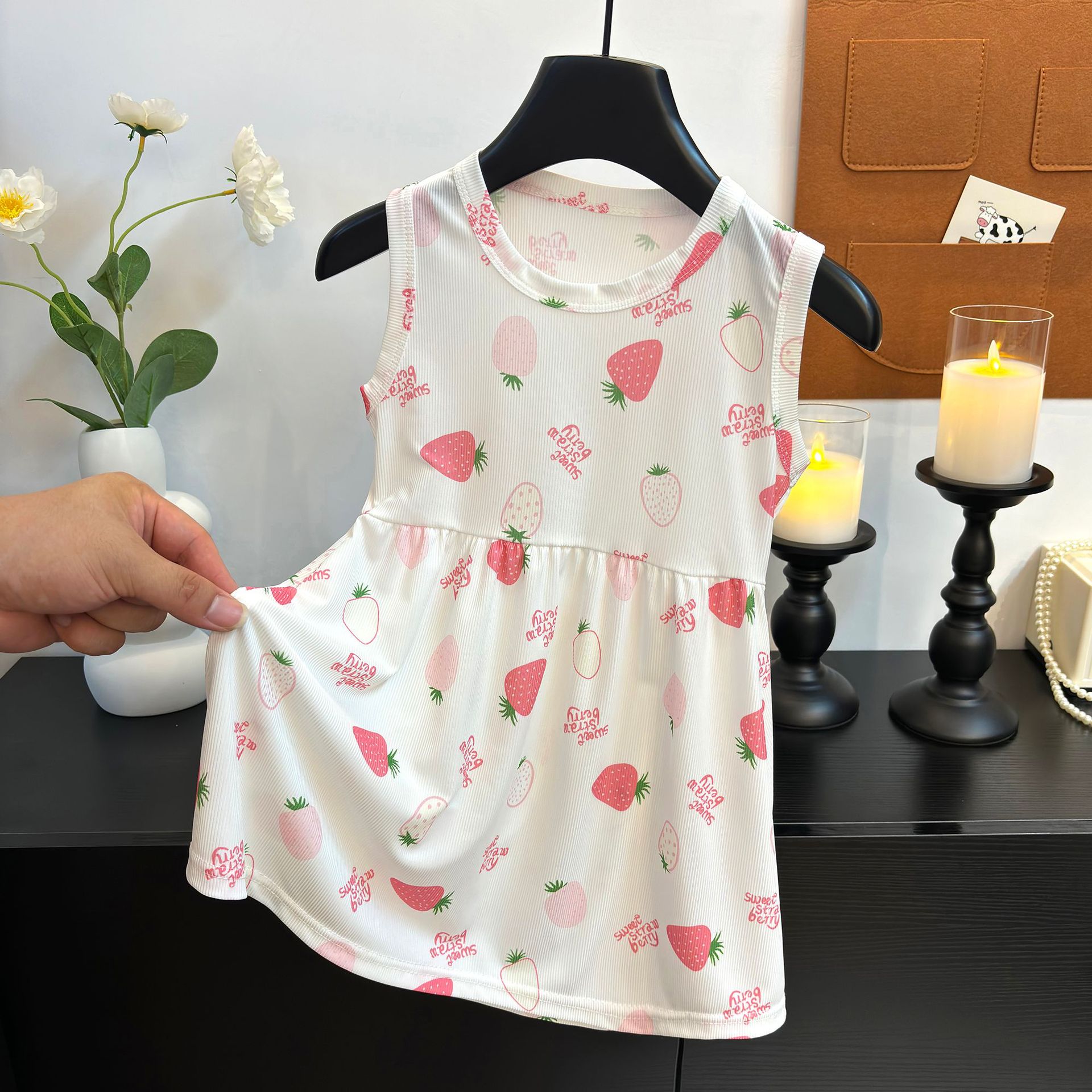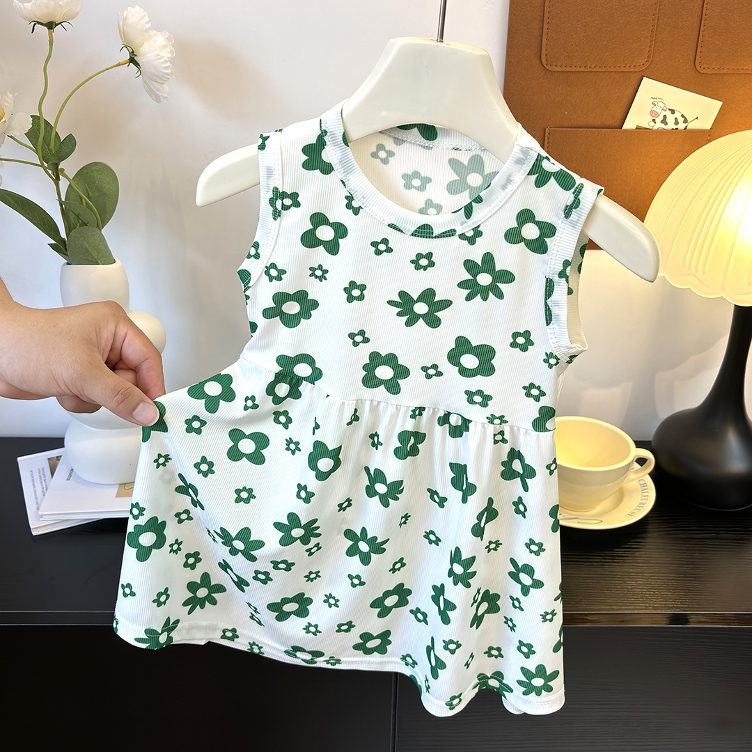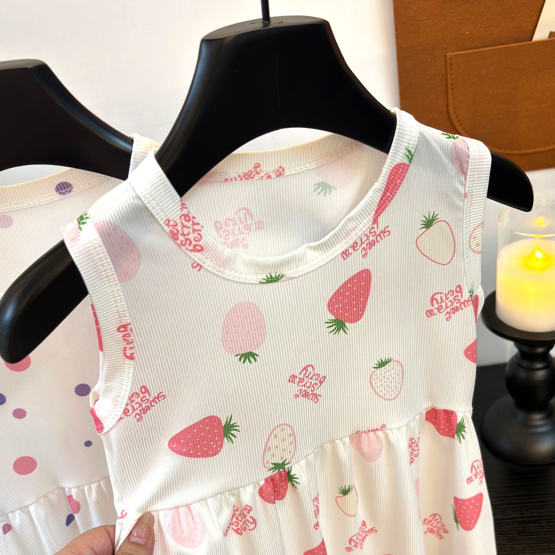 소녀 원피스 치마 2025 여름 새로운 귀여운 패션 아이스 실크 꽃 슬립 스커트 어린이 빅 스커트 도매스토어 가기