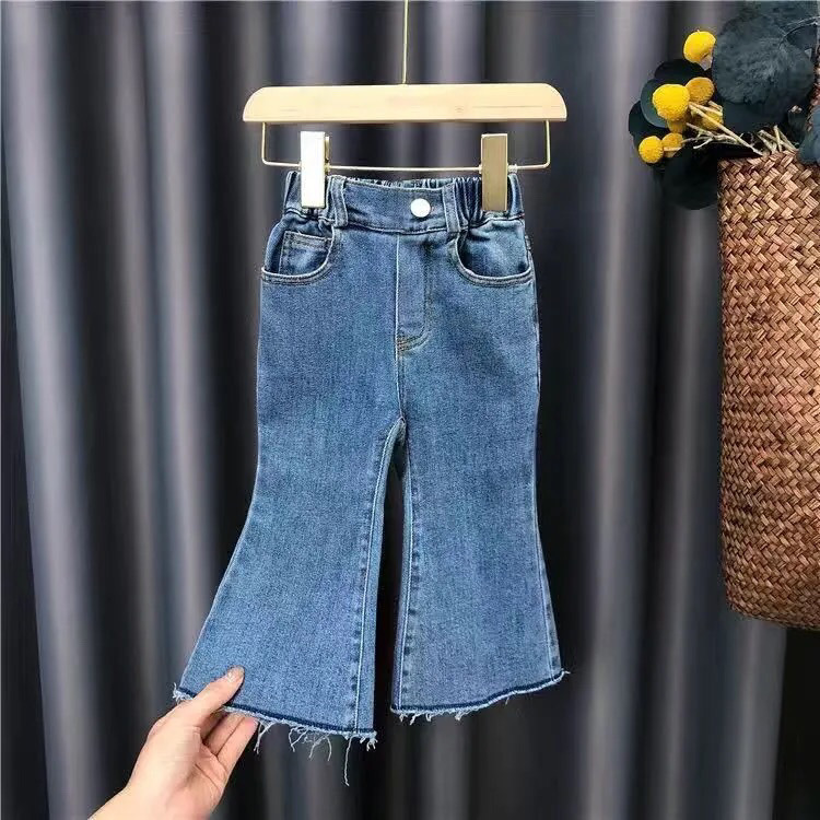 소녀의 봄과 가을 새로운 2025 세트 서양식 어린이 긴 소매 탑 걸스 데님 넓은 다리 바지 투피스 세트스토어 가기