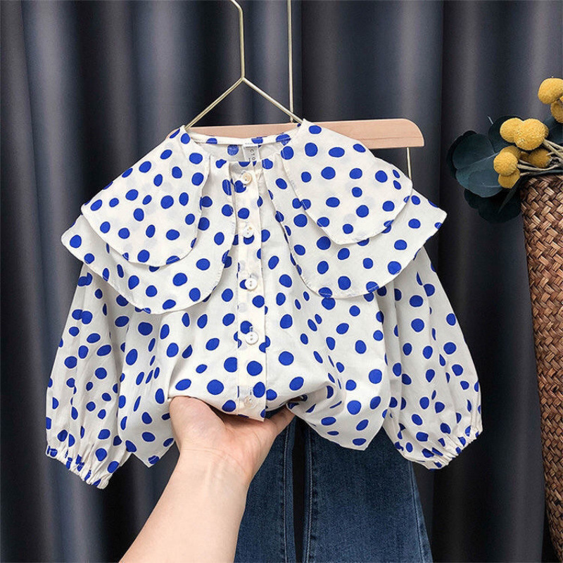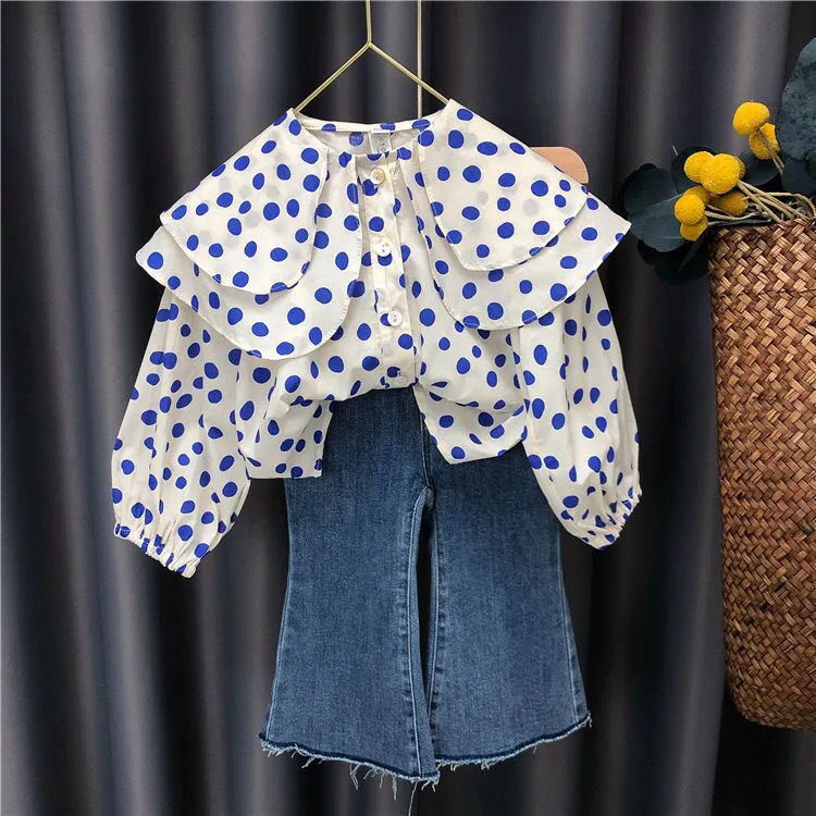 • 폴카 도트 탑 + 데님 플레어 팬츠