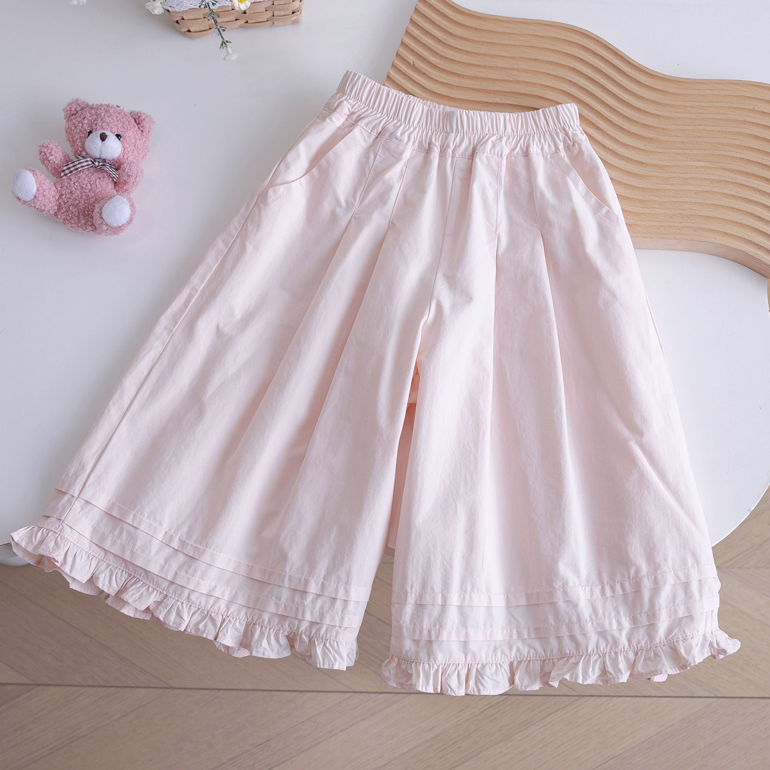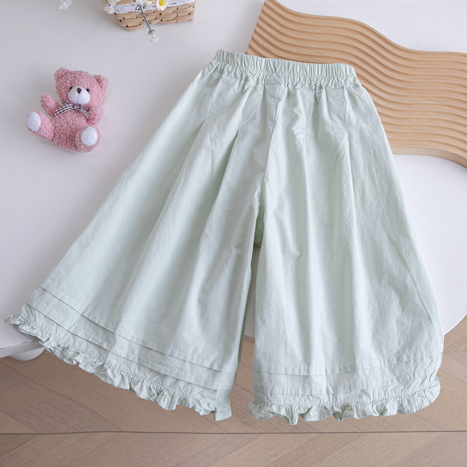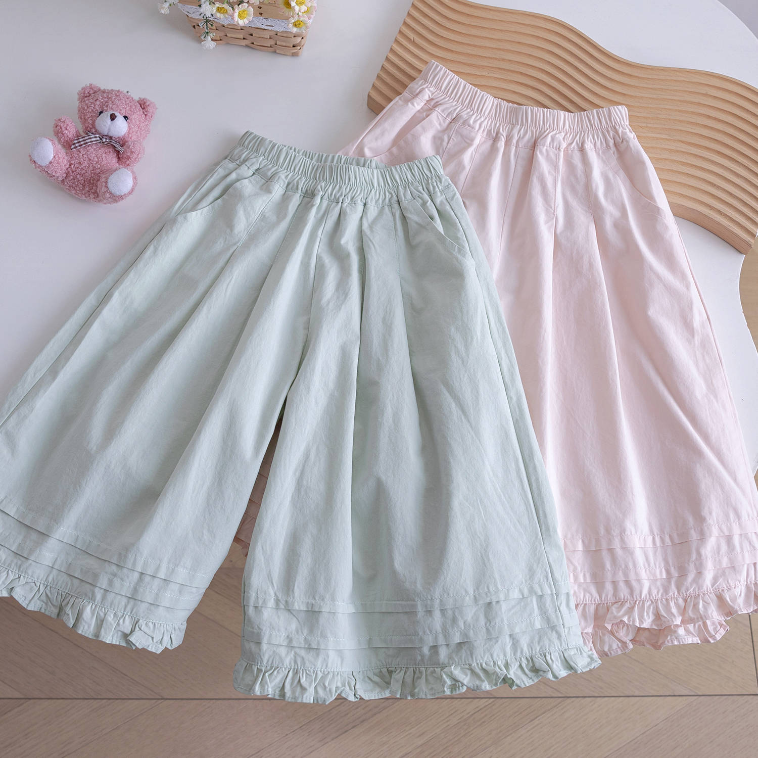 모리 스타일 어린이 신선한 올 매치 바지 2025 새로운 스타일 소녀 아기 단색 간단한 레이스 느슨한 와이드 레그 바지스토어 가기