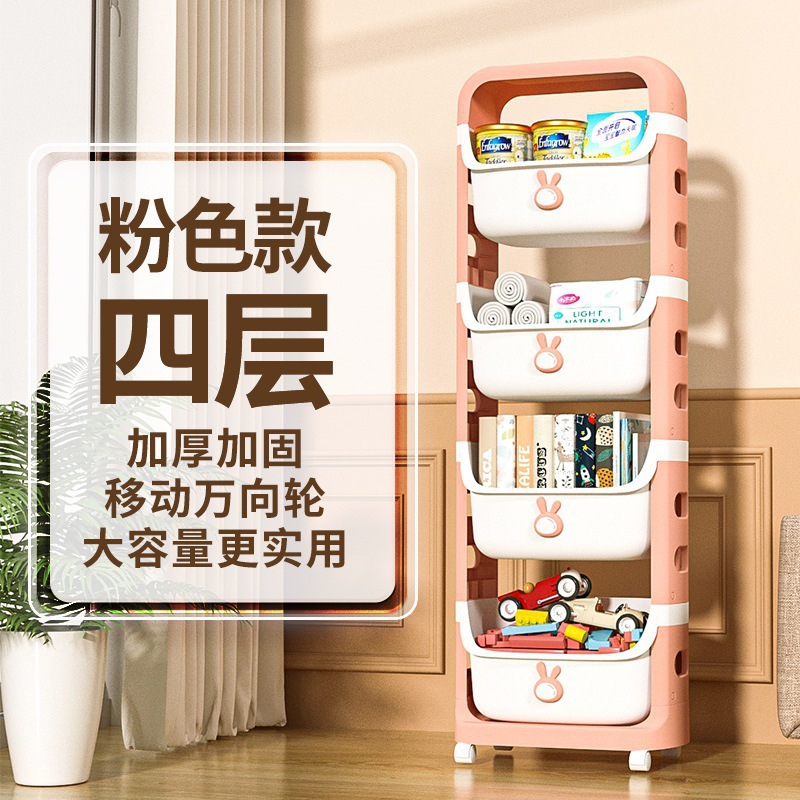 플라스틱 보관 랙 스낵 책꽂이 바닥 트롤리 주방 욕실 다층 보관 이동식 휠 Collator스토어 가기