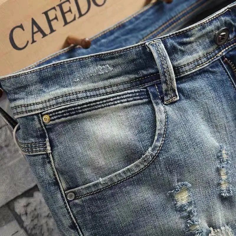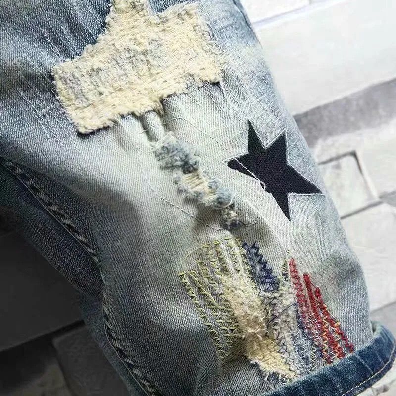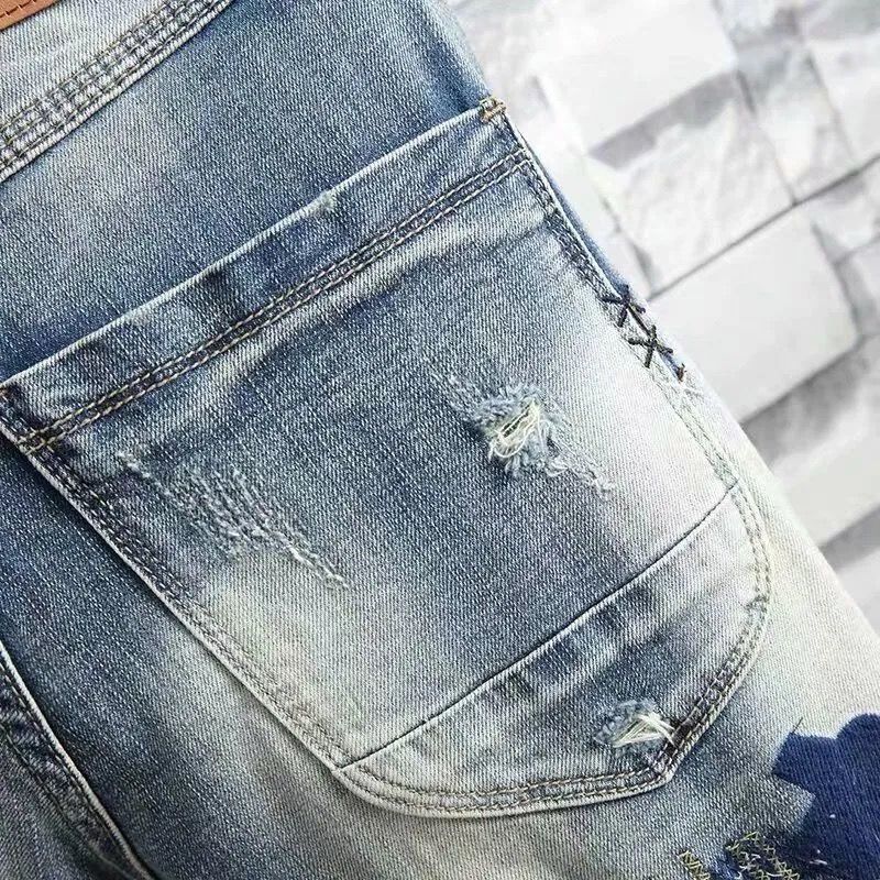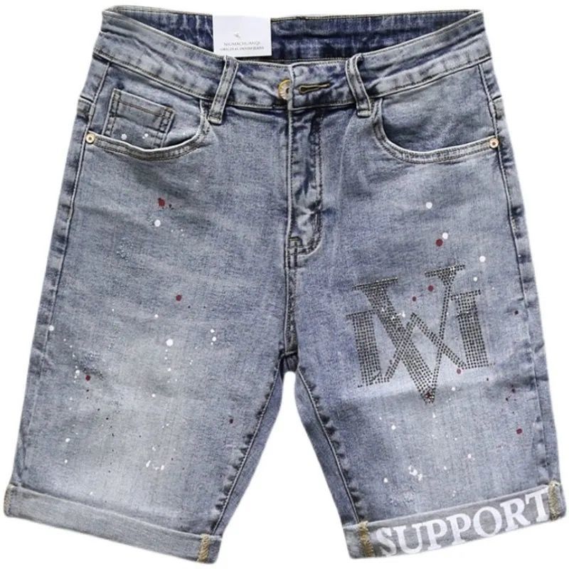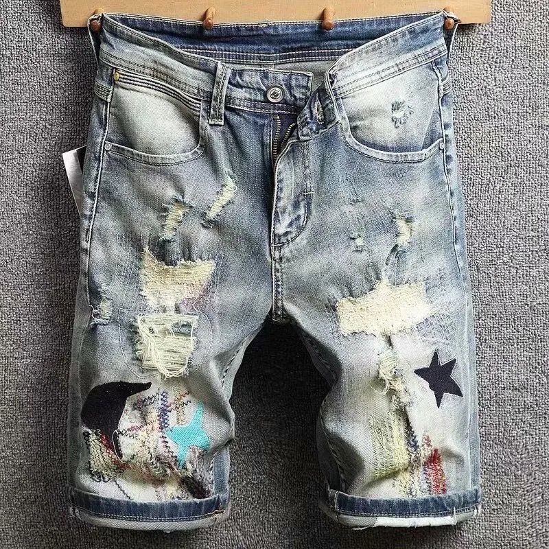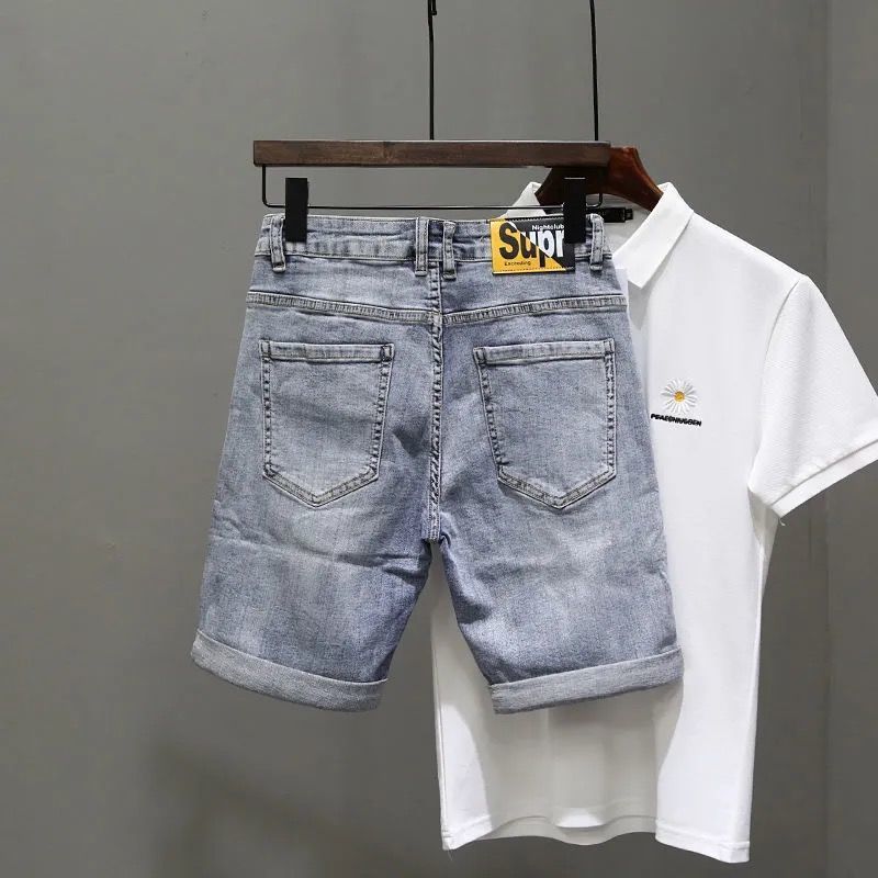 데님 반바지 남자 유행 브랜드 잘 생긴 밝은 색 여름 뜨거운 드릴링 슬림-맞는 올매치 유행 5 점 짧은스토어 가기