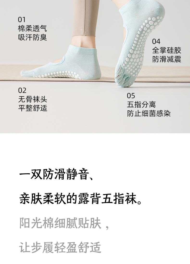 오픈 백 다섯 개의 토 요가 양말 실리콘 미끄럼 방지 필라테스 바닥 소프트 하단 코튼 양말 스포츠 토크 여성스토어 가기