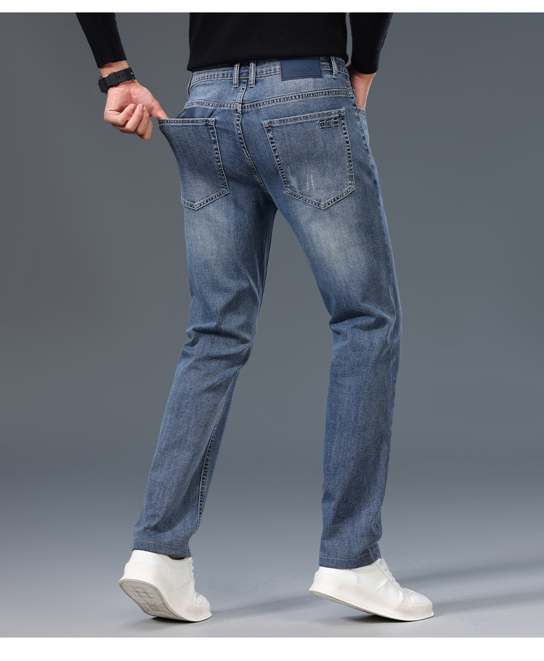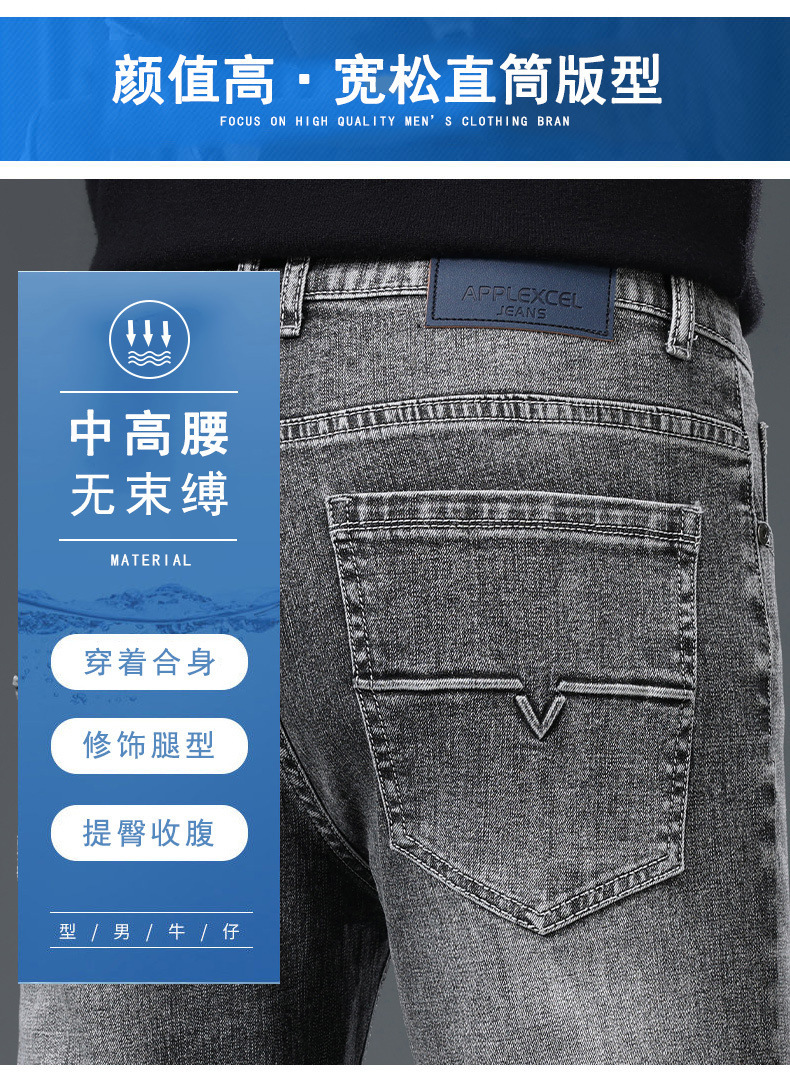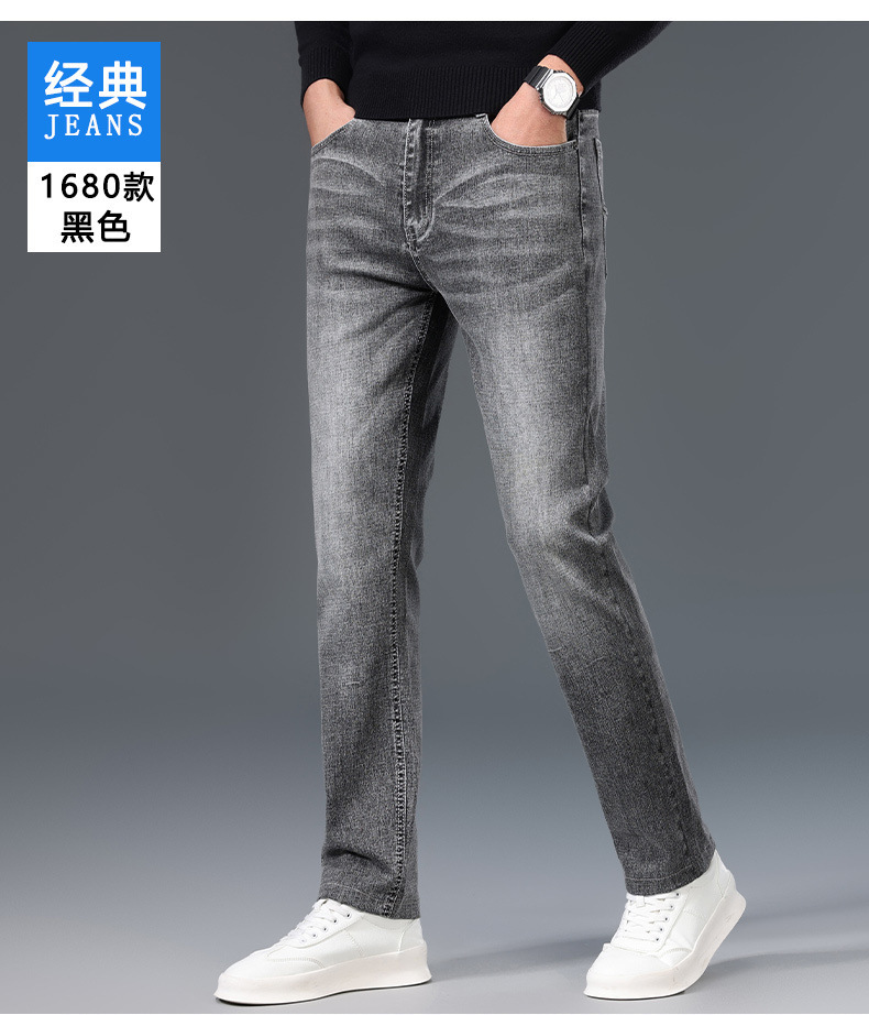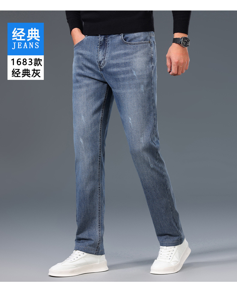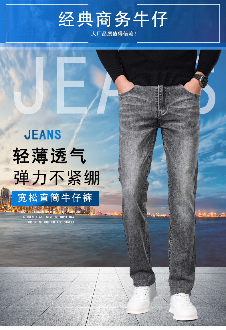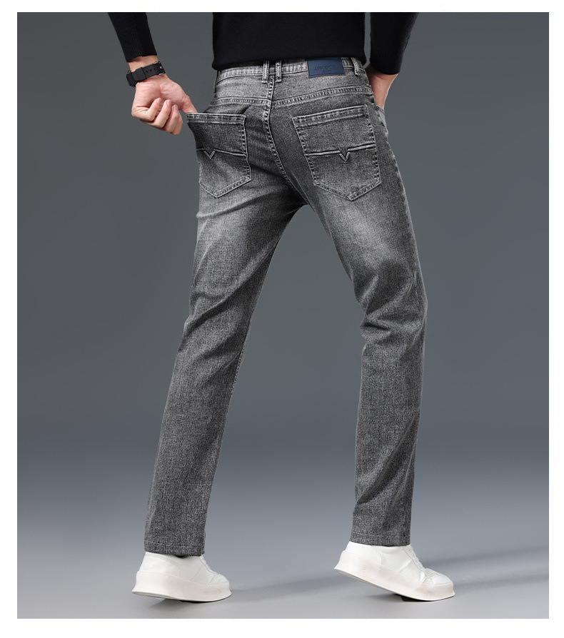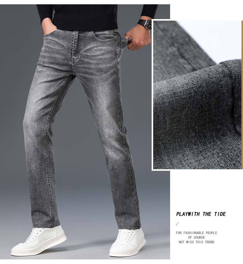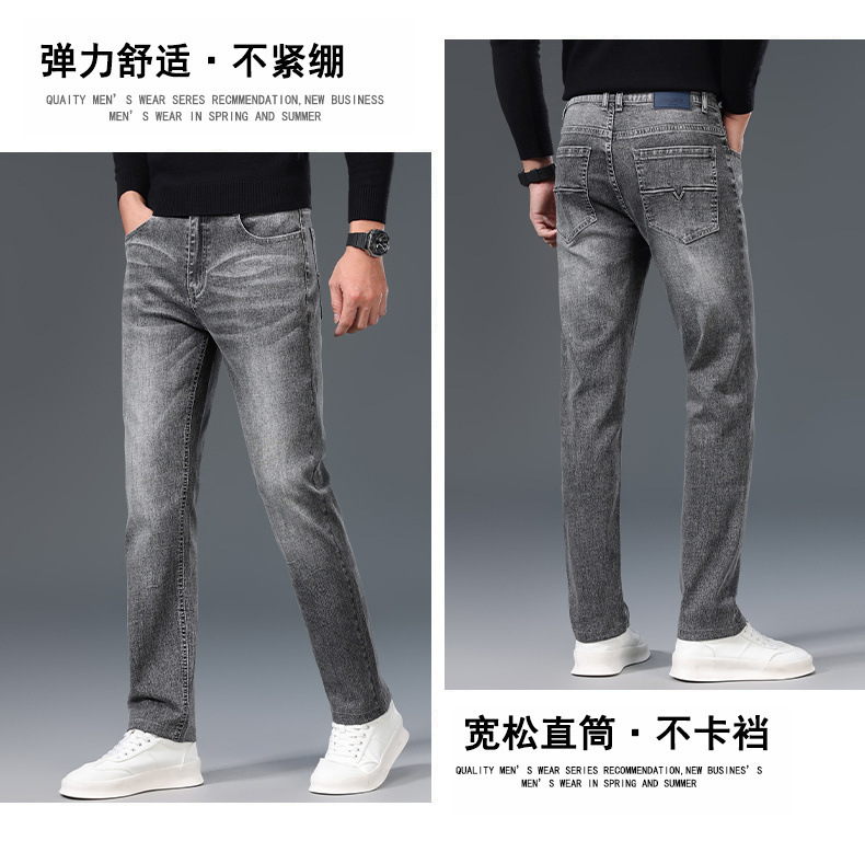 여름 뉴 남성용 청바지 슬림 핏 스트레이트 하이 엔드 스트레치 올 매치 캐주얼 트렌디 남성용 바지 그레이 롱 바지스토어 가기