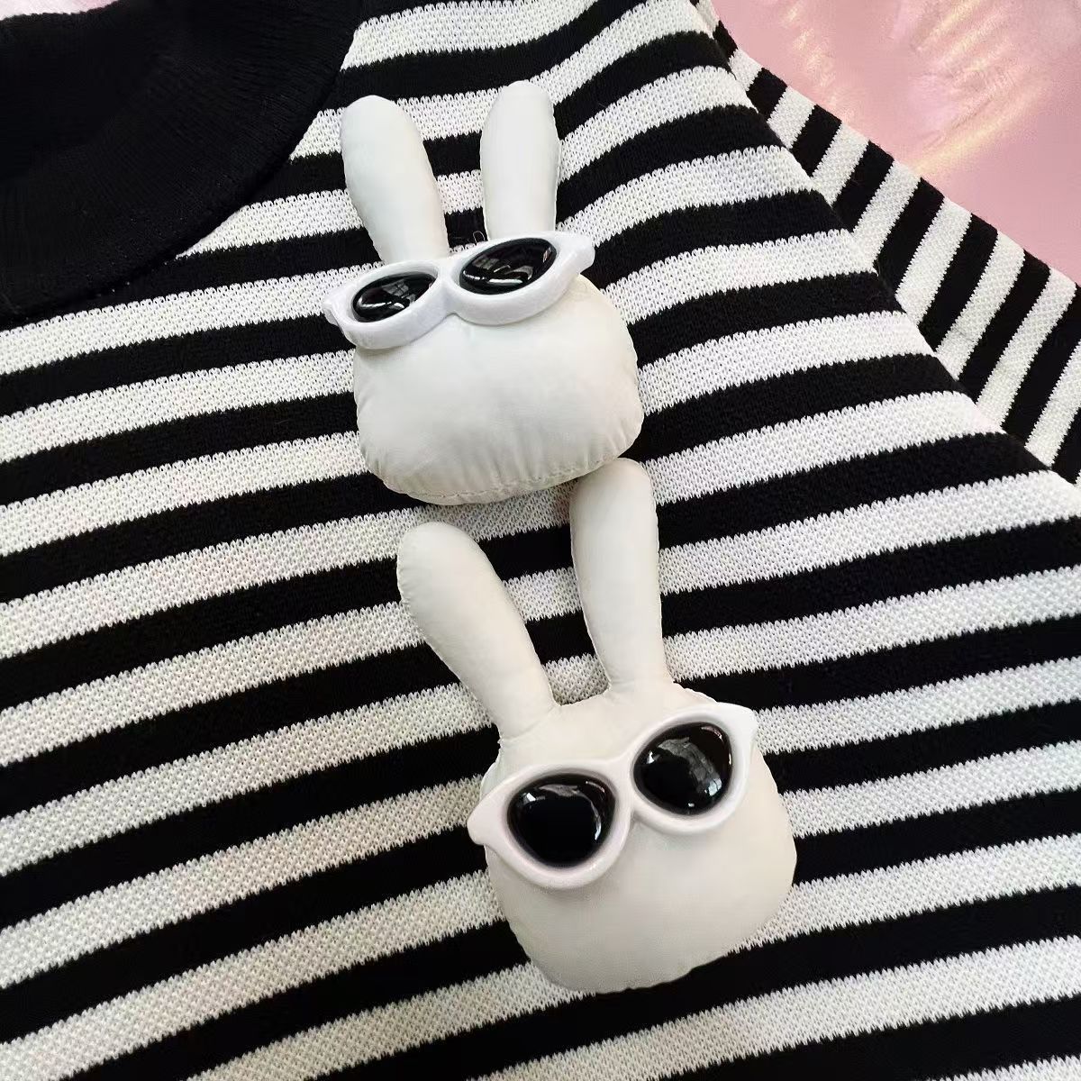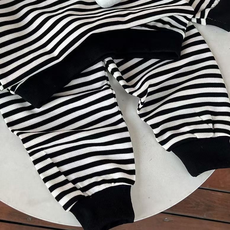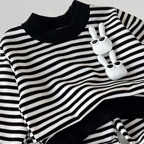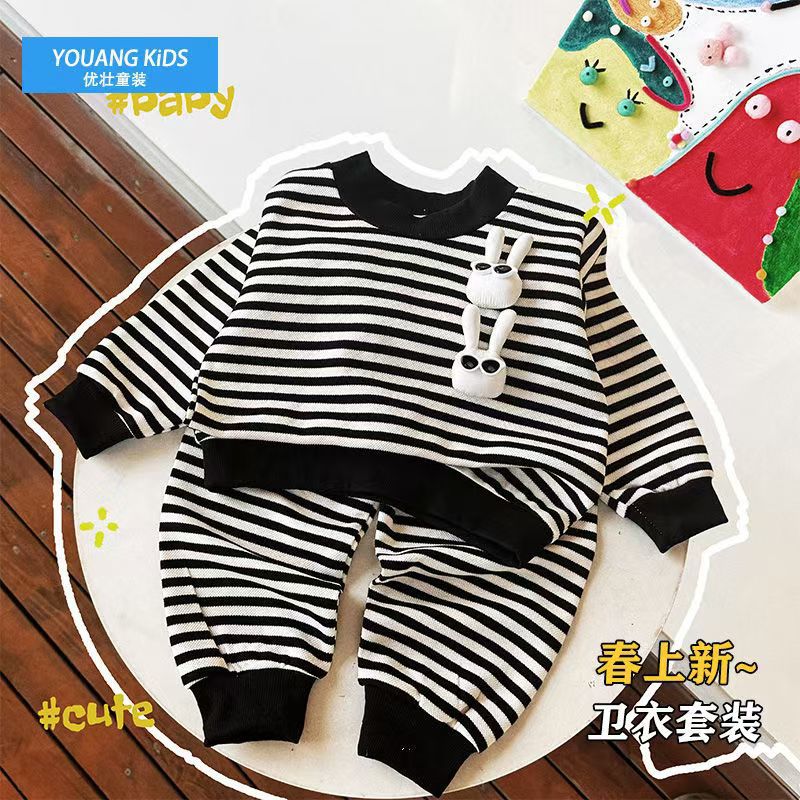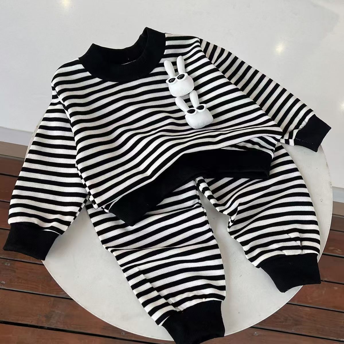 새로운 어린이 홈 의류 클래식 패션 올매치 스트라이프 인형 토끼 세트 소년 소녀를위한 캐주얼 투피스 세트