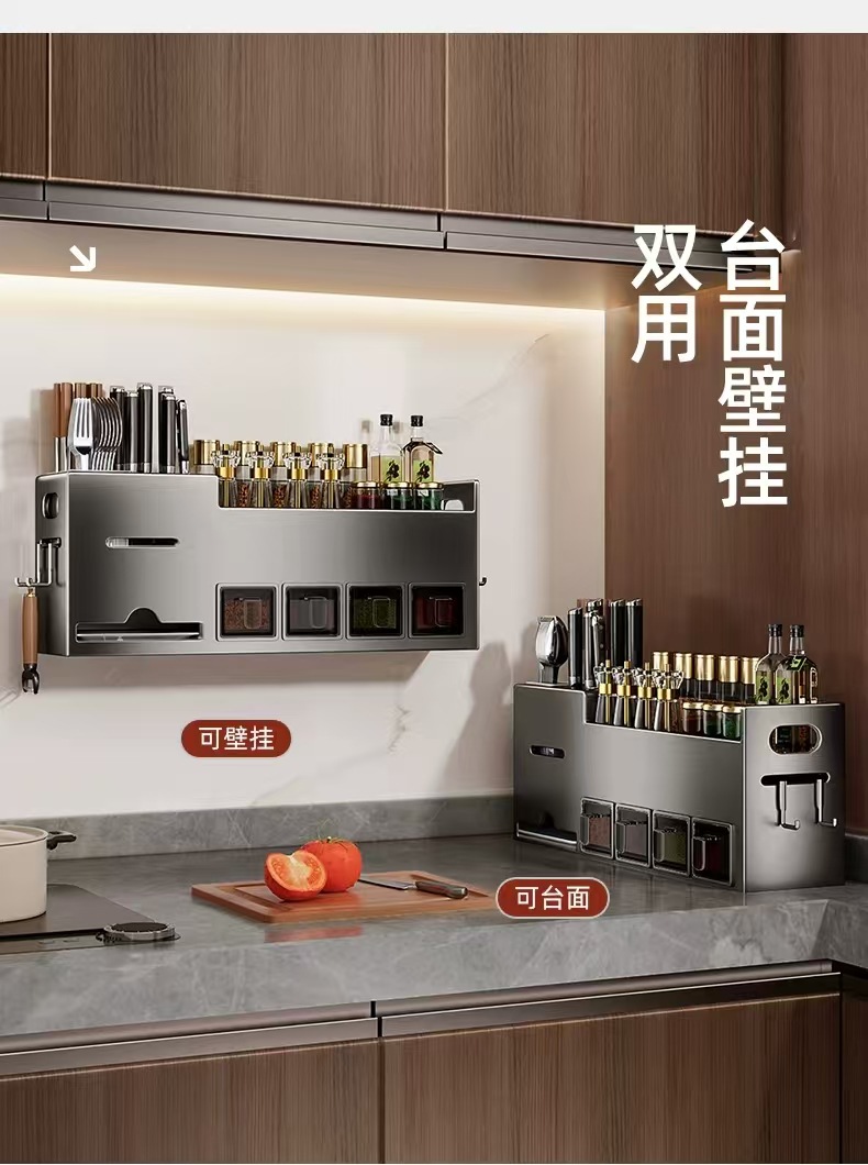 주방 스토리지 랙 펀치 프리 스테인레스 스틸 가정용 벽걸이 조미료 젓가락 나이프 랙 공급 통합 스토리지 랙