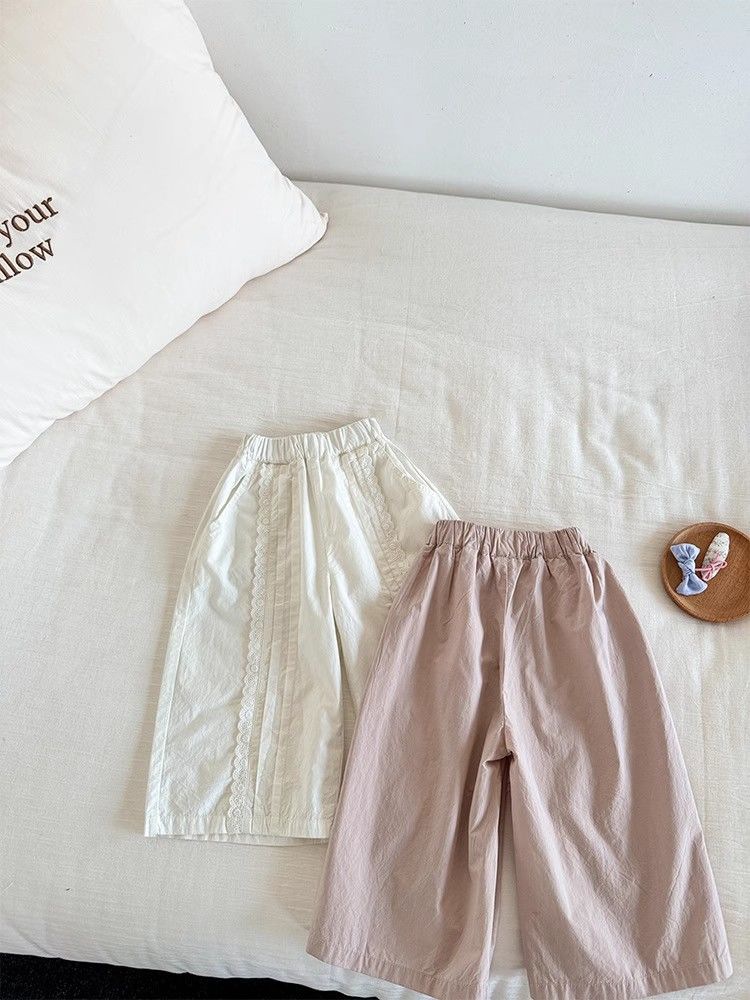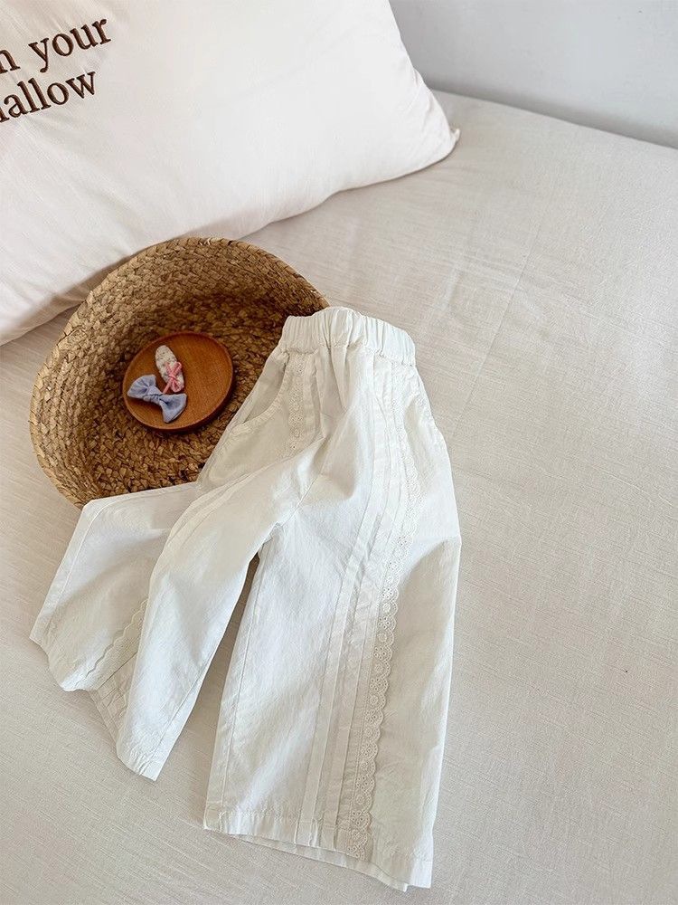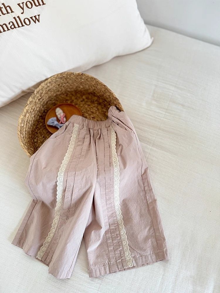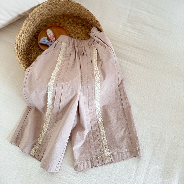 여자 여름 캐주얼 바지 아기의 서양식 어린이 맞춤형 트렌디 브랜드 한국 스타일 유행 레이스 레이스 신선한 와이드 다리 바지스토어 가기