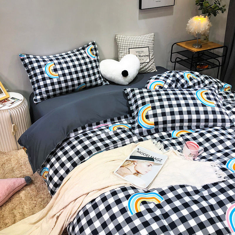 Nanjiren Ins 단색 간단한 4 피스 퀼트 커버 퀼트 커버 학생 기숙사 침대 시트 3 피스 침구