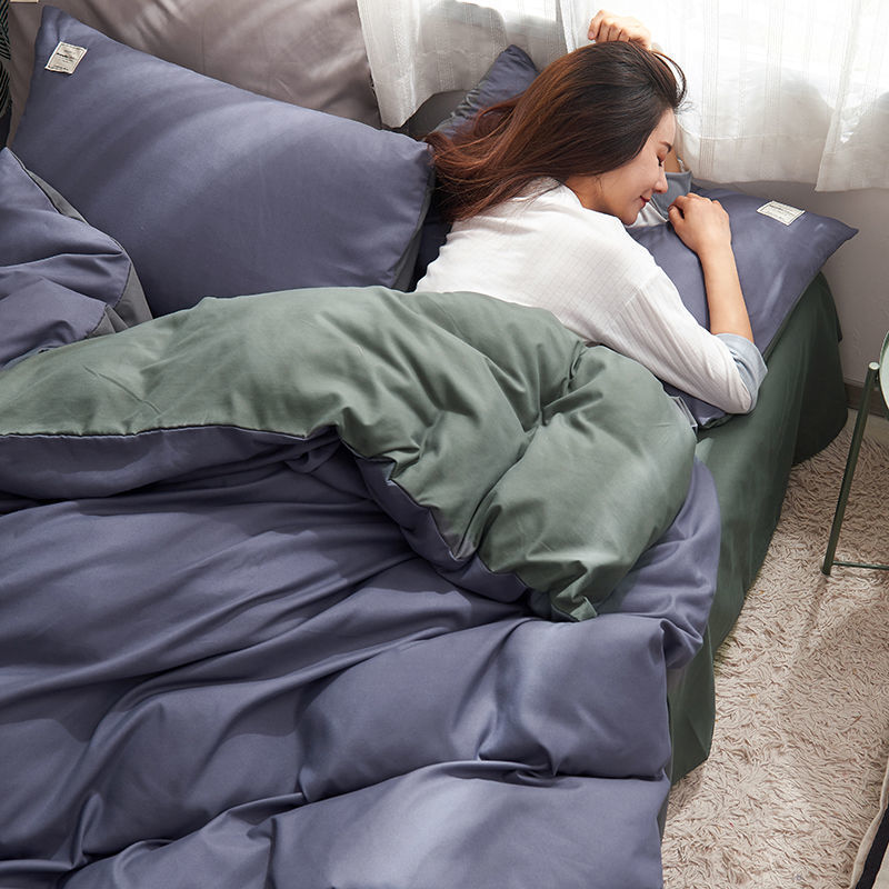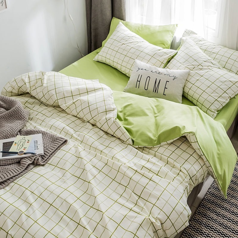 Nanjiren Ins 단색 간단한 4 피스 퀼트 커버 퀼트 커버 학생 기숙사 침대 시트 3 피스 침구스토어 가기
