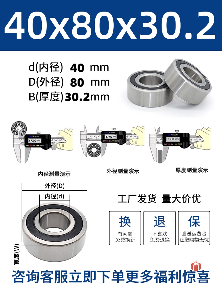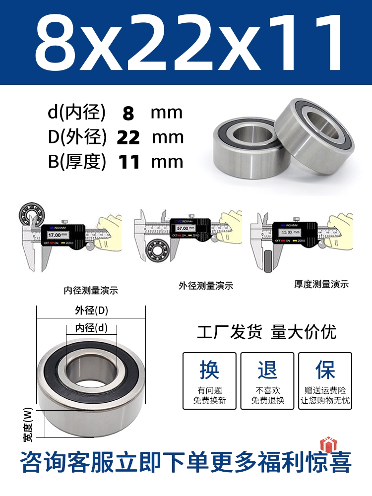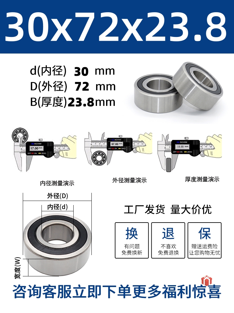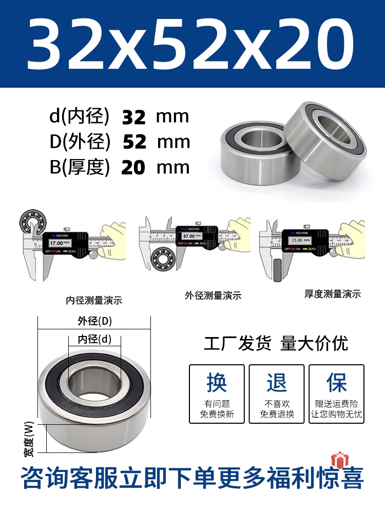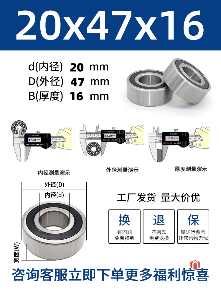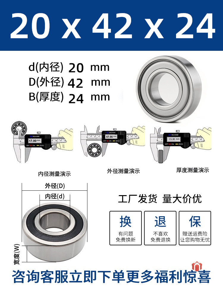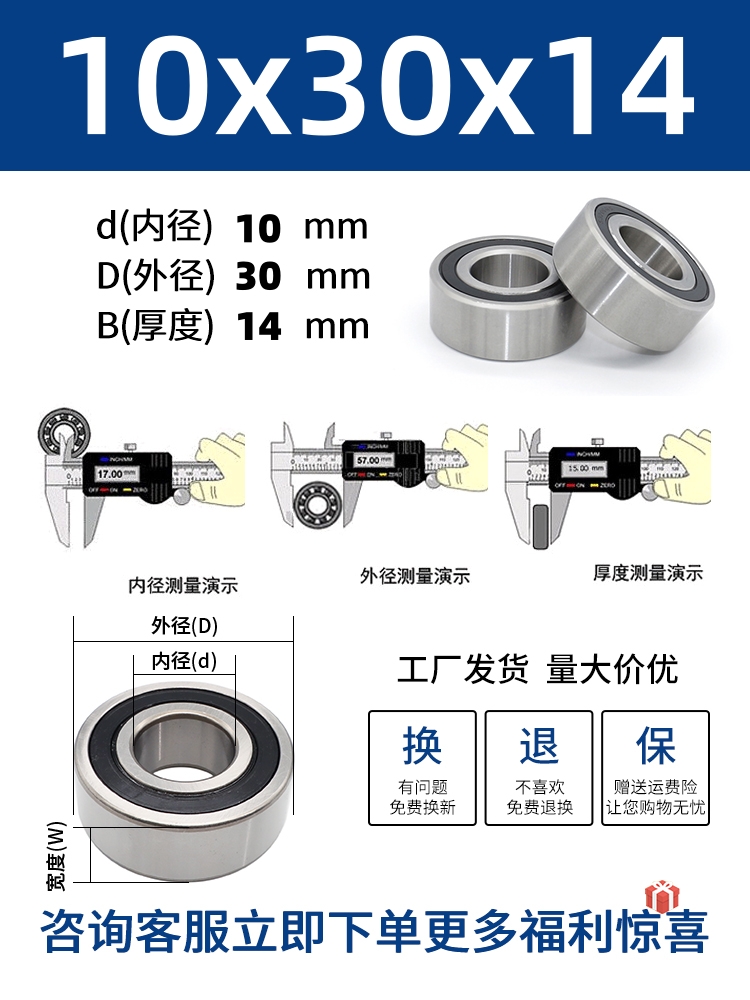 두꺼운 베어링 이중 열 볼 베어링 넓어진 베어링 내부 직경 5 8 10 15 17 20 25 30 40-80스토어 가기