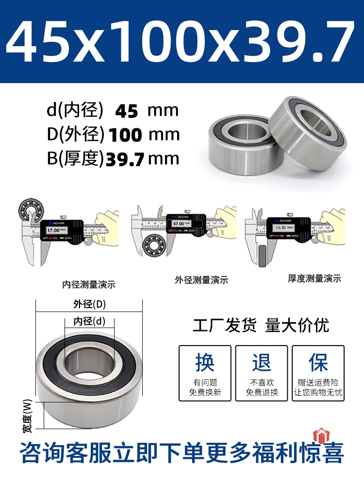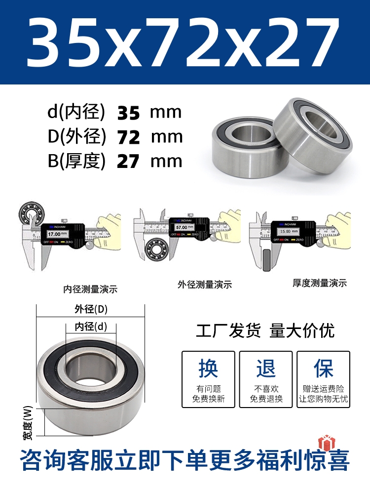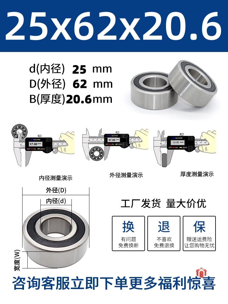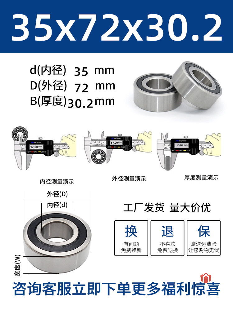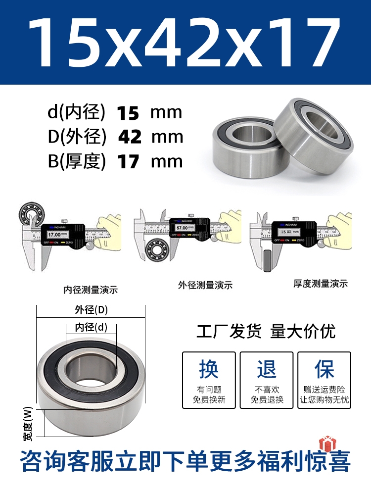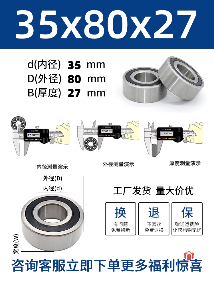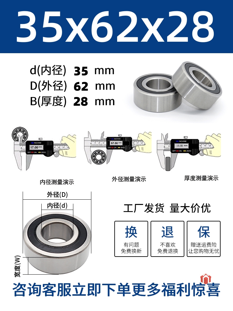 두꺼운 베어링 이중 열 볼 베어링 넓어진 베어링 내부 직경 5 8 10 15 17 20 25 30 40-80스토어 가기