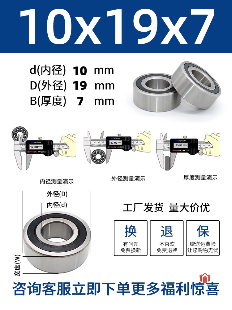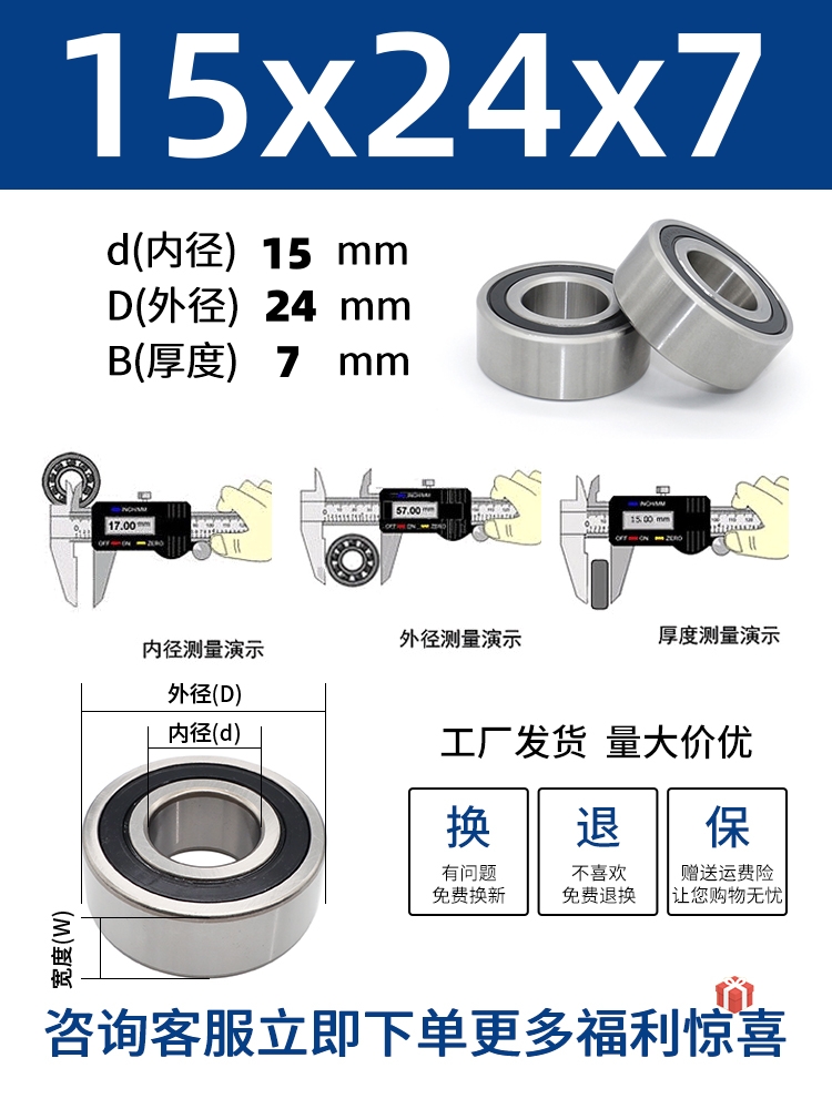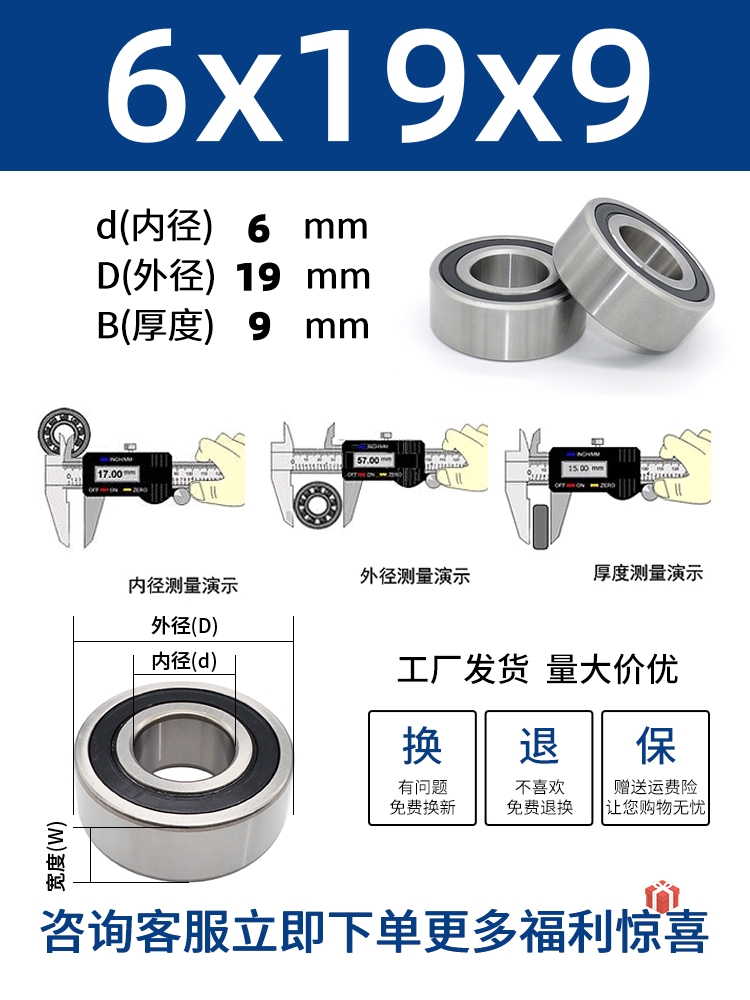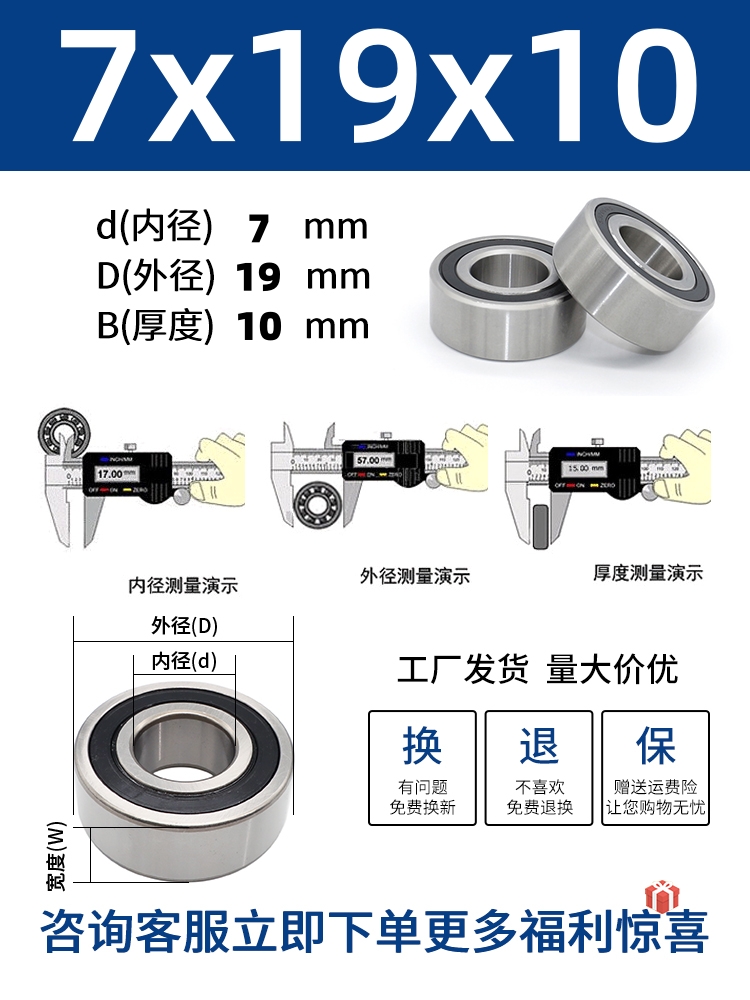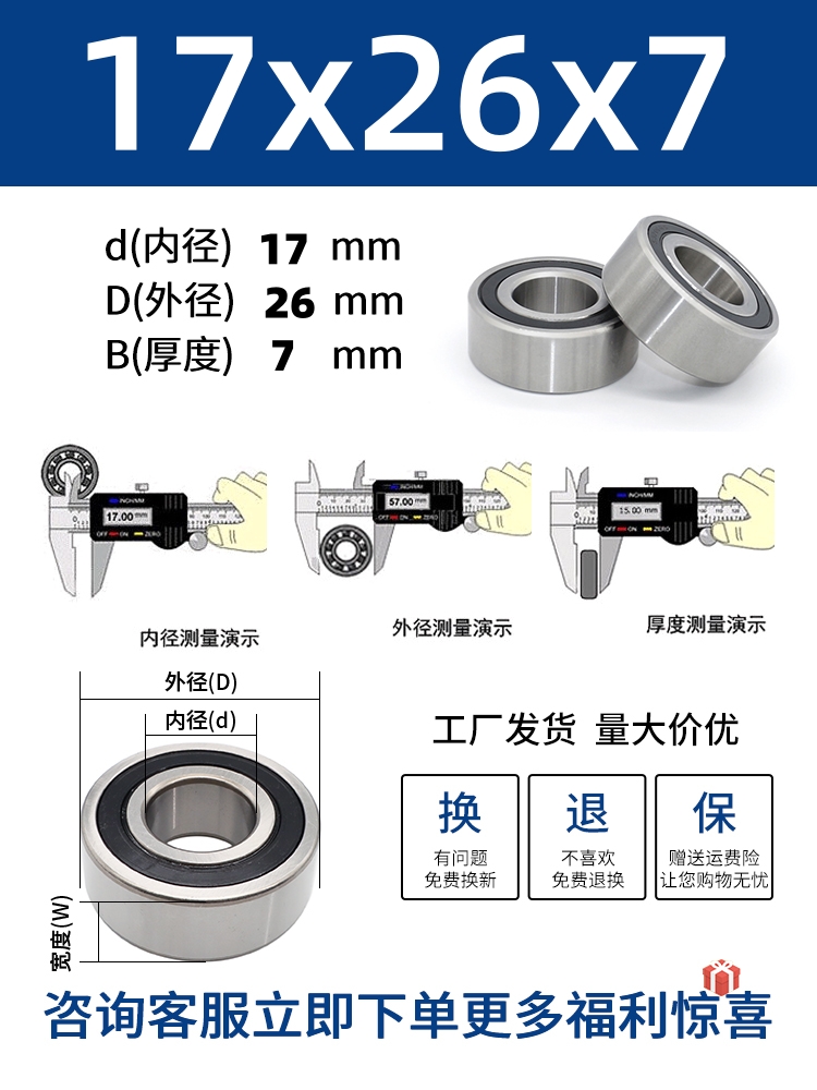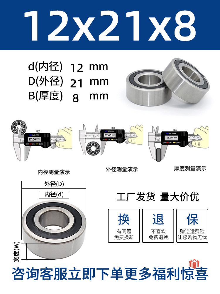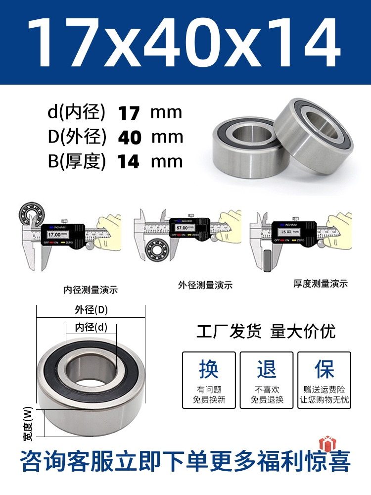 두꺼운 베어링 이중 열 볼 베어링 넓어진 베어링 내부 직경 5 8 10 15 17 20 25 30 40-80스토어 가기
