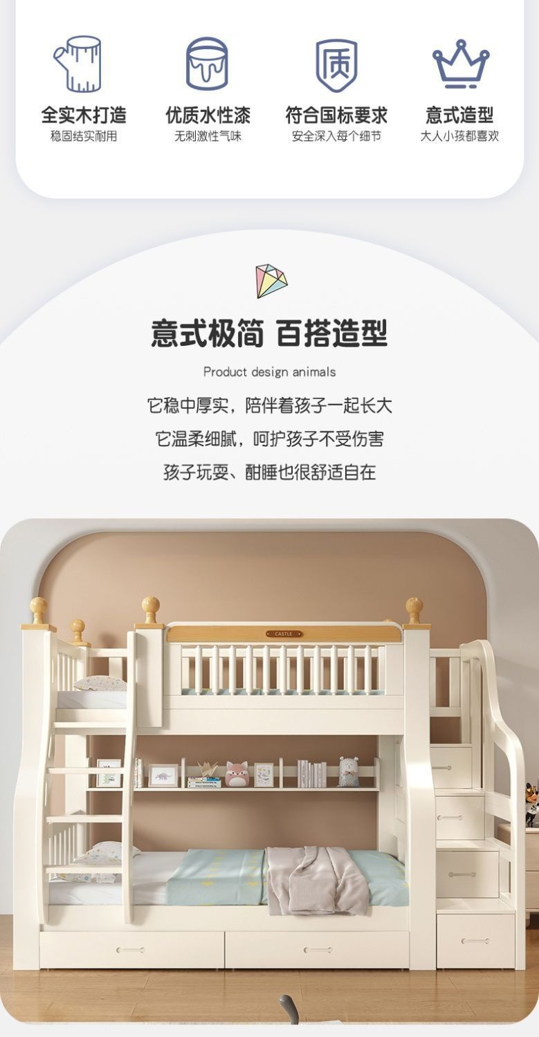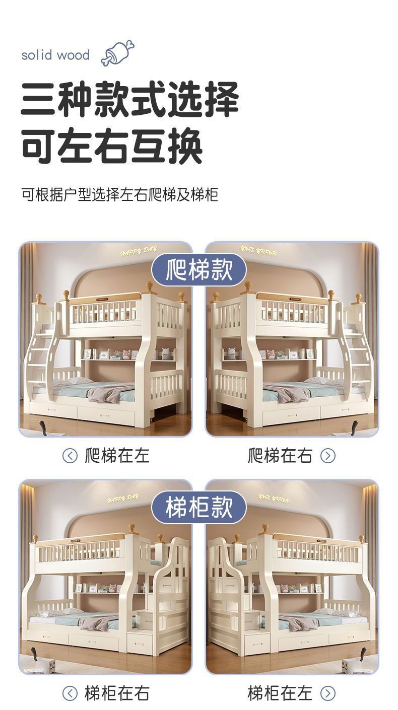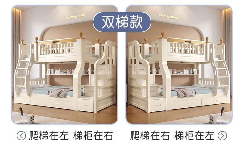 단단한 나무 이층 침대 이층 침대 다기능 어린이 침대 작은 아파트 어머니 침대 두꺼운 성인 높은 낮은 침대 침대 침대 침대