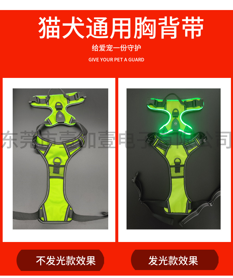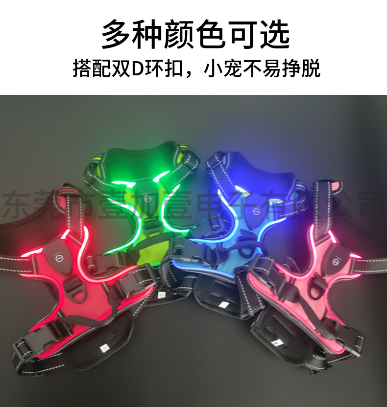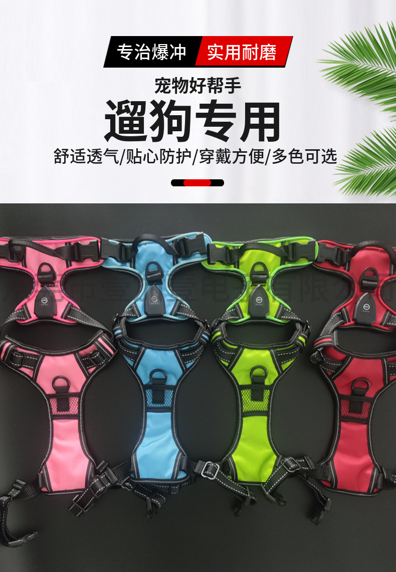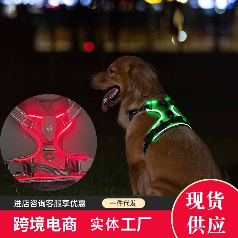 국경 간 새로운 애완 동물 제품 led 빛나는 가슴 스트랩 애완 동물 견인 로프 안전 벨트 빛나는 애완 동물 조끼스토어 가기