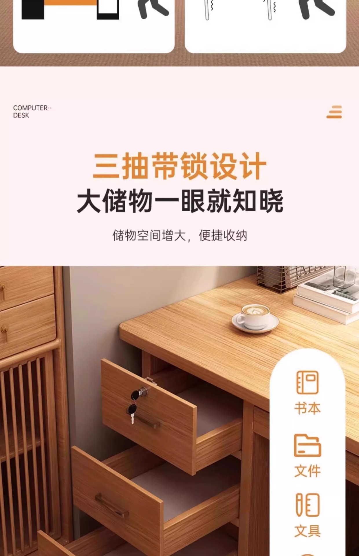 • [고품질 6층 고밀도 보드 - 서랍 3개 호스트 위치] 전원 참나무 색상 120*48CM