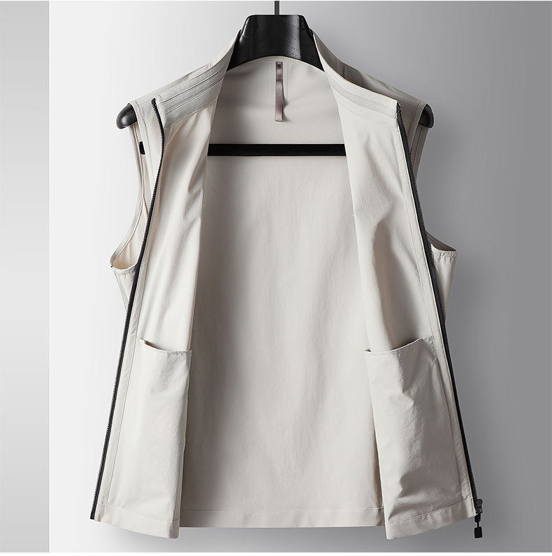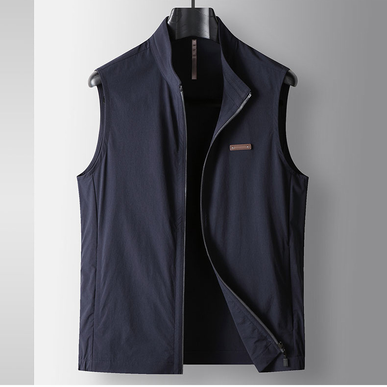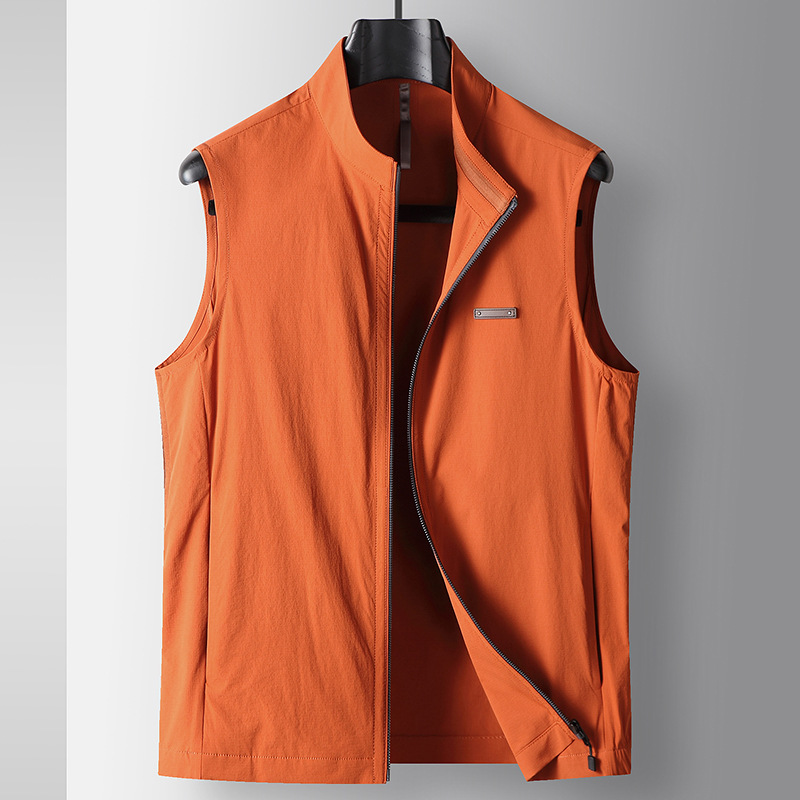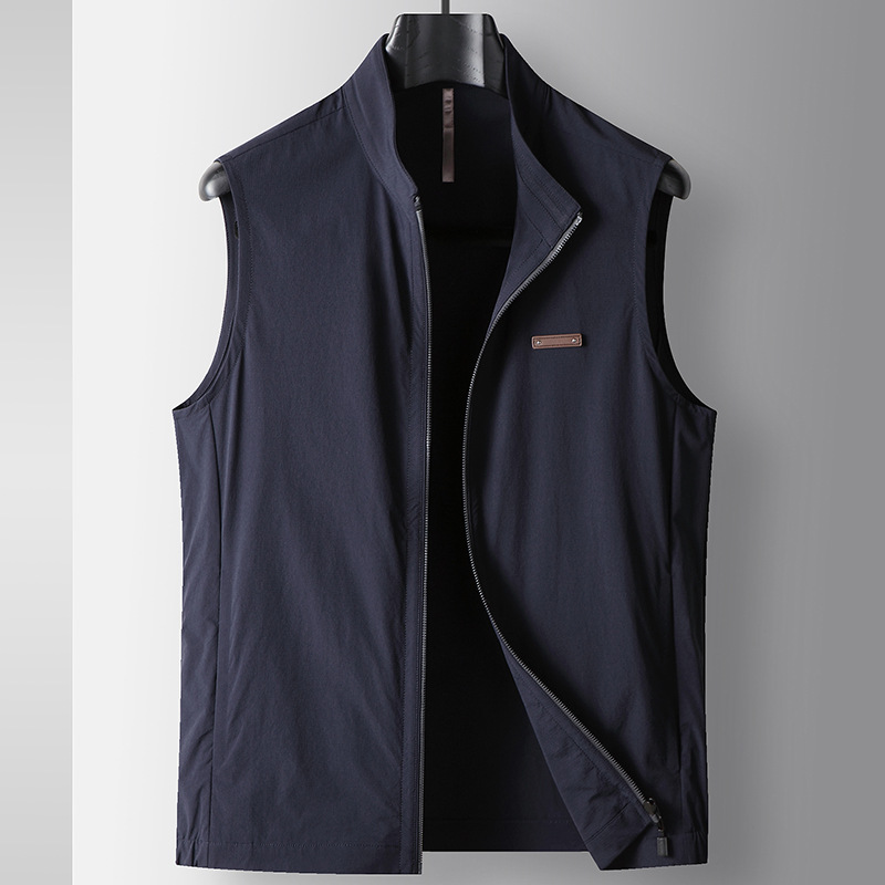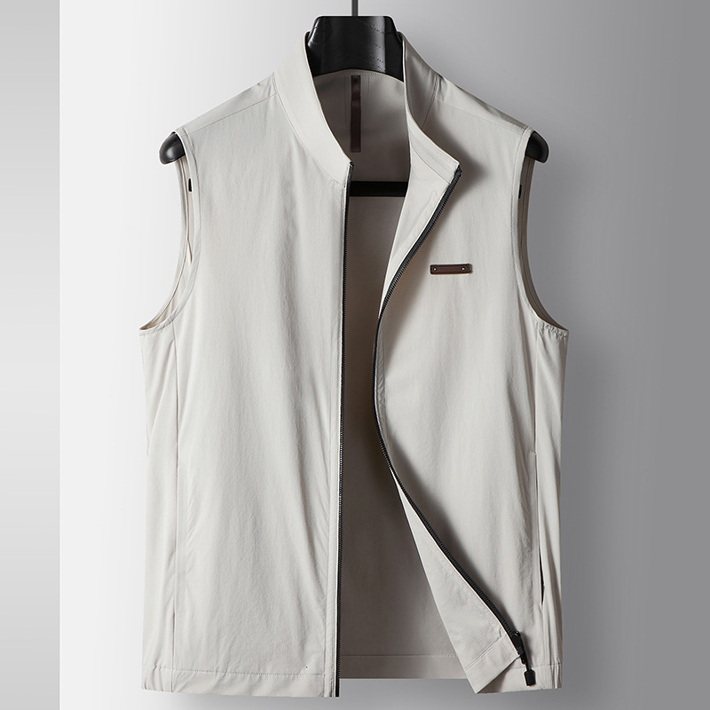 남성 캐주얼 조끼 2025 봄과 가을 칼라 마이크로 탄성 고급 비즈니스 지퍼 에디션 솔리드 컬러 민소매 젊은 및 중년 재킷