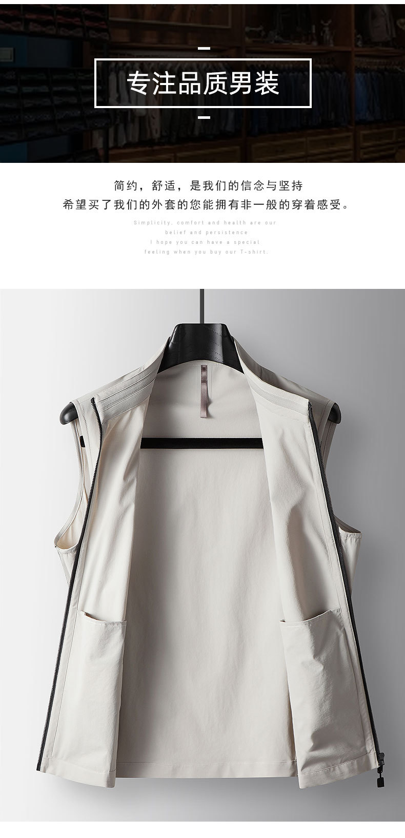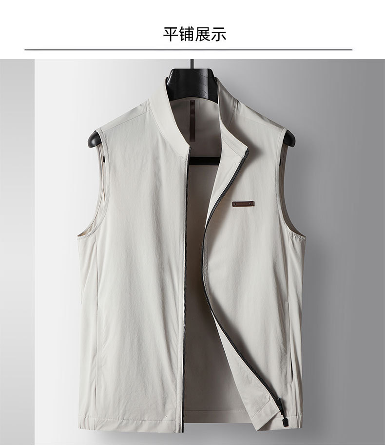남성 캐주얼 조끼 2025 봄과 가을 칼라 마이크로 탄성 고급 비즈니스 지퍼 에디션 솔리드 컬러 민소매 젊은 및 중년 재킷스토어 가기