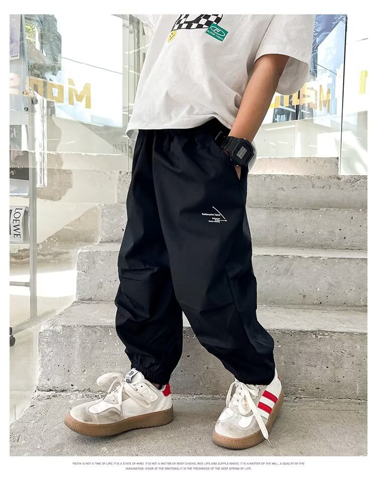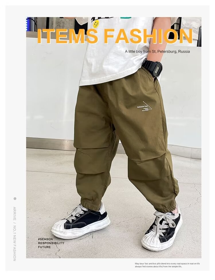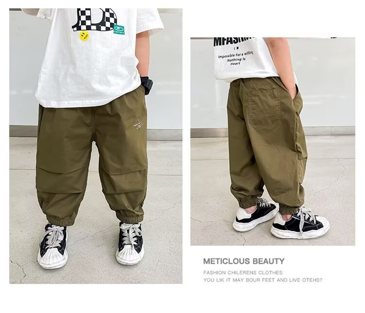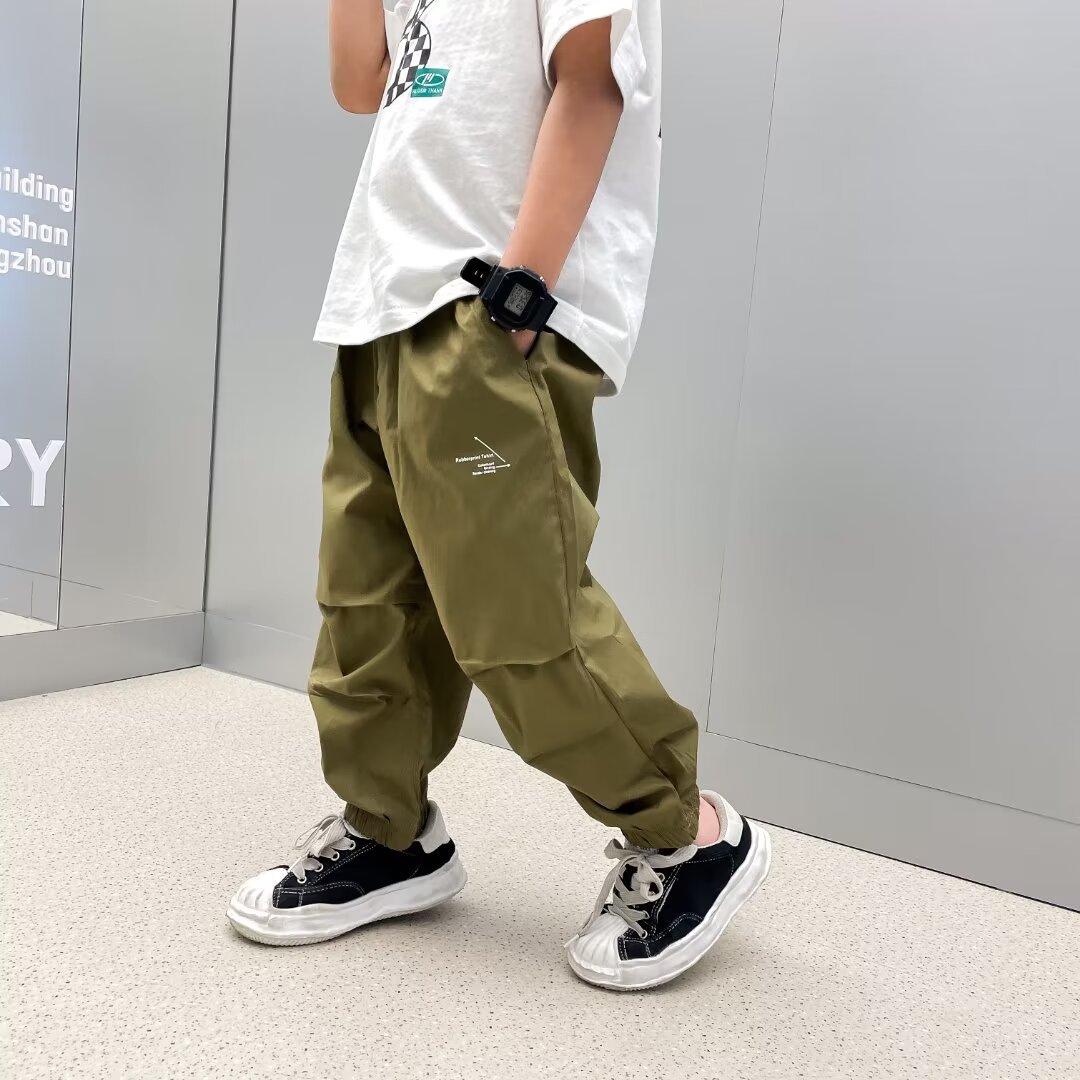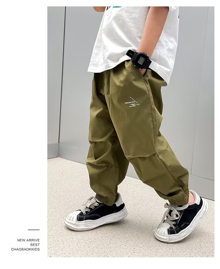 남자들의 여름 얇은 빠른 건조 바지 2025 새로운 소년 카키 여름 안티 모기 바지 어린이 아이스 실크 바지
