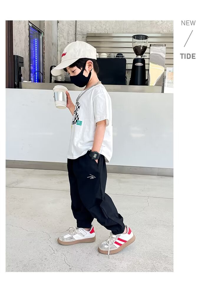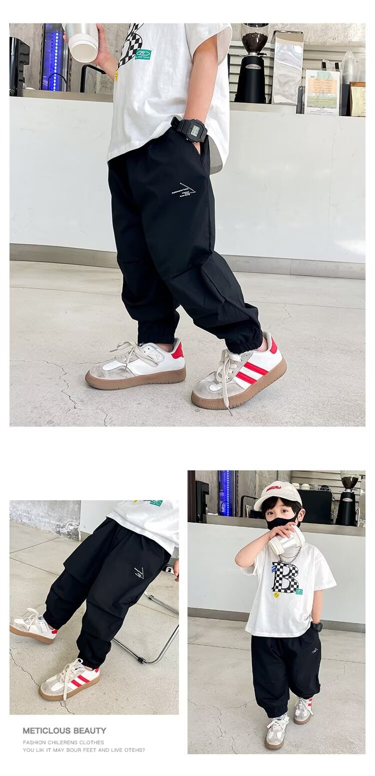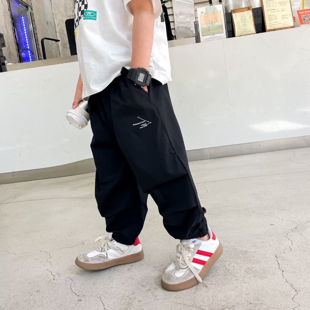 남자들의 여름 얇은 빠른 건조 바지 2025 새로운 소년 카키 여름 안티 모기 바지 어린이 아이스 실크 바지스토어 가기