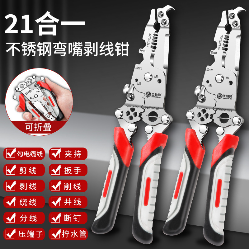 접이식 와이어 스트리퍼 새로운 다기능 전기 특수 와이어 절단, 필링 및 나사 나사 펜치 라인 절단 및 프레스 공구스토어 가기