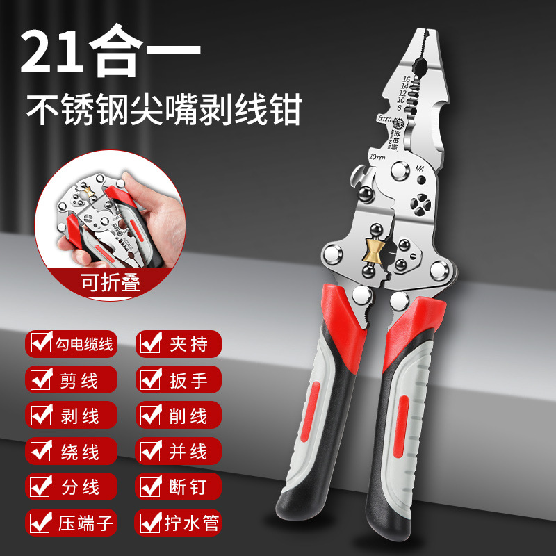 접이식 와이어 스트리퍼 새로운 다기능 전기 특수 와이어 절단, 필링 및 나사 나사 펜치 라인 절단 및 프레스 공구
