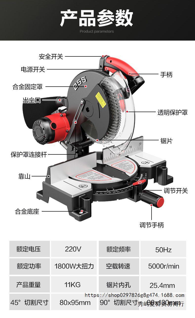 바이웬 알루미늄 톱질 기계 다기능 10 인치 255 목공 천장 알루미늄 절단 기계 비 흔들림 벨트 절단 기계스토어 가기