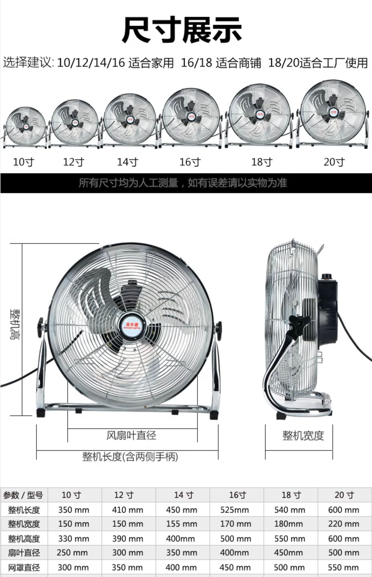 • 10inch 검정색 3단 [ 3m 연장 코드, 촘촘한 메쉬, 두꺼운 알루미늄 리프]은 농구공과 같은 볼륨입니다