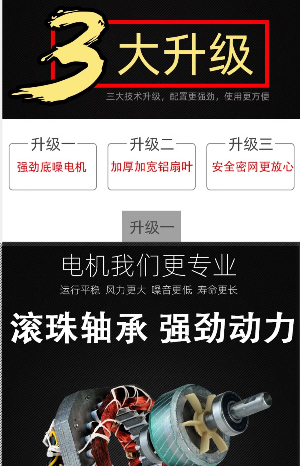 • 20inch 검정색 4단 [ 3m 연장 코드, 촘촘한 메쉬, 두꺼운 알루미늄 블레이드] 산업용 등급 슈퍼