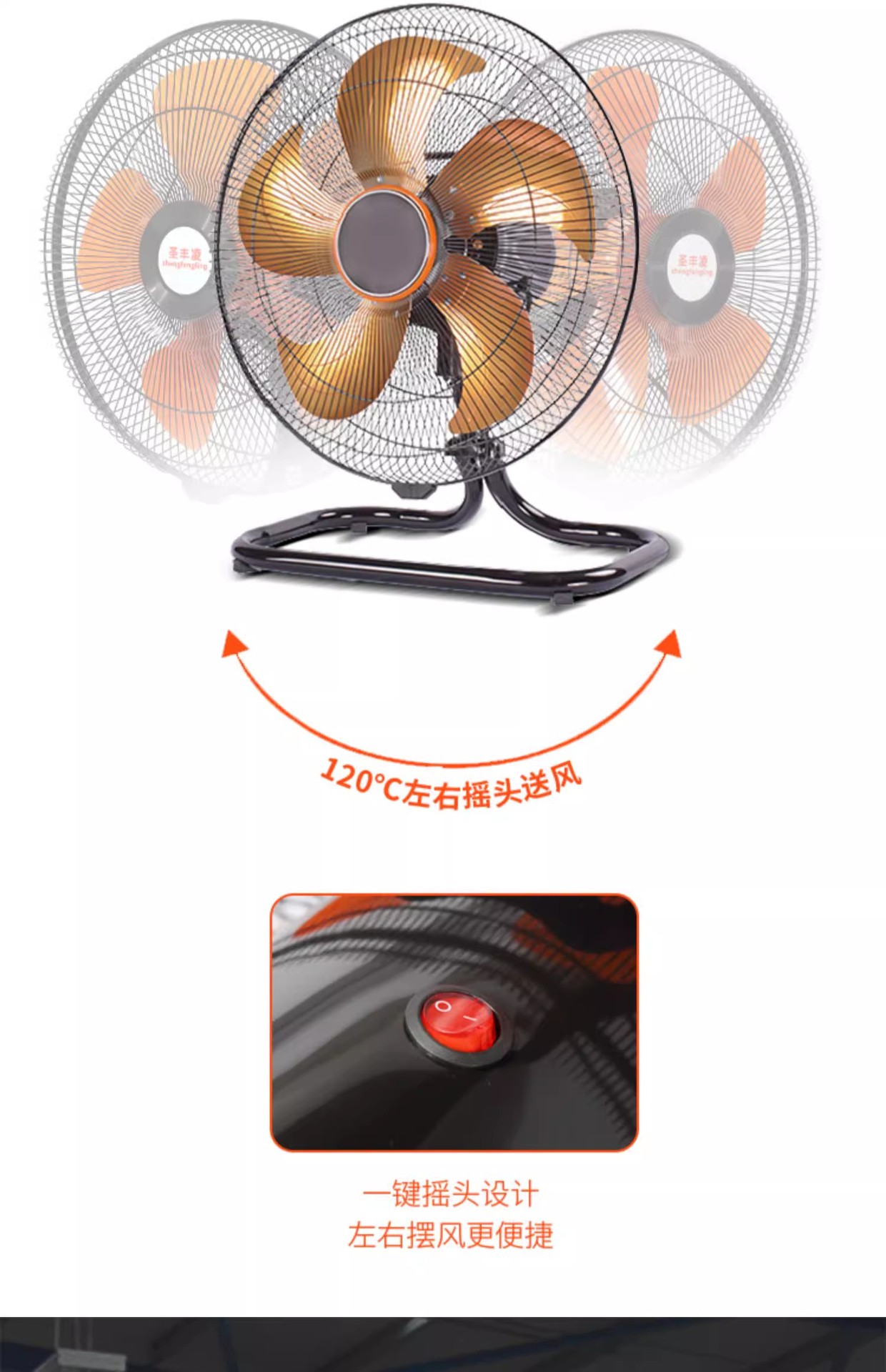 • 16inch 쉐이킹 헤드 모델, 5단 [두꺼운 알루미늄 5엽, 광각 공기 공급 2m 라인] 대용량 풍량