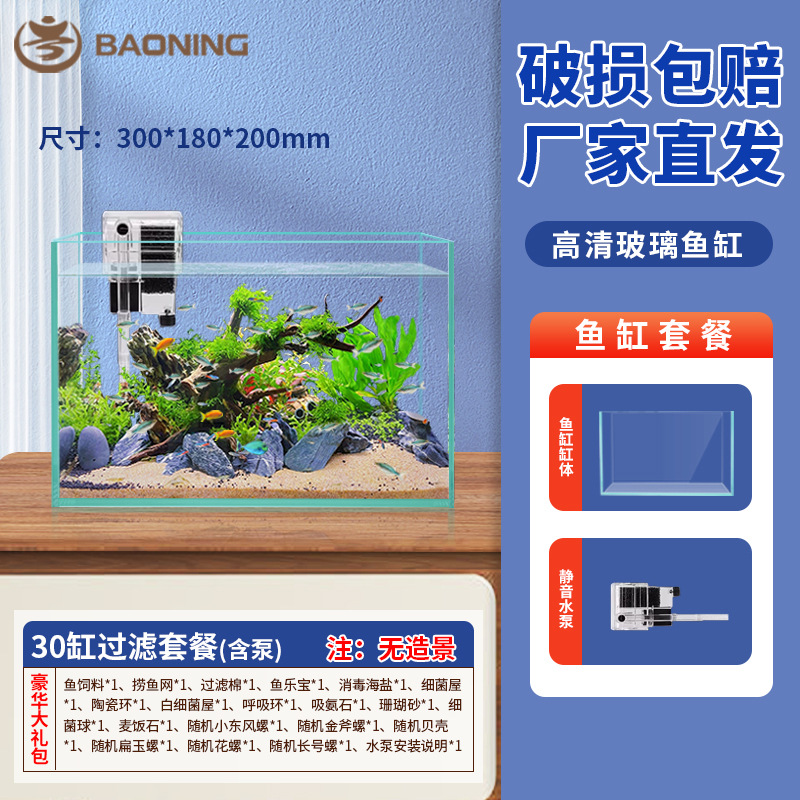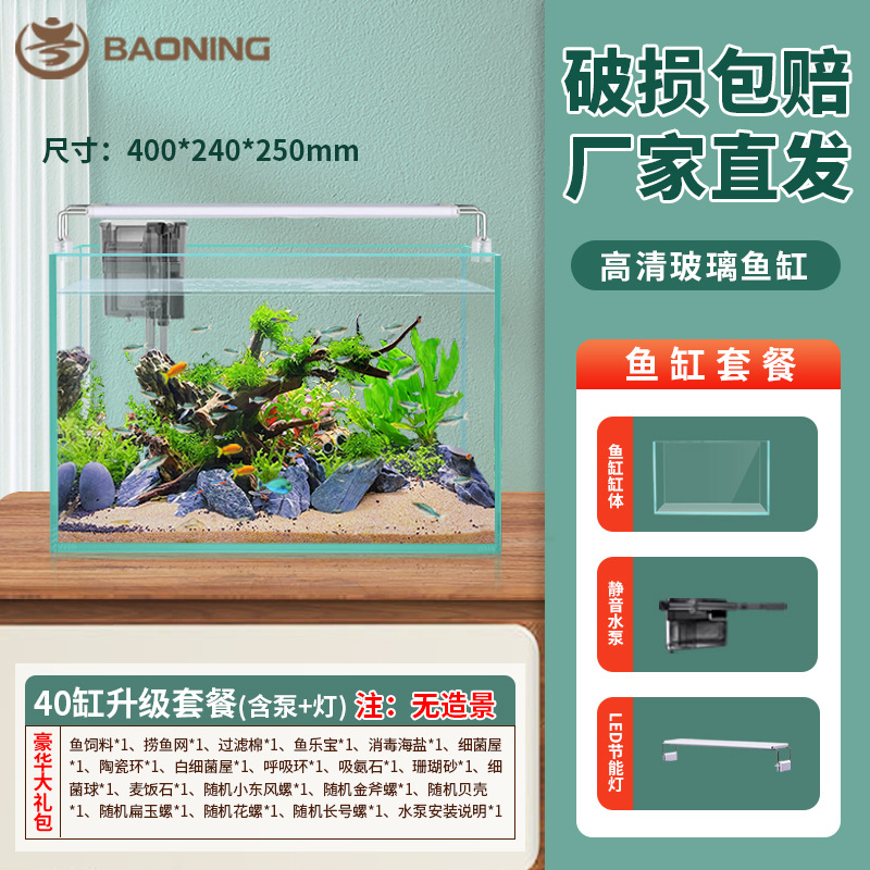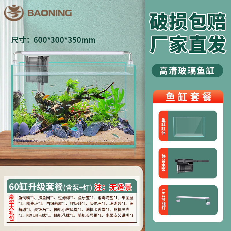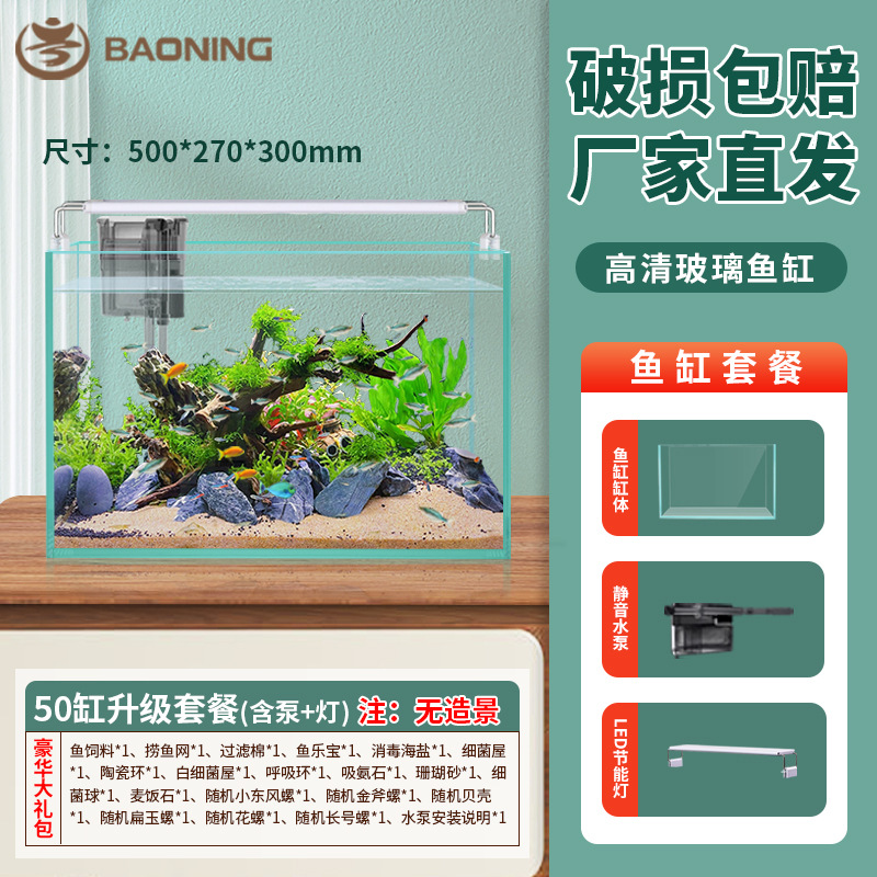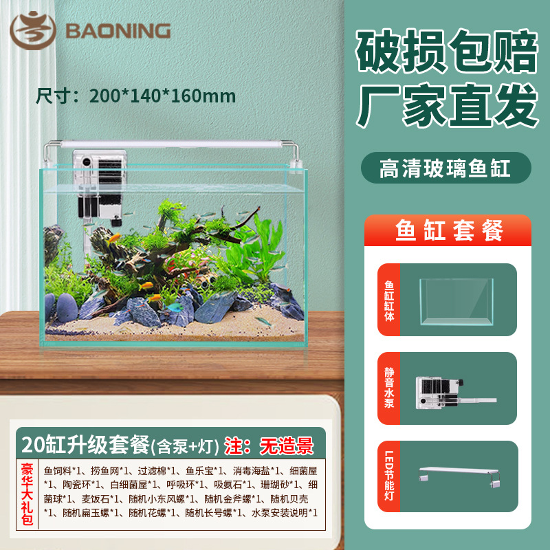 Baoning 2024 새로운 유리 탱크 금붕어 탱크 가정용 거실 작은 데스크탑 거북이 탱크 생태 직사각형 베어 탱크스토어 가기