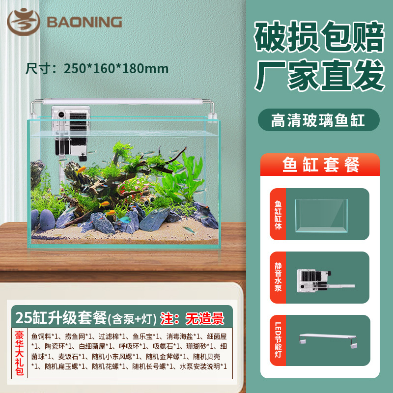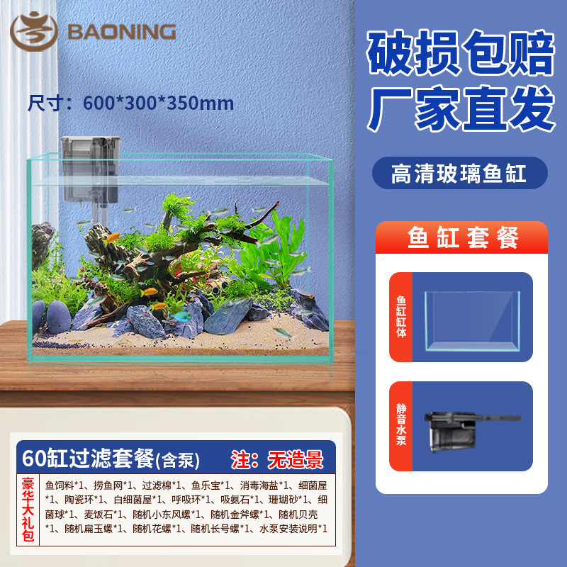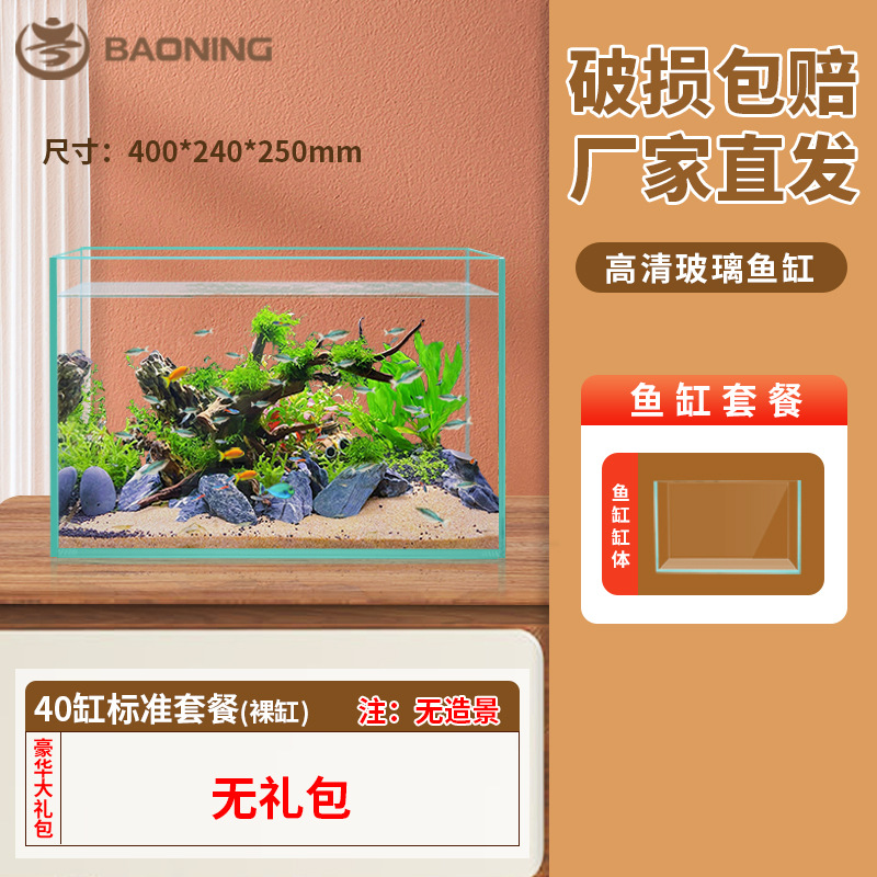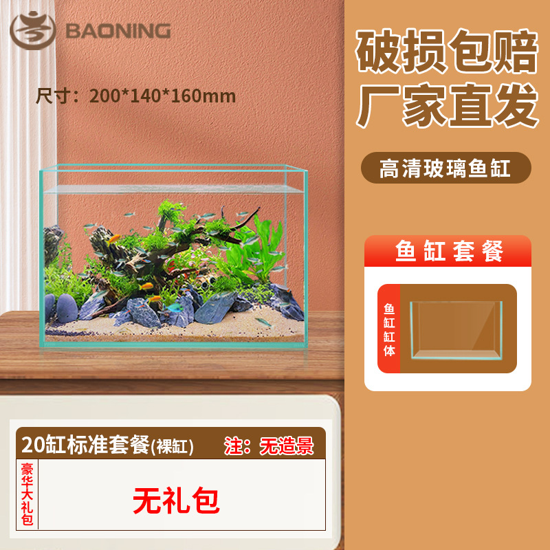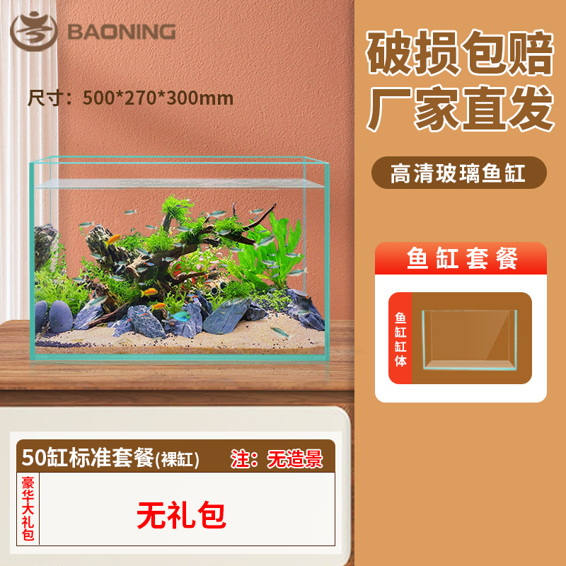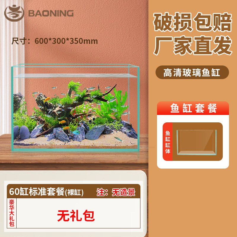Baoning 2024 새로운 유리 탱크 금붕어 탱크 가정용 거실 작은 데스크탑 거북이 탱크 생태 직사각형 베어 탱크