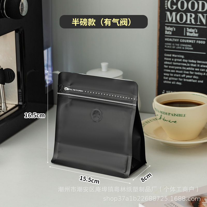 재고 8 개의 사이드 밀봉 된 커피 백 에어 밸브 알루미늄 포일 티 포장 백 커피 빈 자립 커피 파우더 밀봉 된 셀프 밀봉 백스토어 가기
