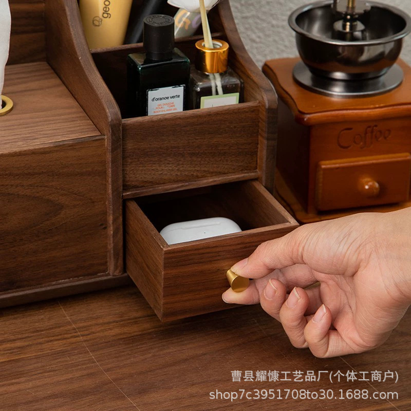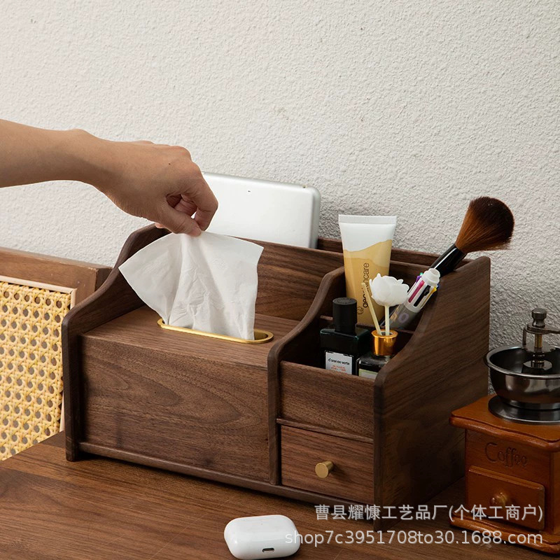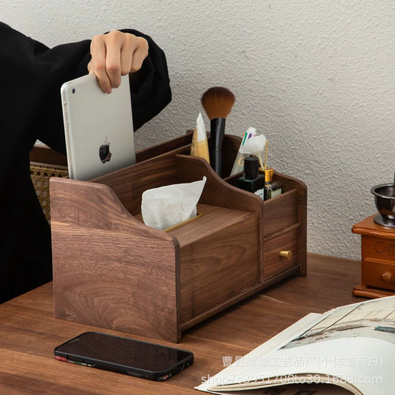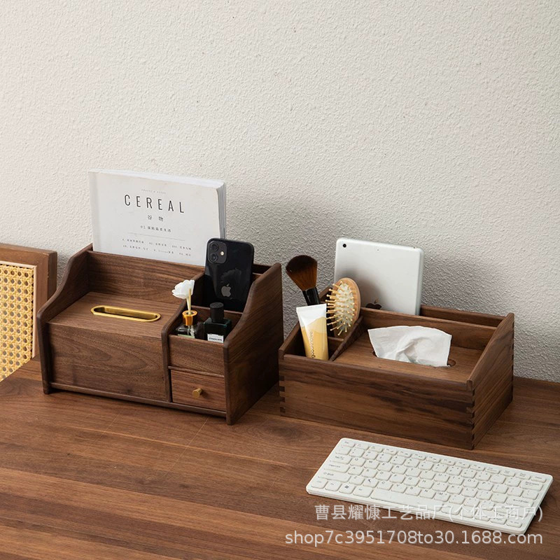 검은 호두 단단한 나무 다기능 조직 상자 원격 제어 저장 상자 거실 커피 테이블 데스크탑 나무 간단한 종이 상자스토어 가기