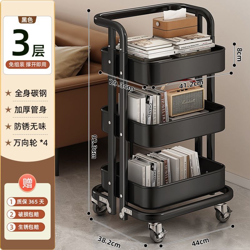 • 검정색 3단 [ 4.5kg 탄소강] 견고하고 내하중 75kg - 접이식 트롤리 [조립 불필요/사일런트 풀리]