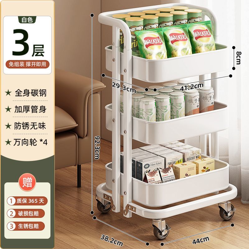• 흰색 3단 [ 4.5kg 탄소강] 견고하고 내하중 75kg - 접이식 트롤리 [조립 불필요/사일런트 풀리]