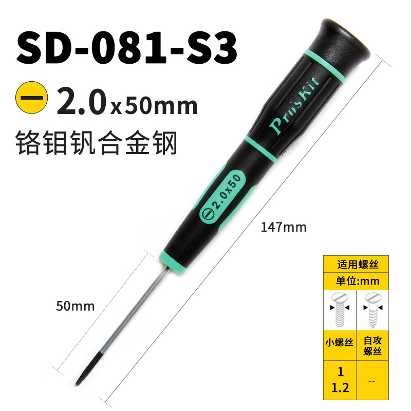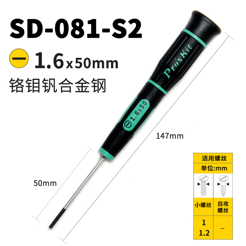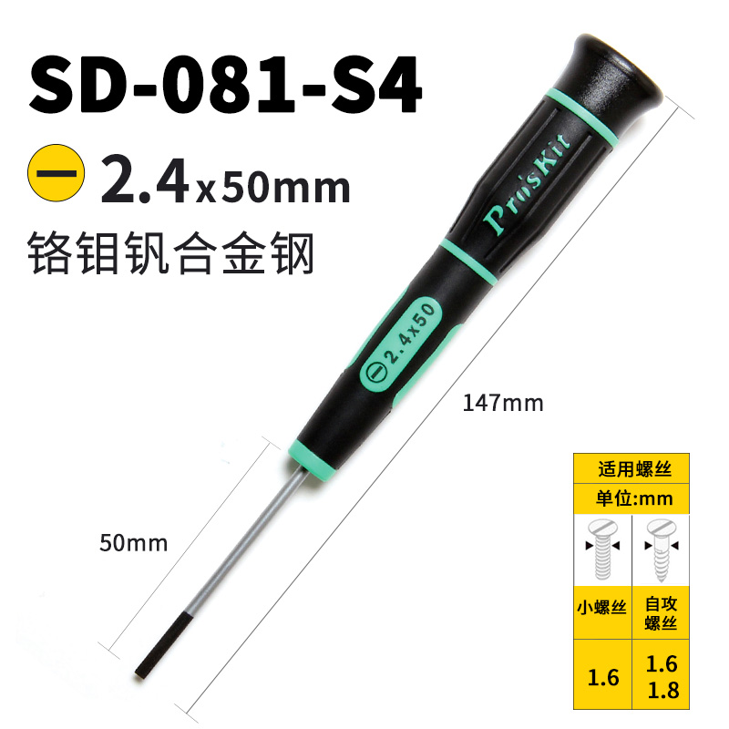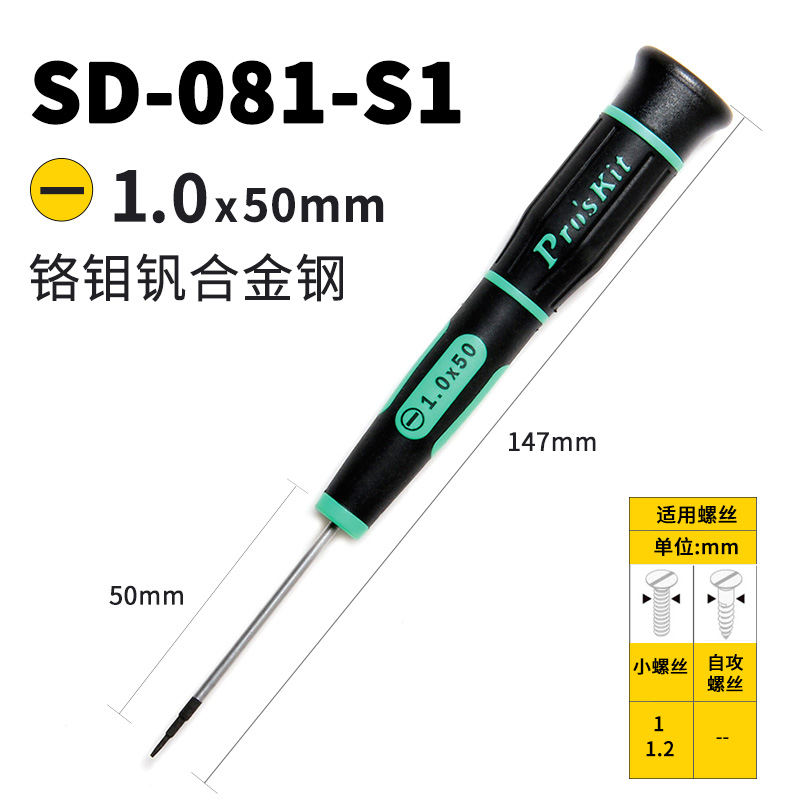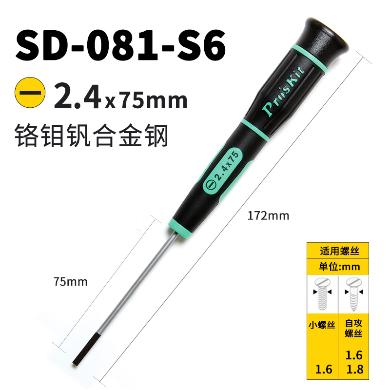 注意:螺丝刀不带磁性(因为防止碰到一些小的精密机械部件,产生磁化影响使用)并且不适合端子的端子拆卸。