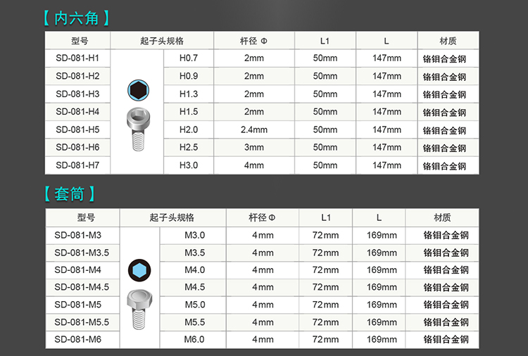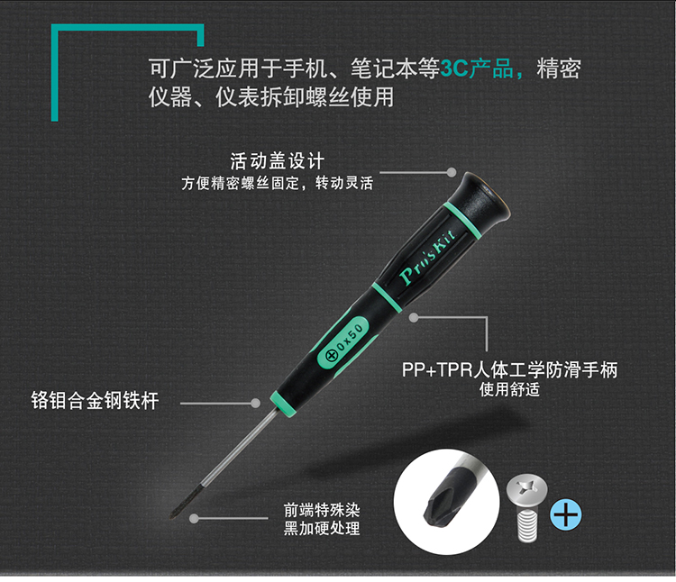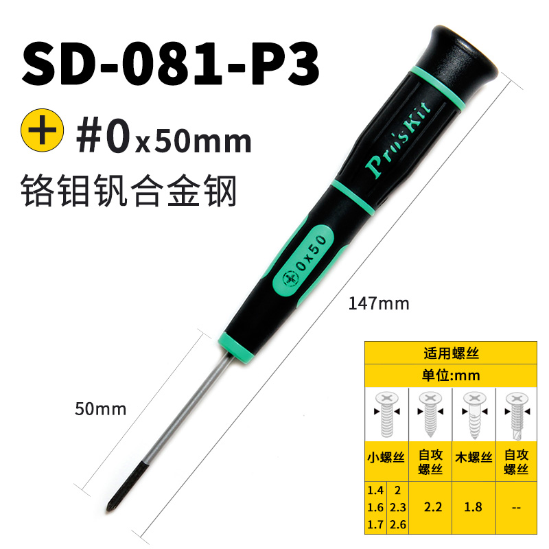 SD-081系列集合3C产品的各种特殊起子头,高品质铬钼钒合金钢材质,前段特殊染黑加硬处理,TPR人体学防滑手柄,适合于各厂牌手机、笔电、游戏机、MP3、MP4、PDA、导航机、相机...等3C产品的拆卸。 螺丝刀不带磁性(因为防止碰到一些小的精密机械部件,产生磁化影响使用)