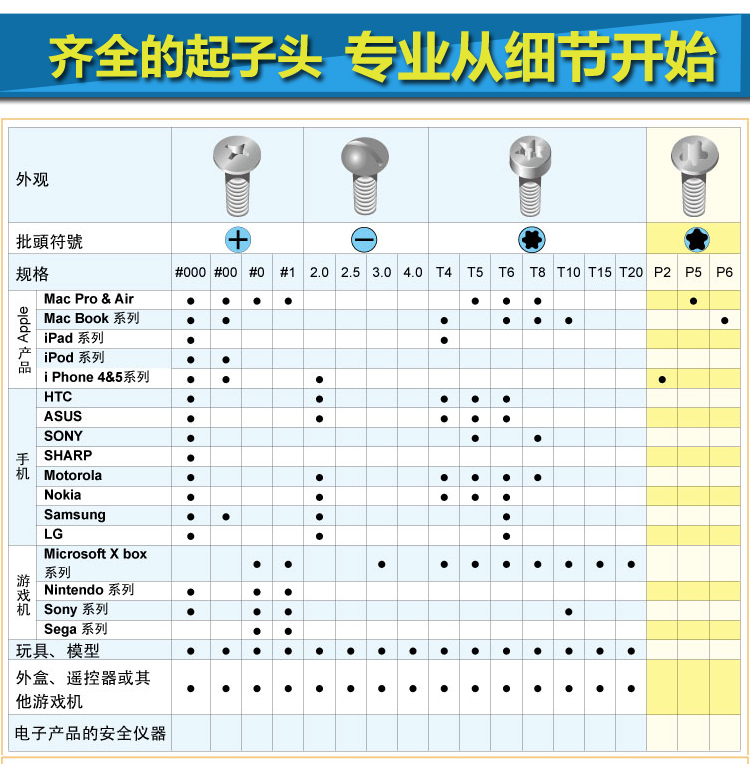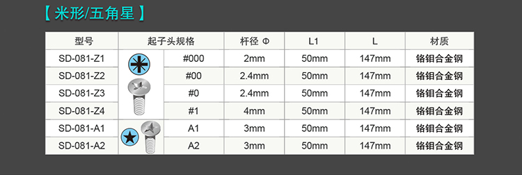 十字 #000可拆1.0MM-1.4MM     #00可拆1.8MM-2.0MM   #0可拆2.4MM          #1可拆3.0MM