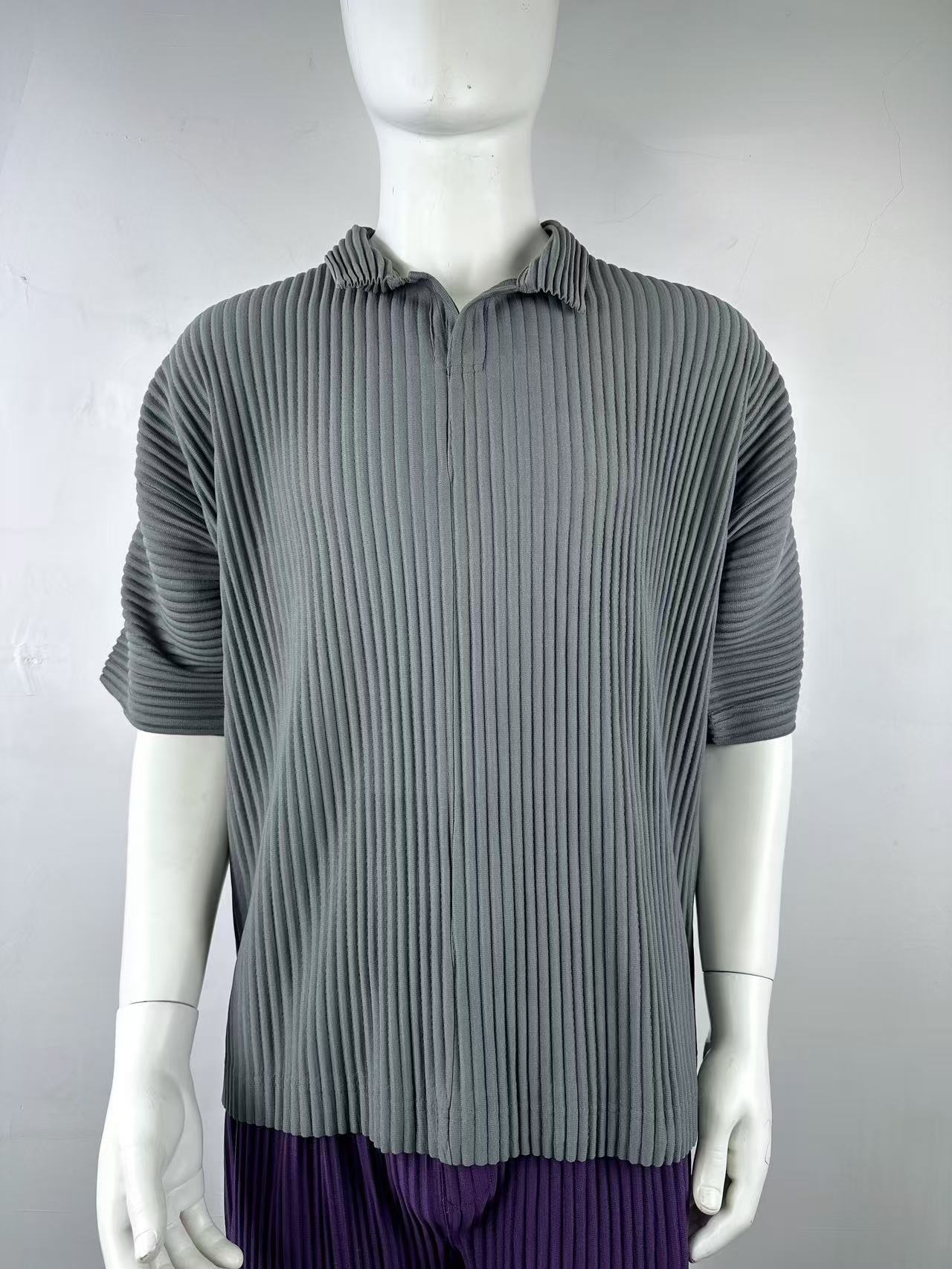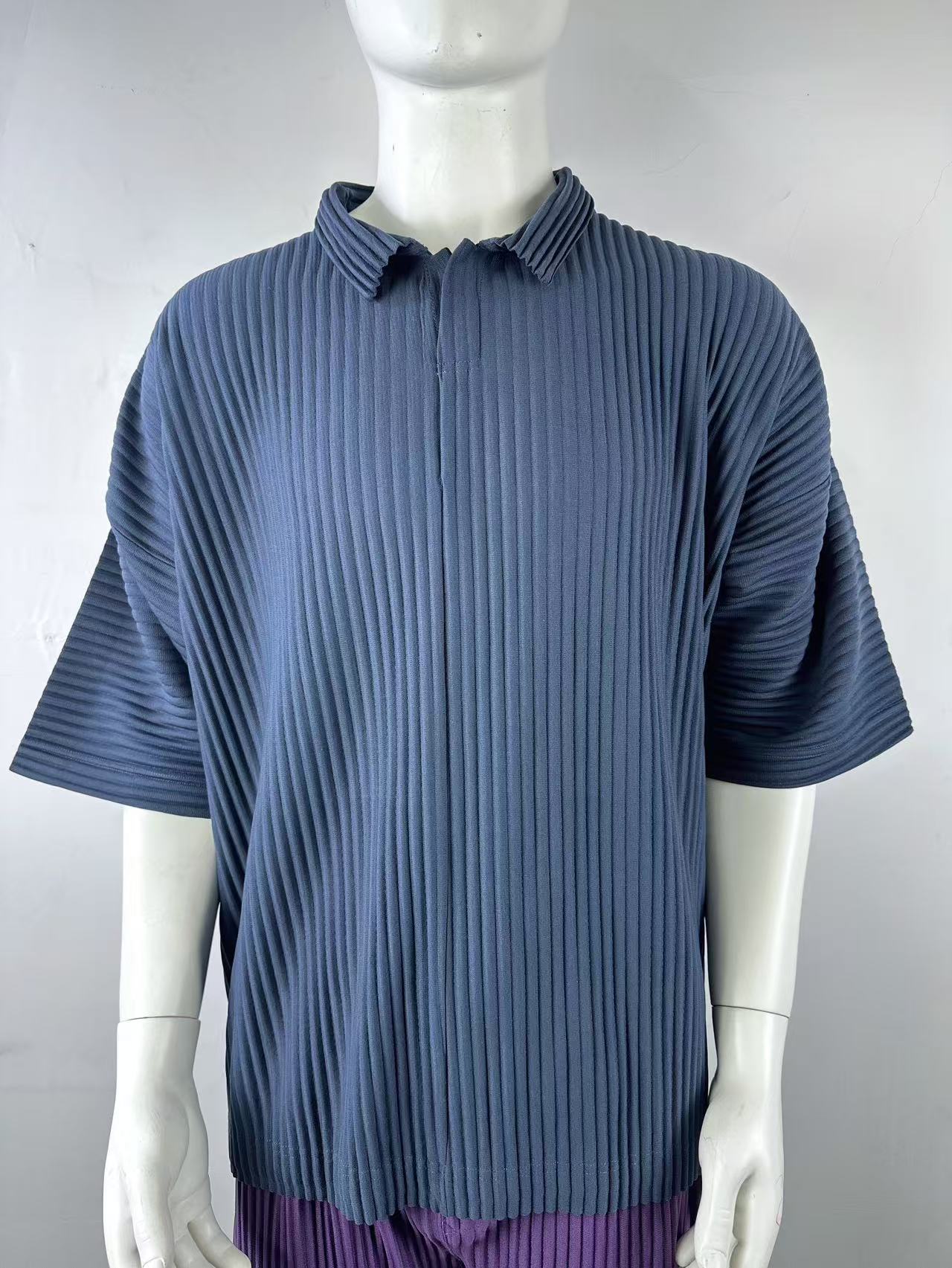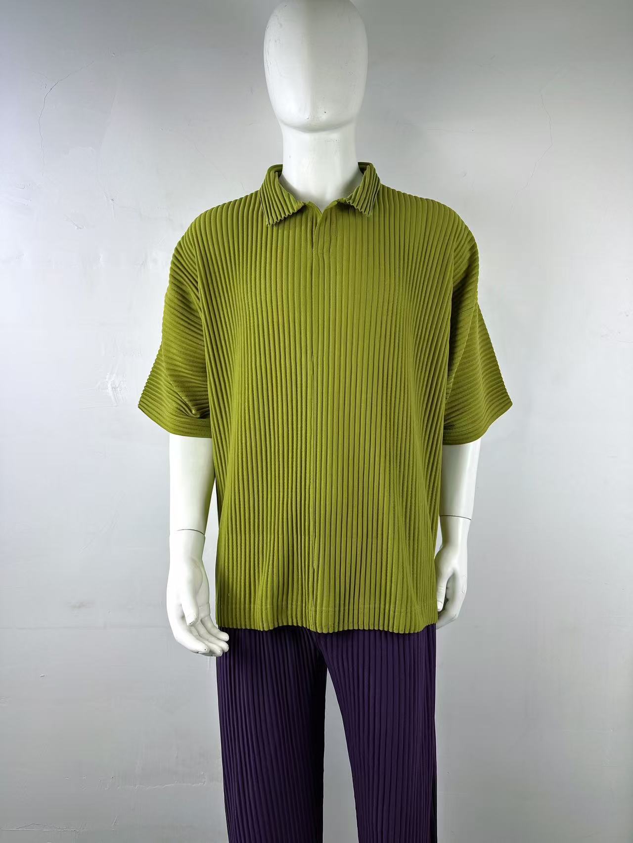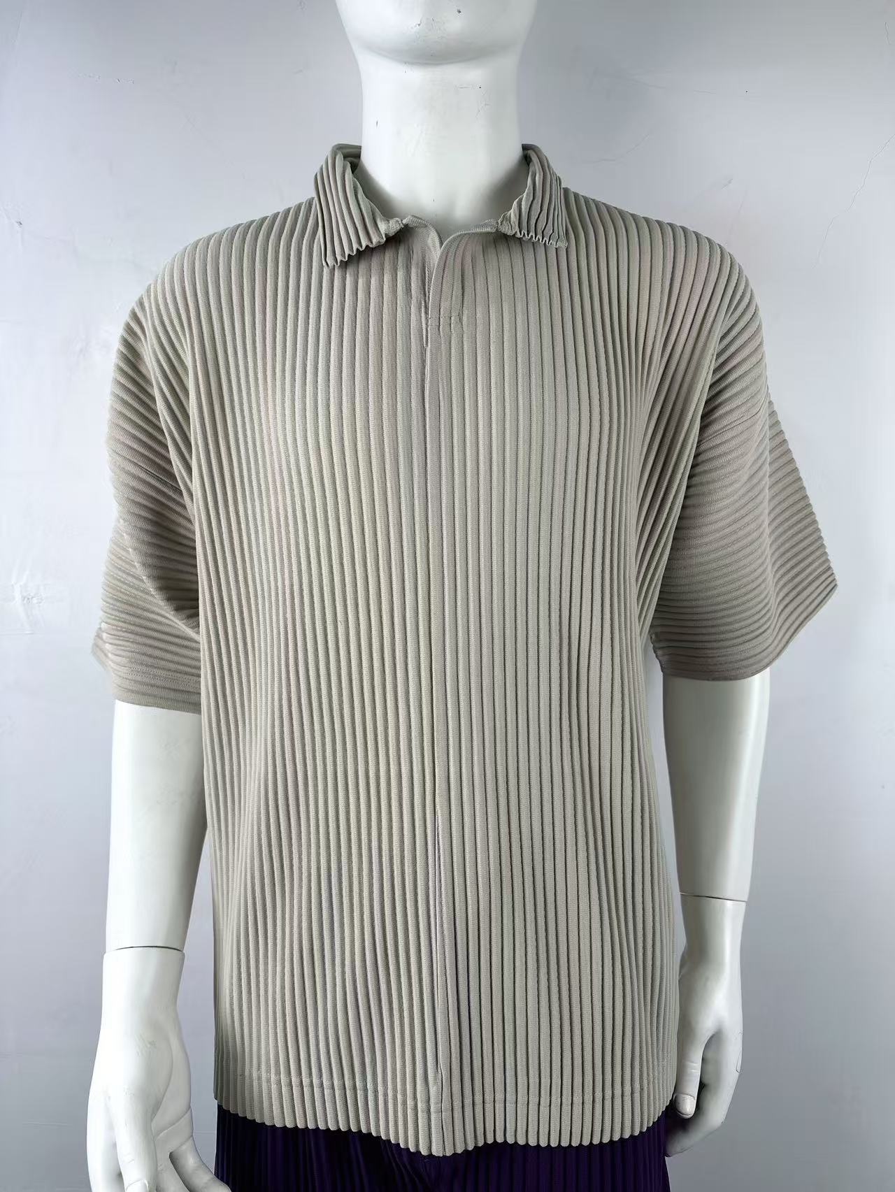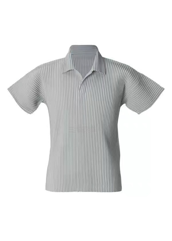 미야케 남성용 주름 폴로 셔츠 슬림핏 패션 반팔 상의 카라 여름 캐주얼 해외 무역 JM030