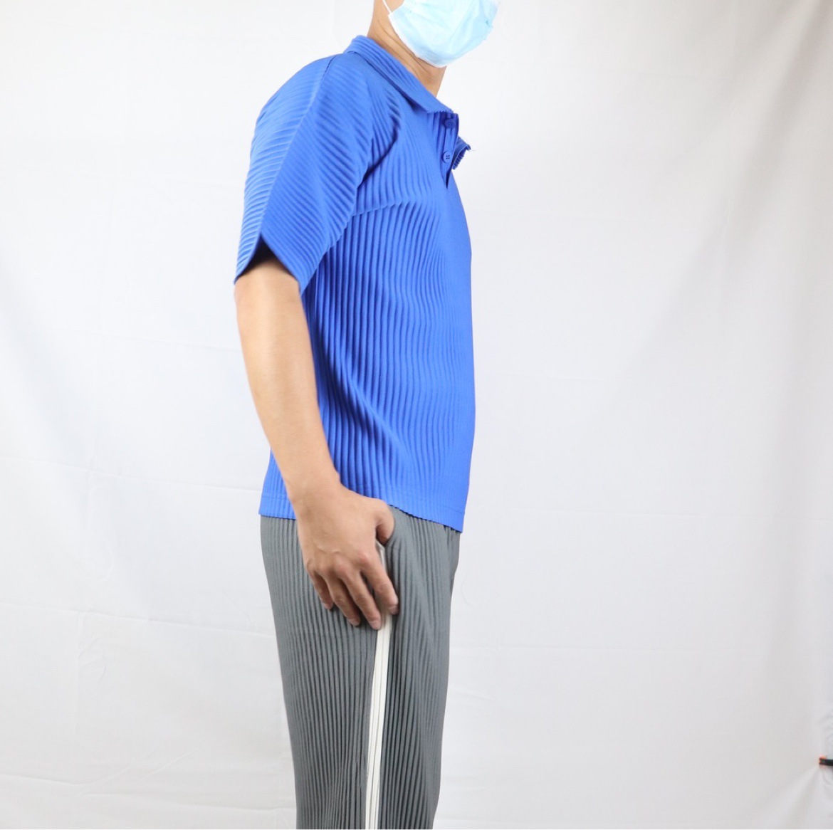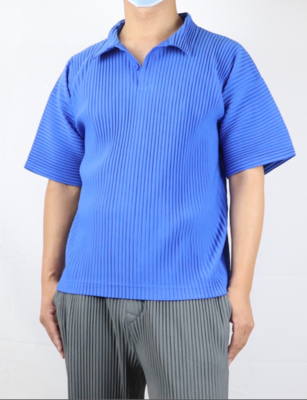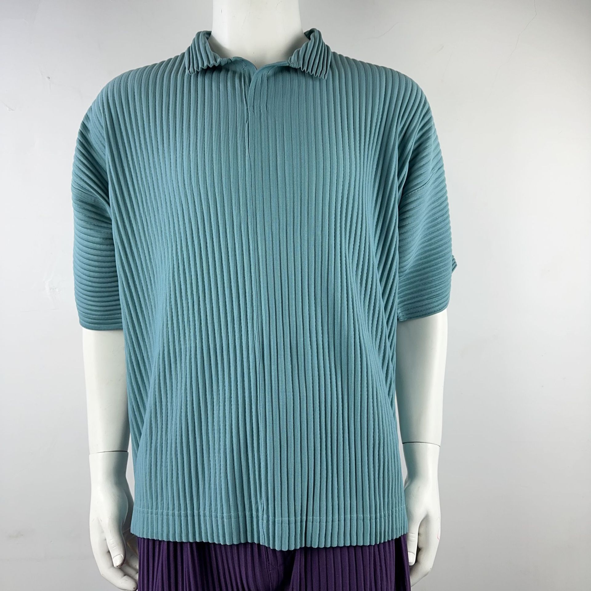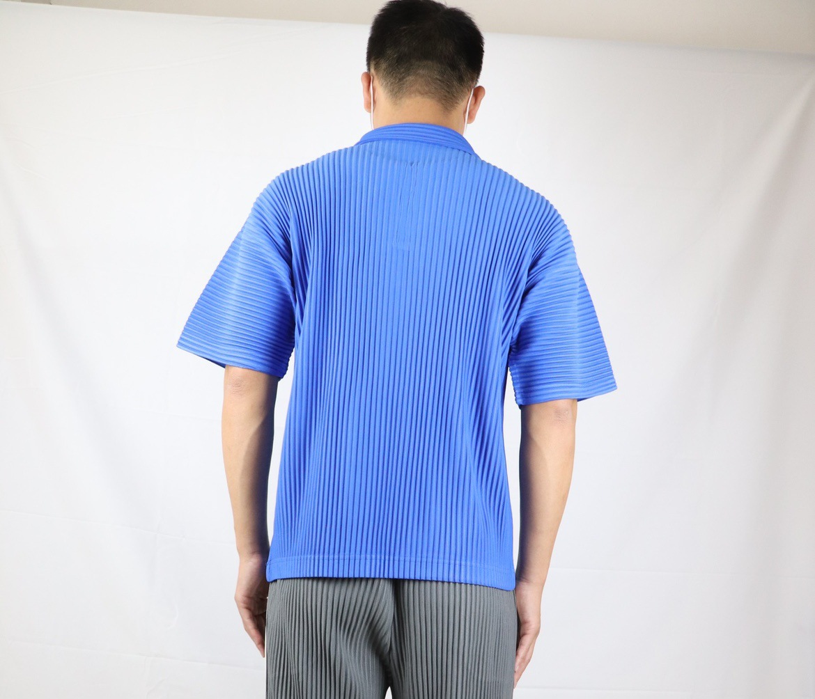 미야케 남성용 주름 폴로 셔츠 슬림핏 패션 반팔 상의 카라 여름 캐주얼 해외 무역 JM030
