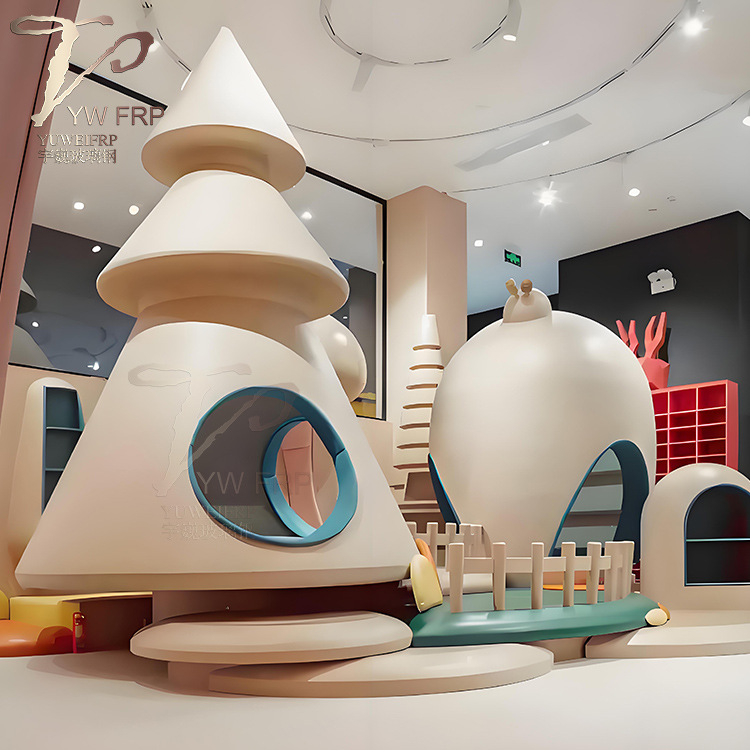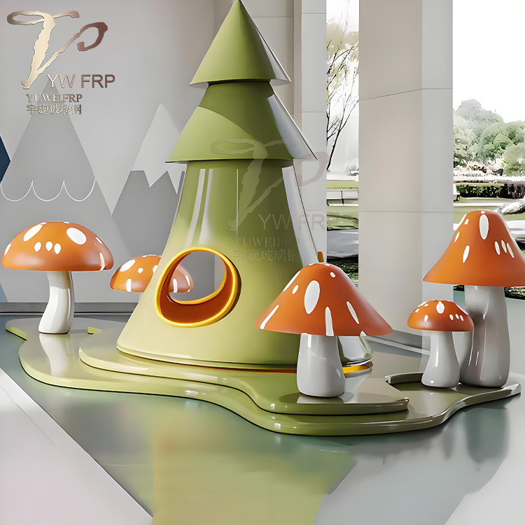 유리 섬유 강화 플라스틱 버섯 집 어린이 놀이 시설 그물 붉은 동굴 동굴 집 유치원 놀이터 조각 상륙 아름다움 첸