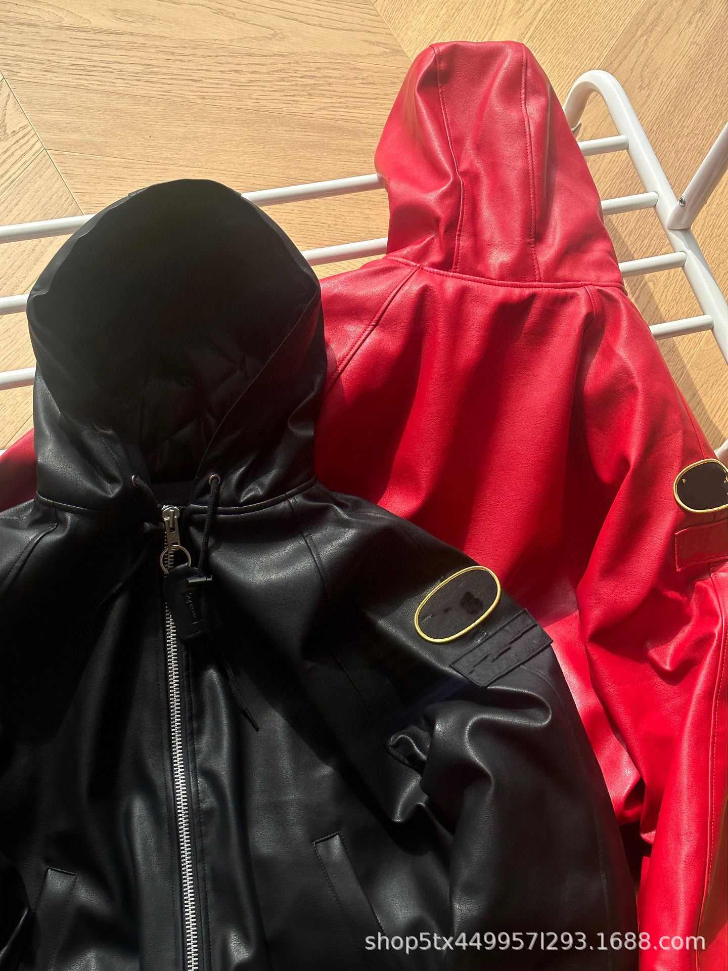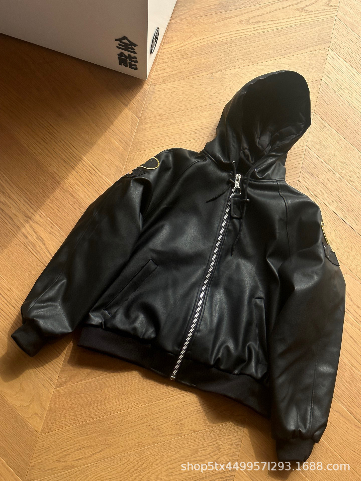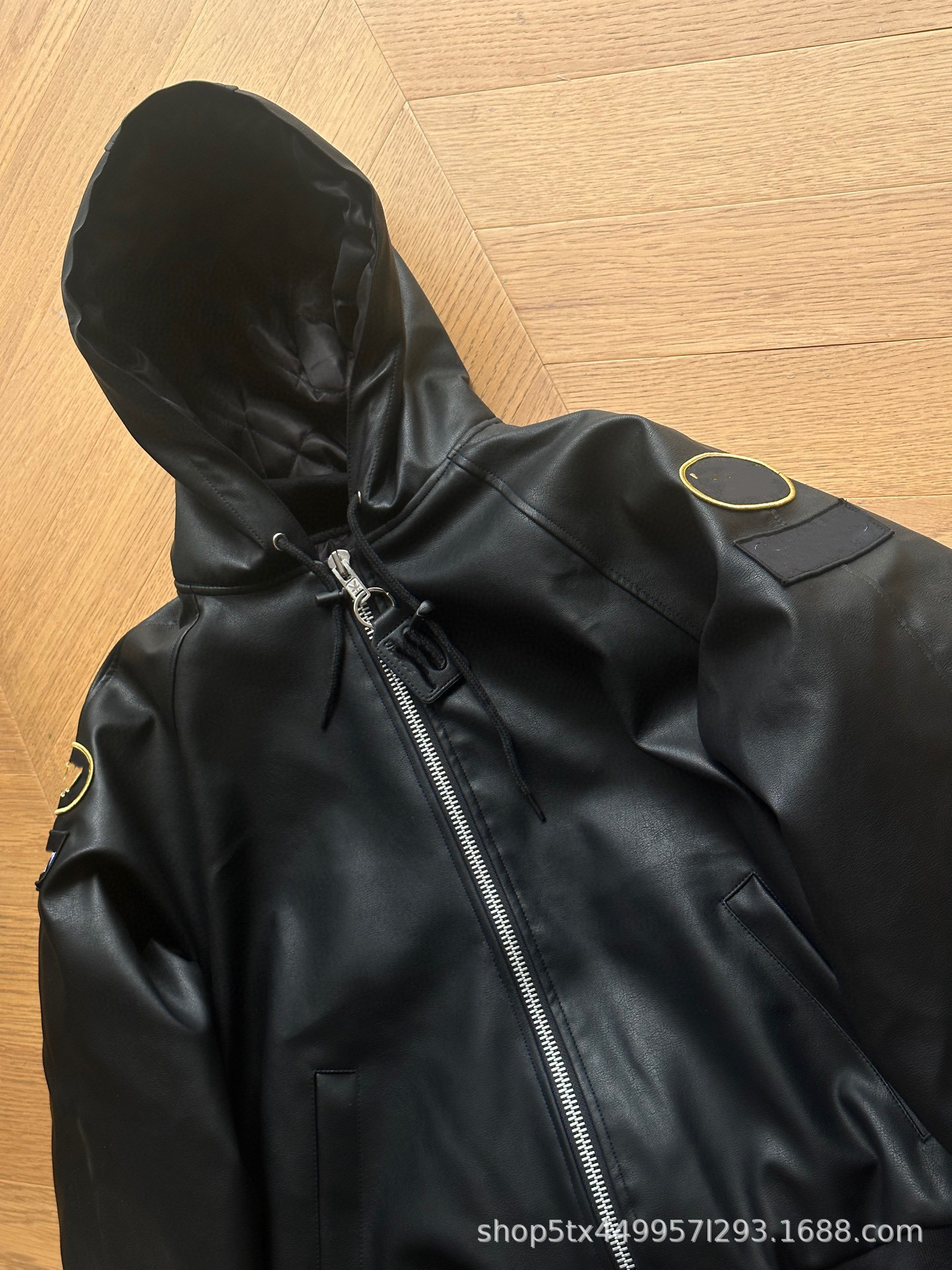 SUP 봄과 가을 새로운 후드 가죽 자켓 남성용 트렌디 한 느슨한 청소년 오토바이 재킷 한국 후드 남성용 가죽 자켓스토어 가기