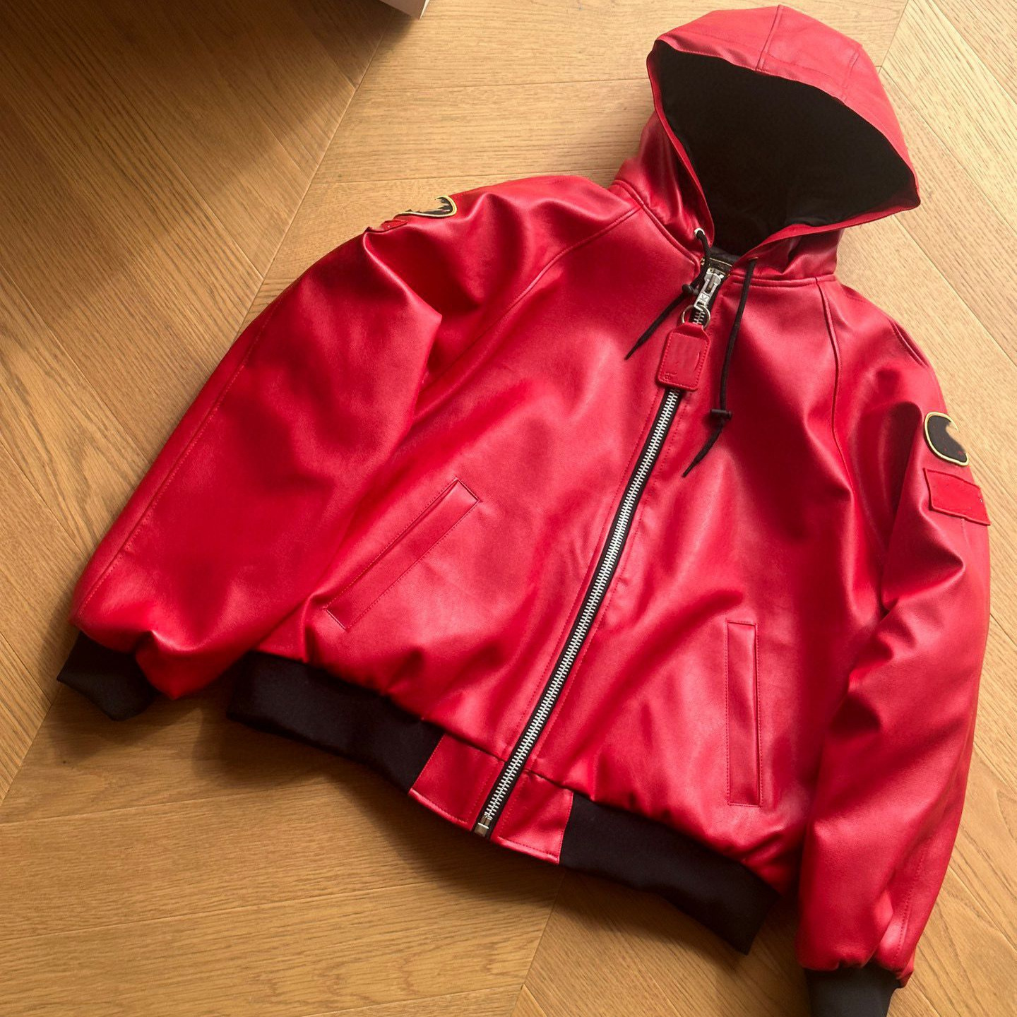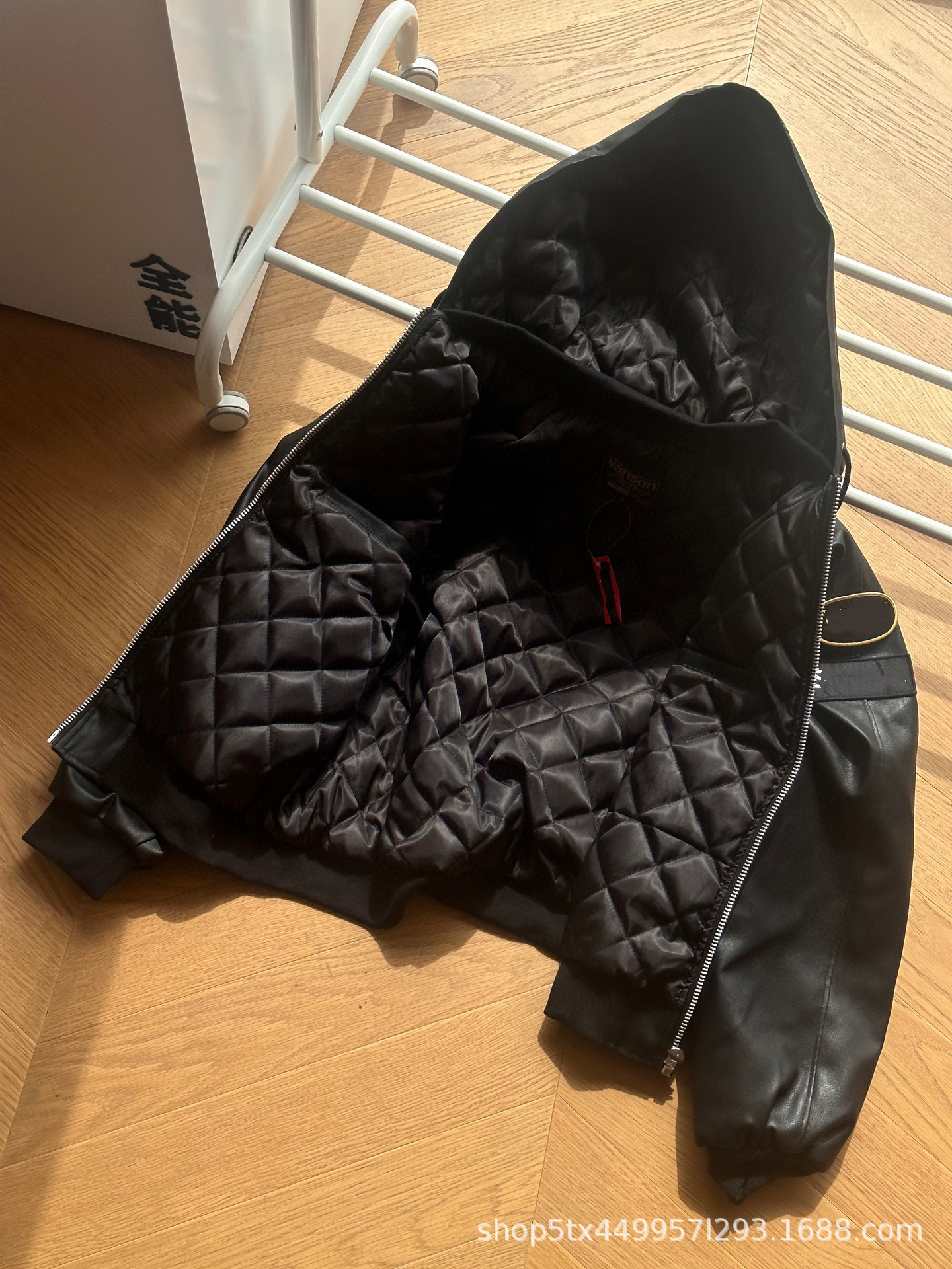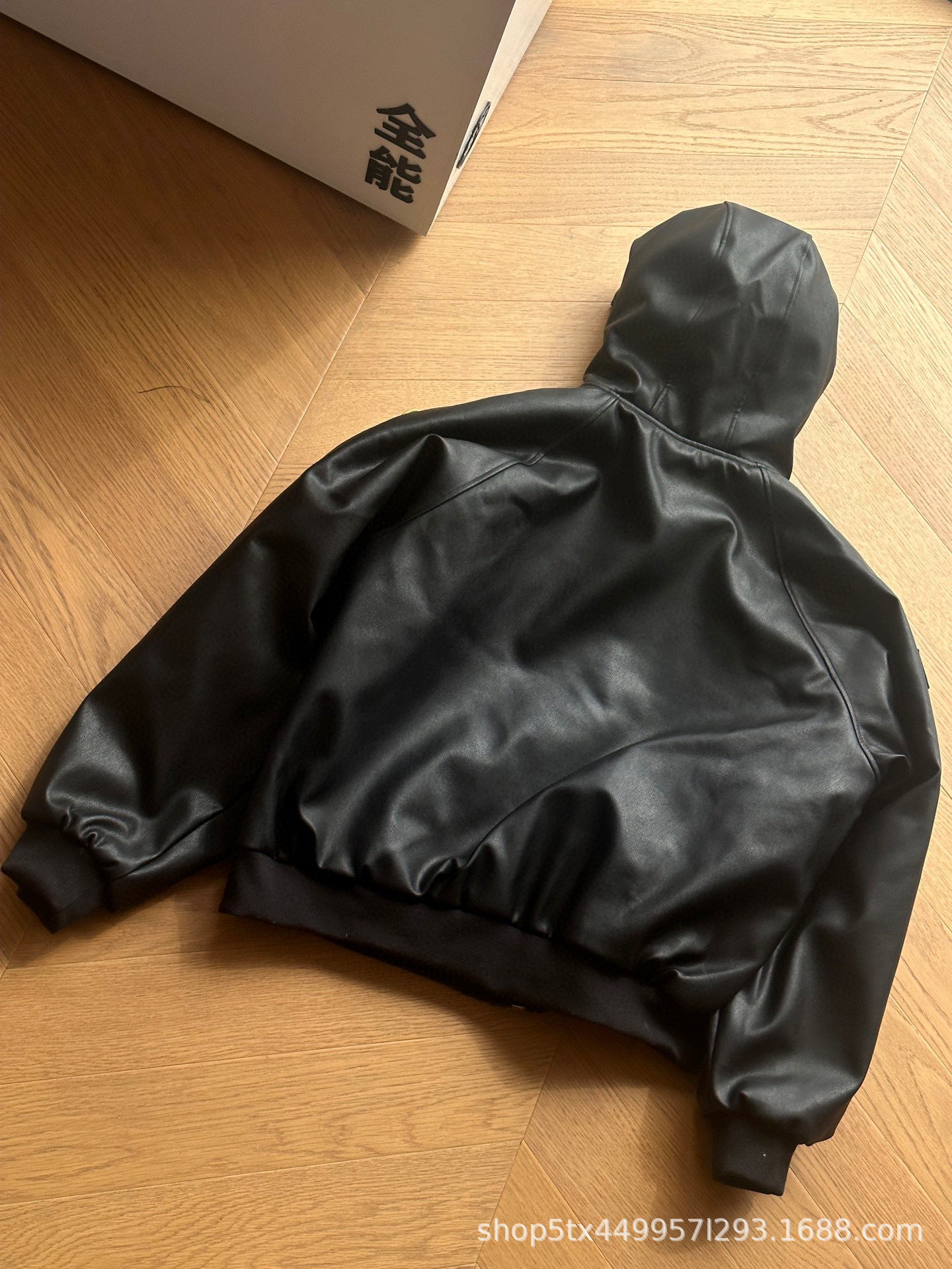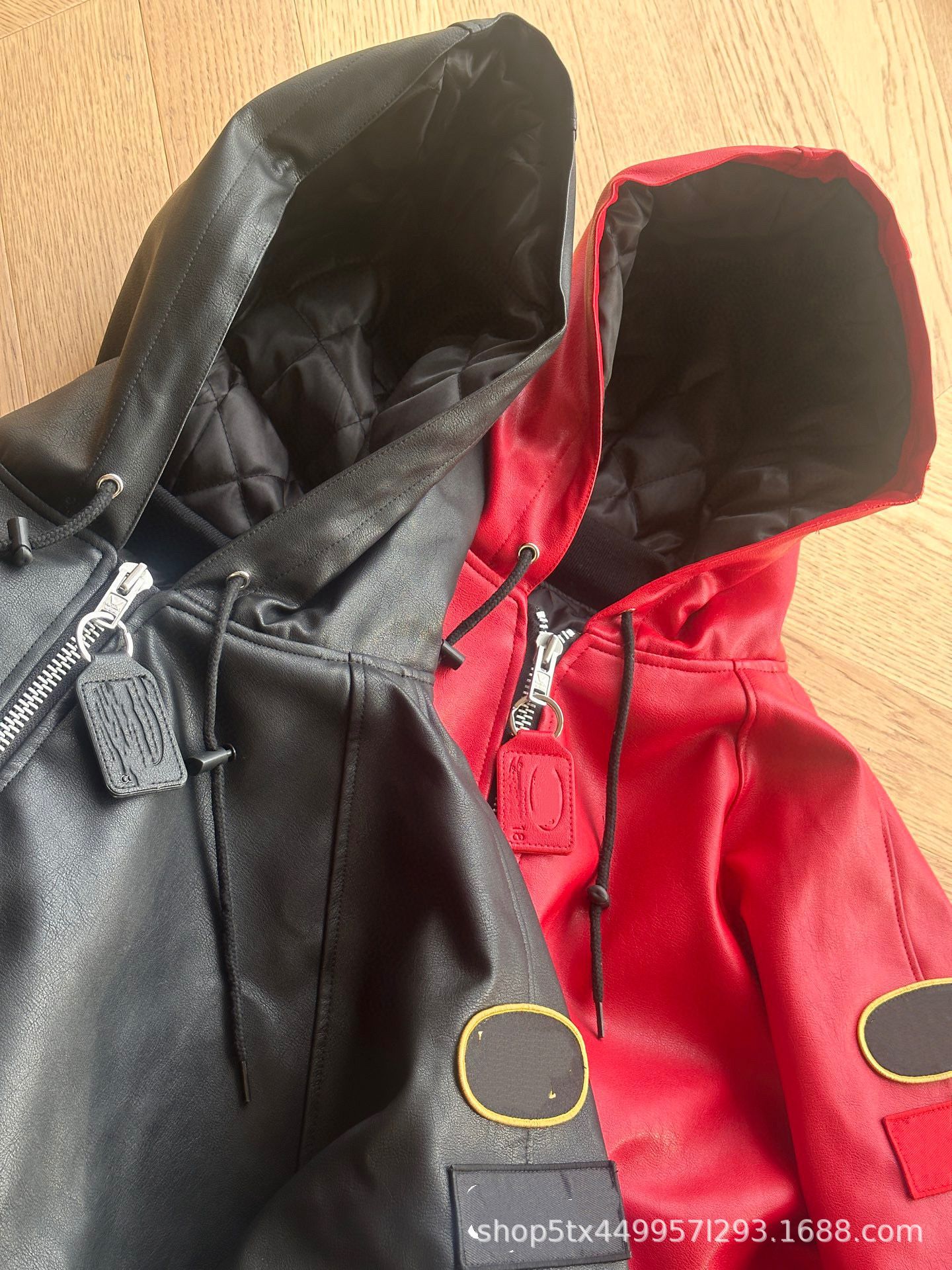 SUP 봄과 가을 새로운 후드 가죽 자켓 남성용 트렌디 한 느슨한 청소년 오토바이 재킷 한국 후드 남성용 가죽 자켓스토어 가기