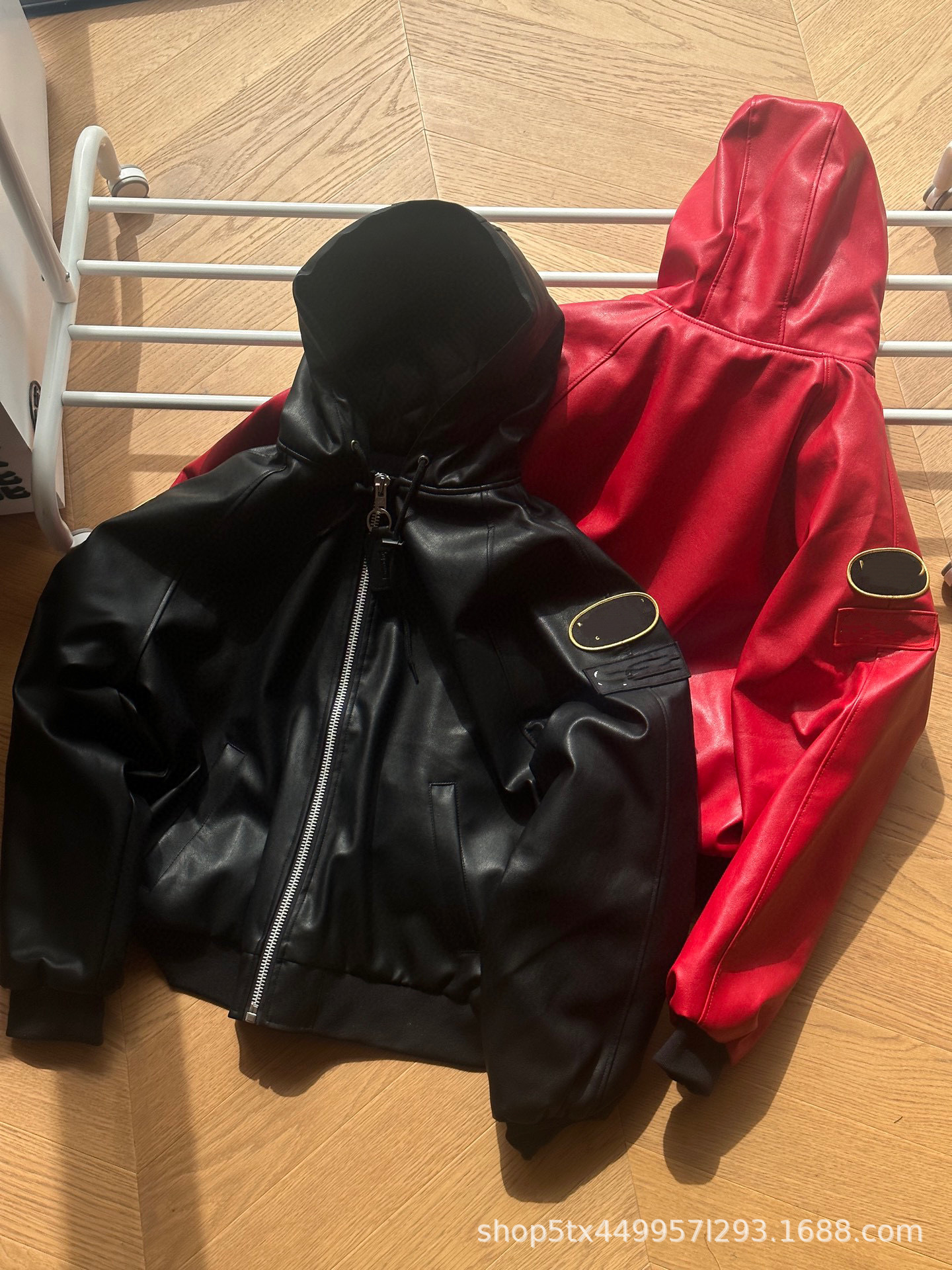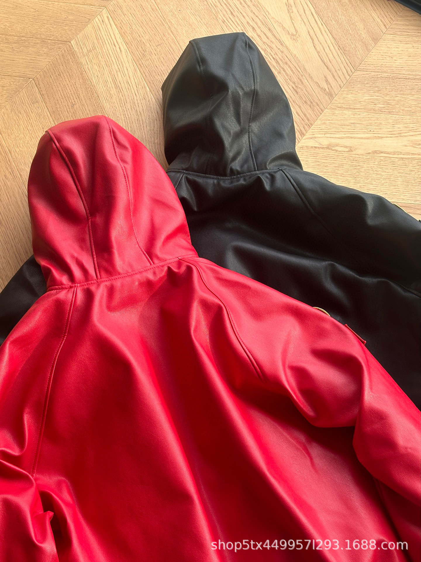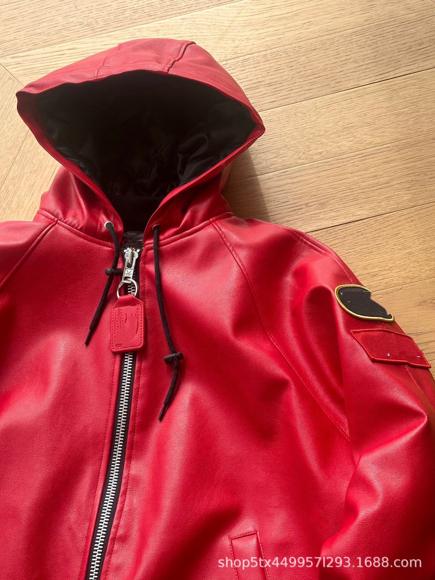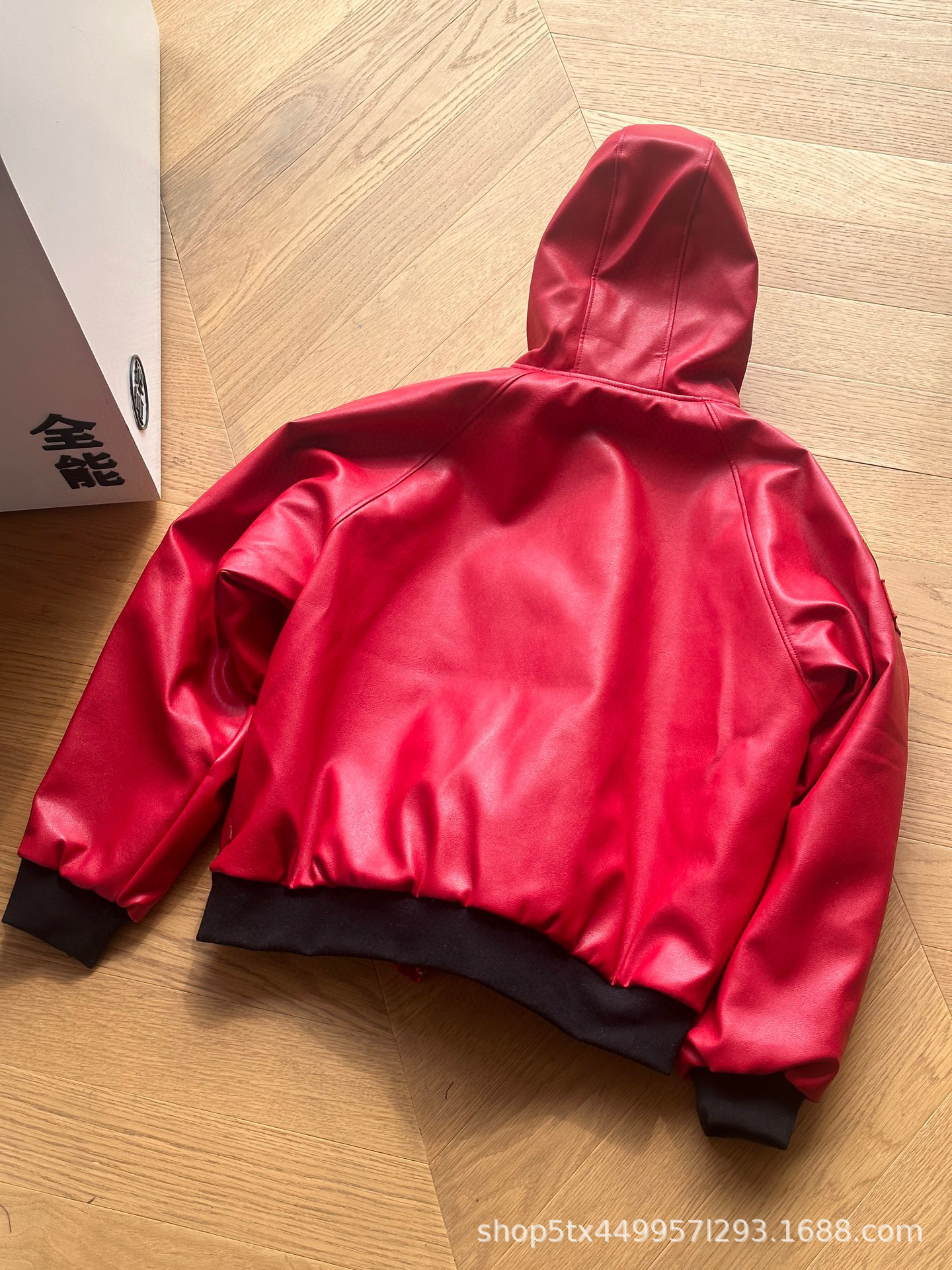 SUP 봄과 가을 새로운 후드 가죽 자켓 남성용 트렌디 한 느슨한 청소년 오토바이 재킷 한국 후드 남성용 가죽 자켓